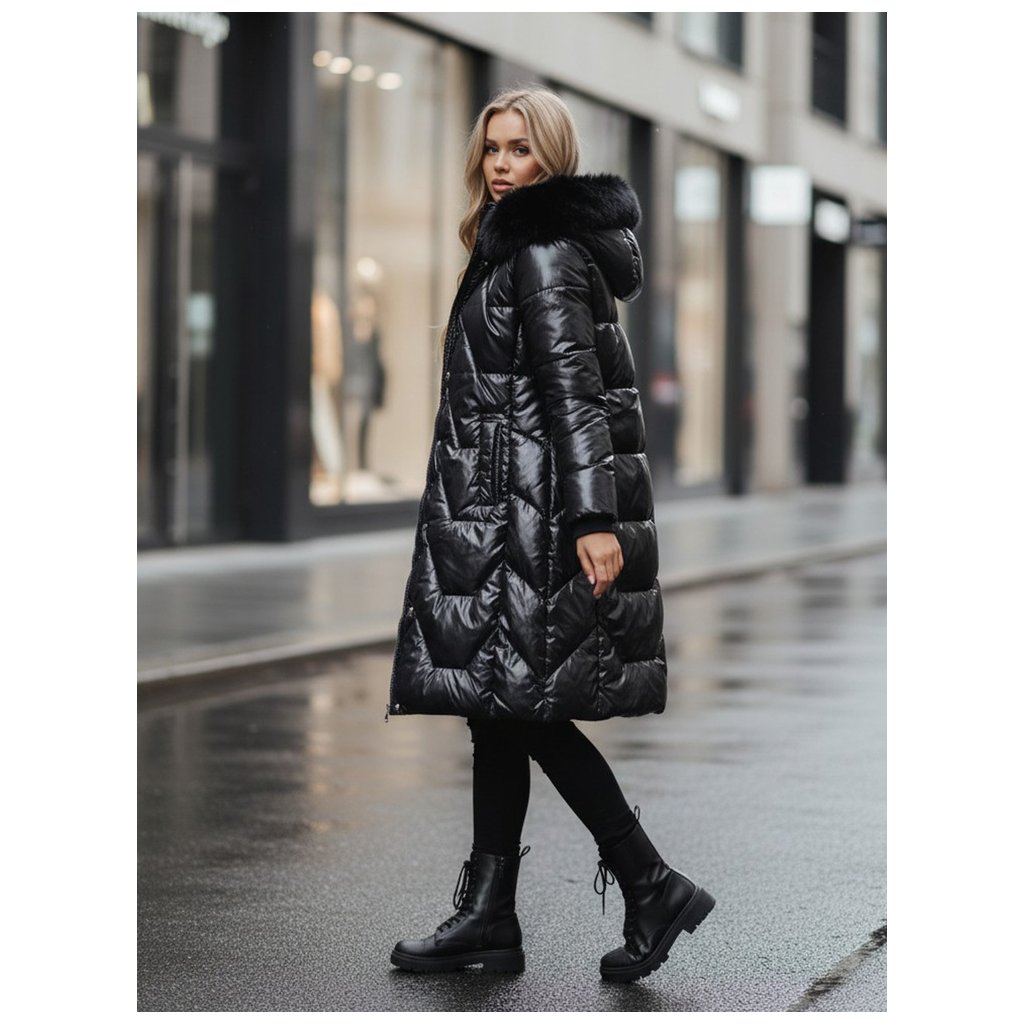 Dámska dlhá prešívaná zimná bunda s kapucňou ELECIO