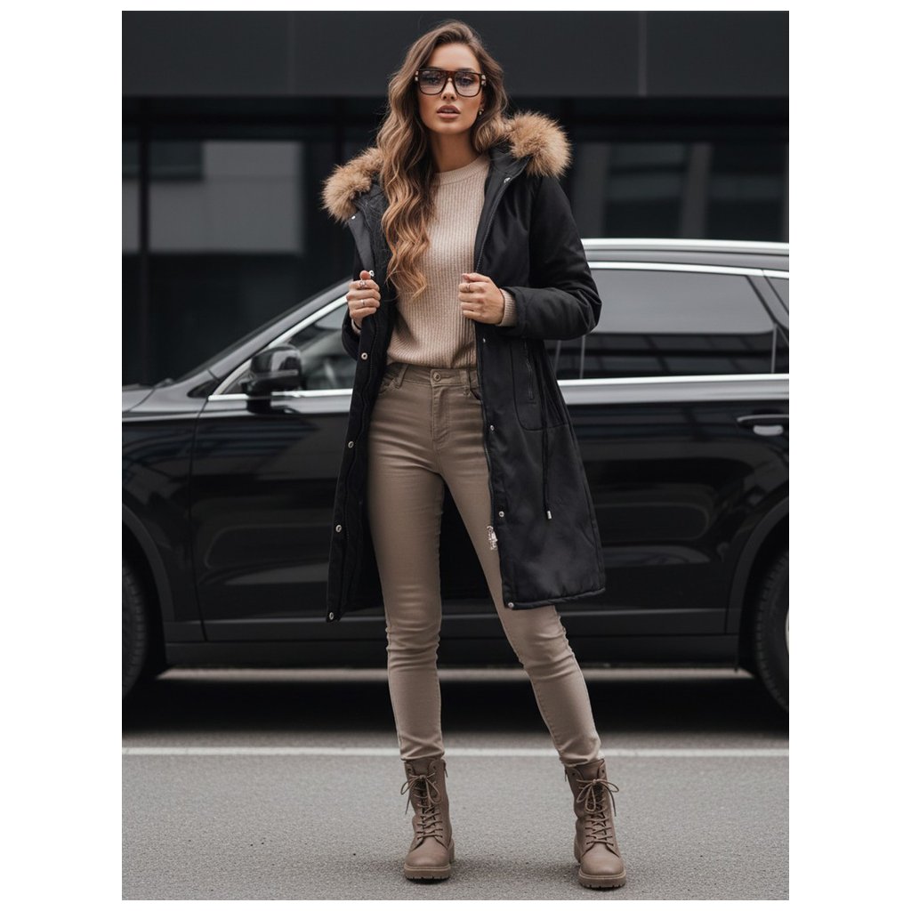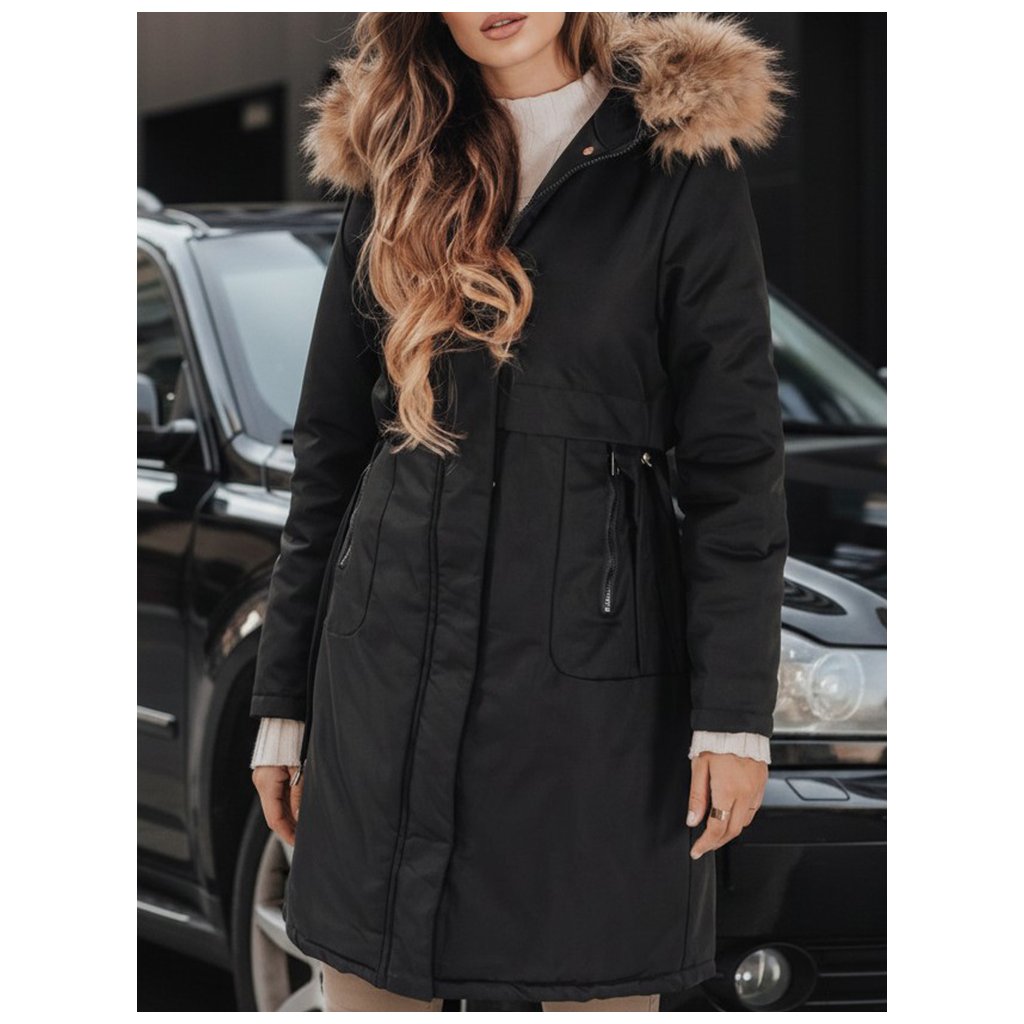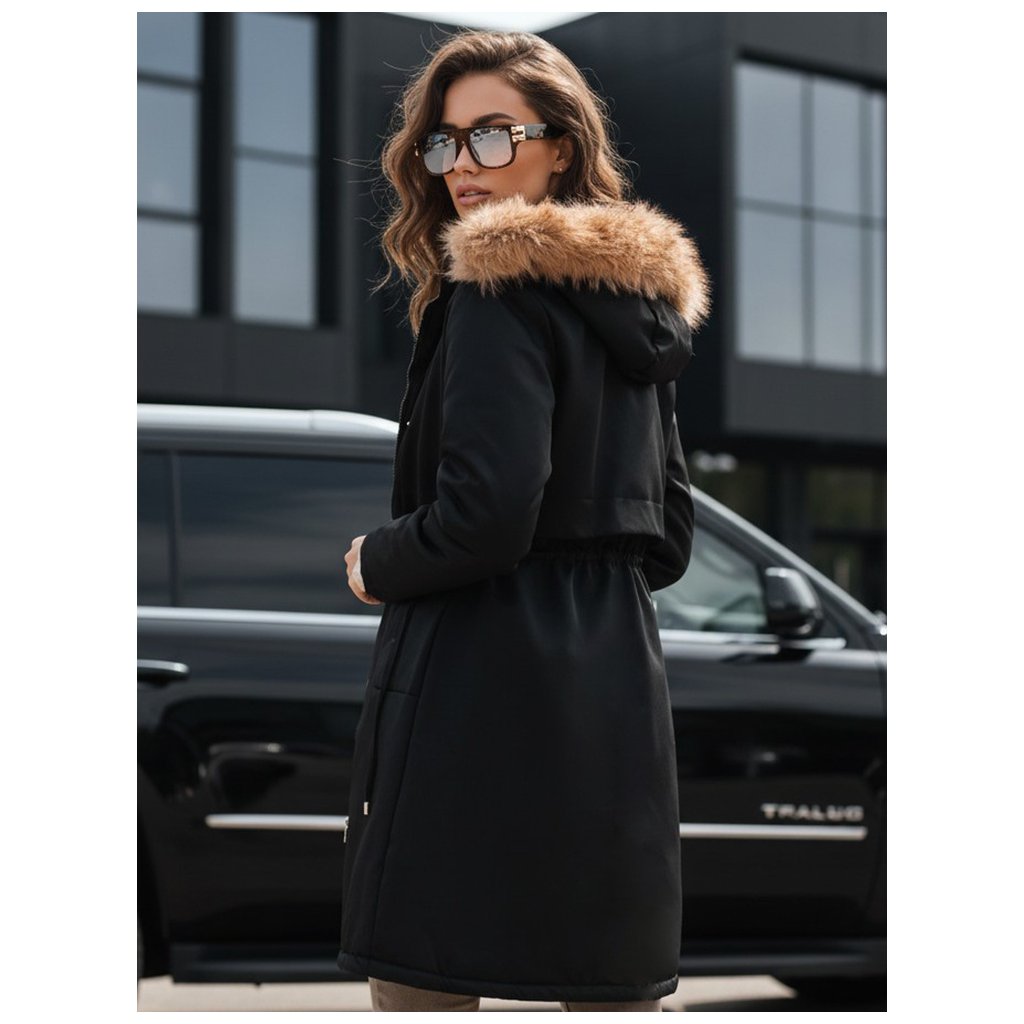 Zimná parka TY5113 je ideálna na chladné dni. Kožušinová podšívka a predĺžený strih zaručujú tepelný komfort, zatiaľ čo štýlové detaily, ako je kožušinový lem na kapucni a nastaviteľný pás, jej dodávajú ženský nádych. Je ideálna na každodenné nosenie.