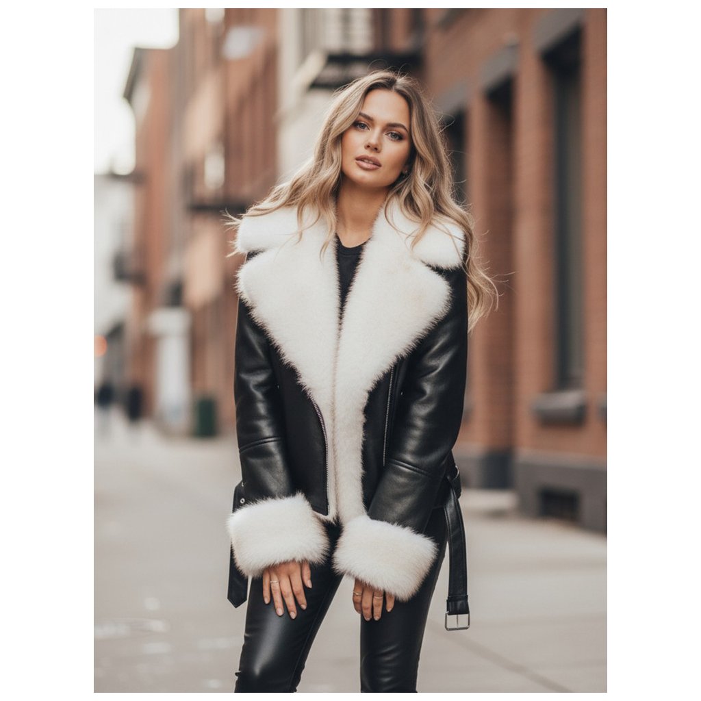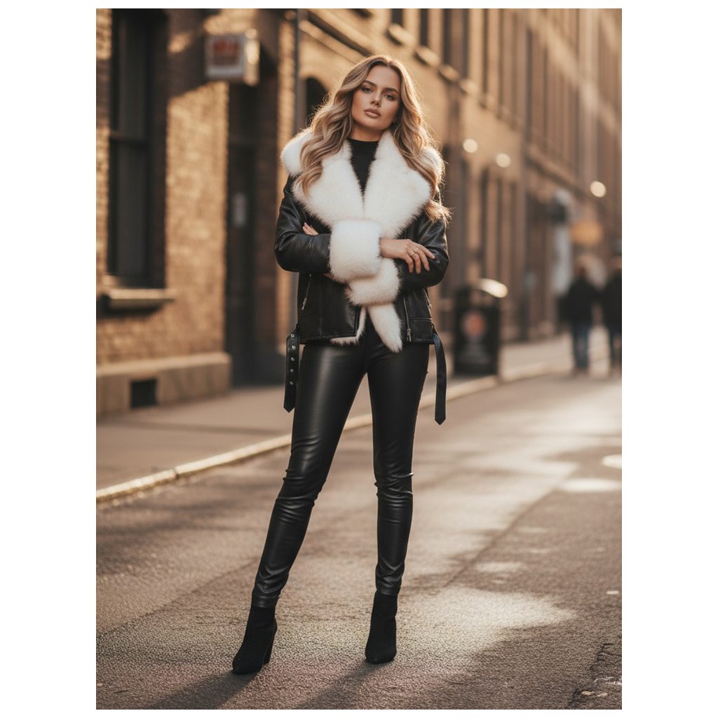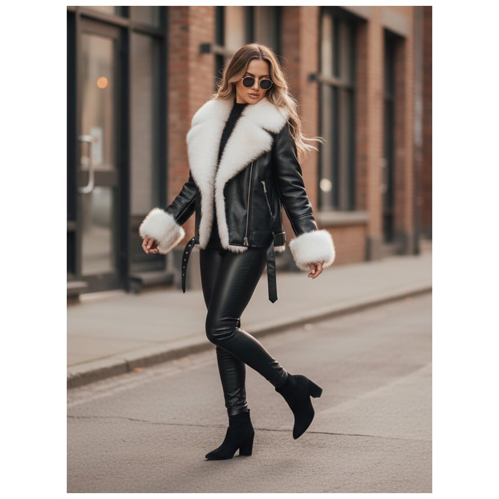Motorkárska bunda TY5122z je moderná verzia klasickej koženej bundy, vylepšená mäkkou, teplou kožušinkou a rafinovanými detailmi. Je ideálna na chladnejšie dni a kombinuje štýl s funkčnosťou. V kombinácii s priliehavými nohavicami vytvára osobitý a zároveň pohodlný vzhľad.