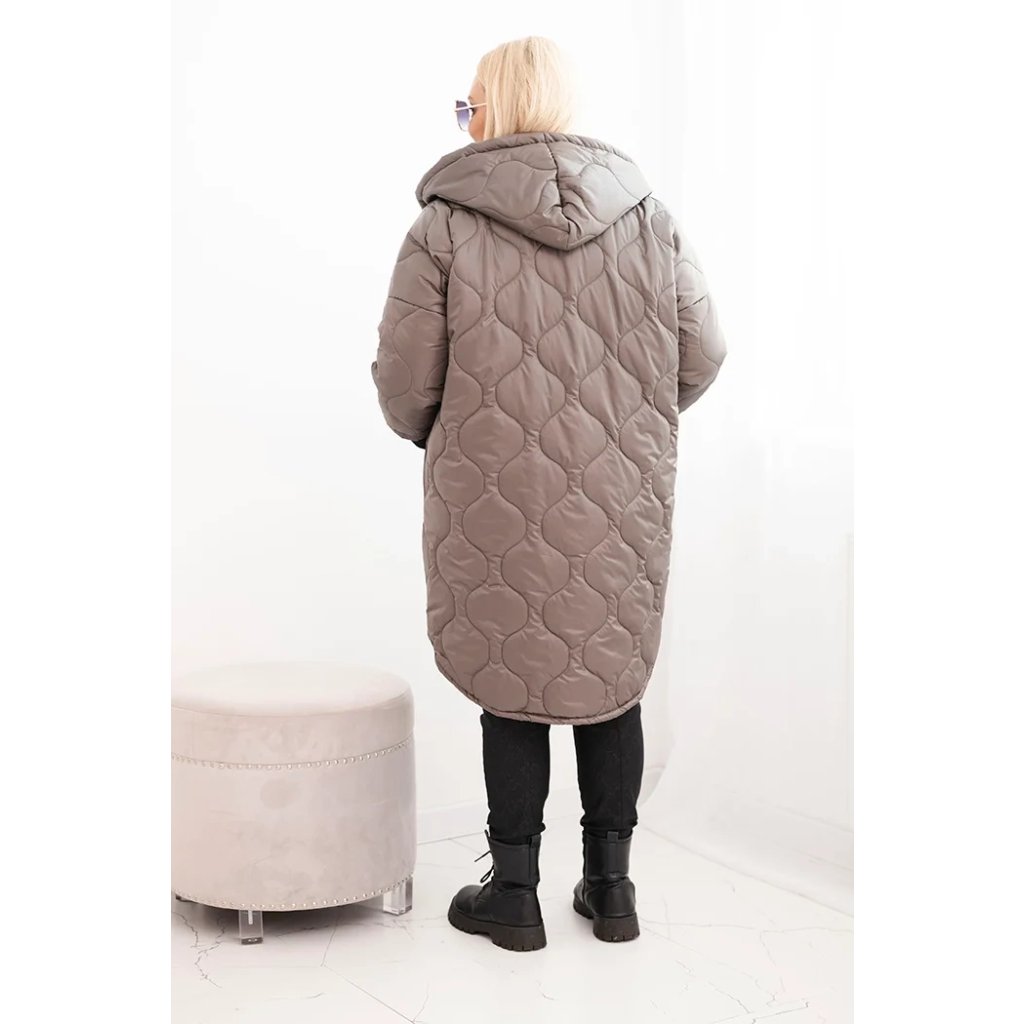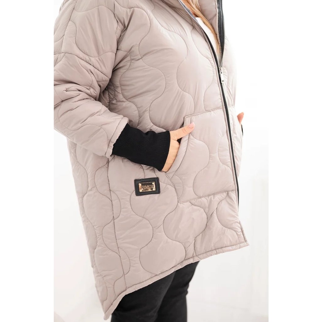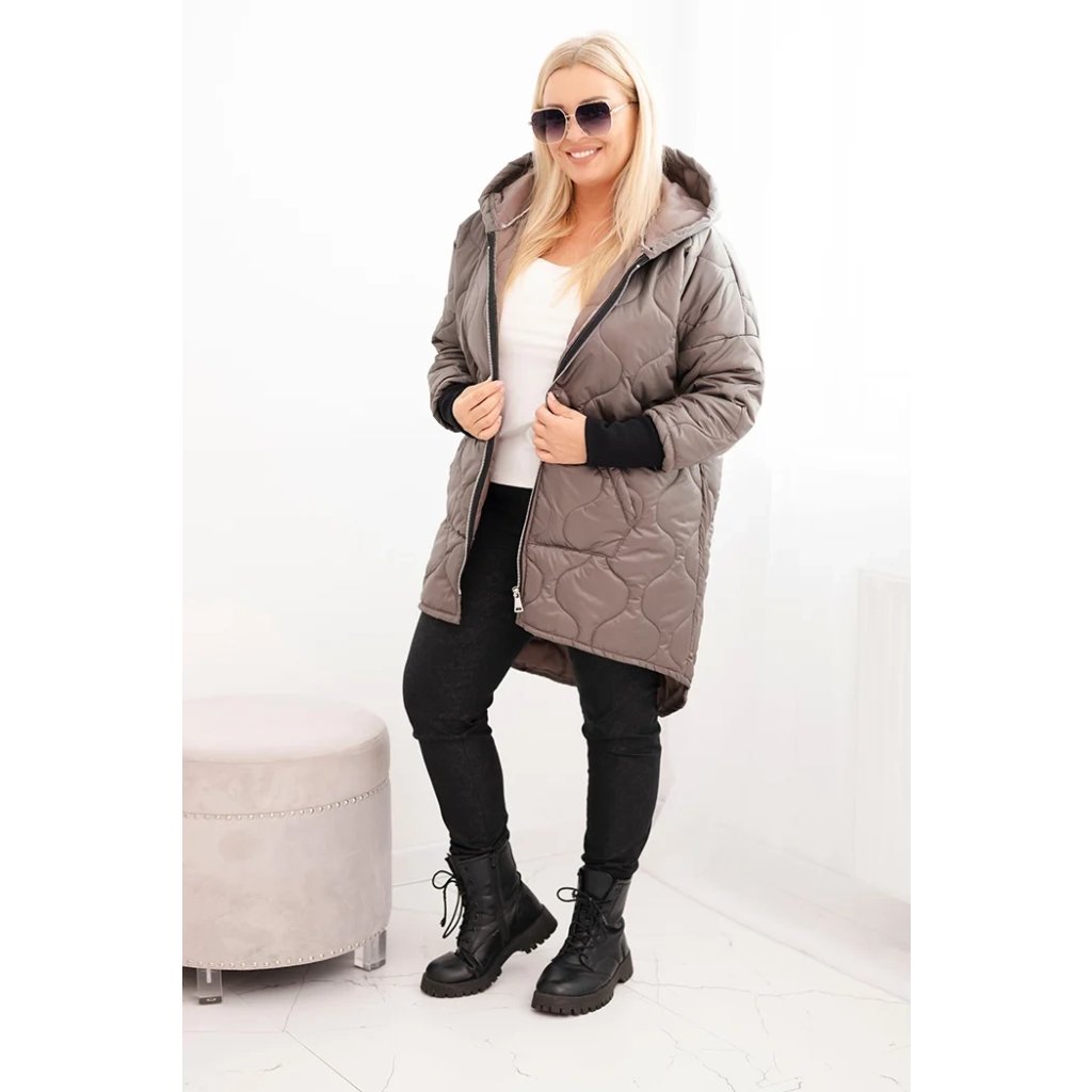 Dámska zimná bunda Plus Size prešívaná s kapucňou khaki
