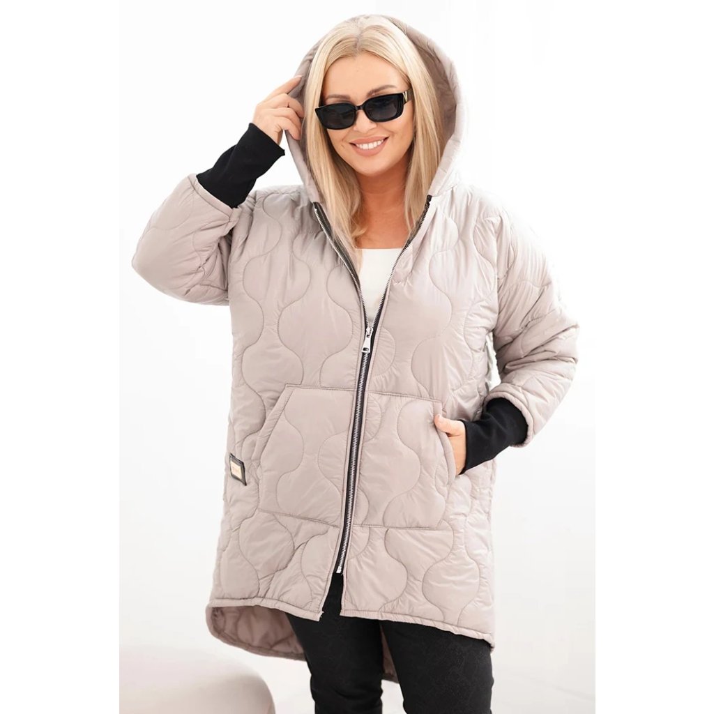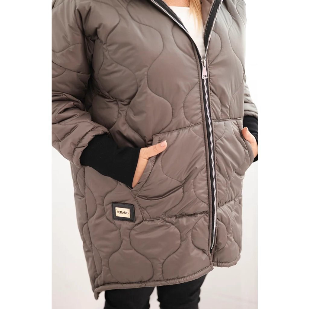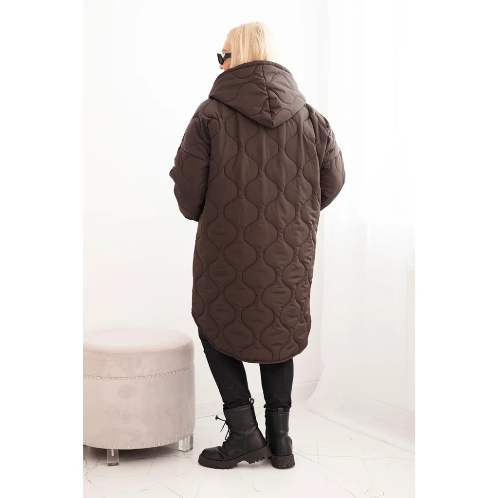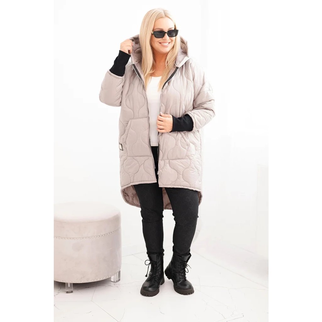Dámska zimná bunda Plus Size prešívaná s kapucňou khaki