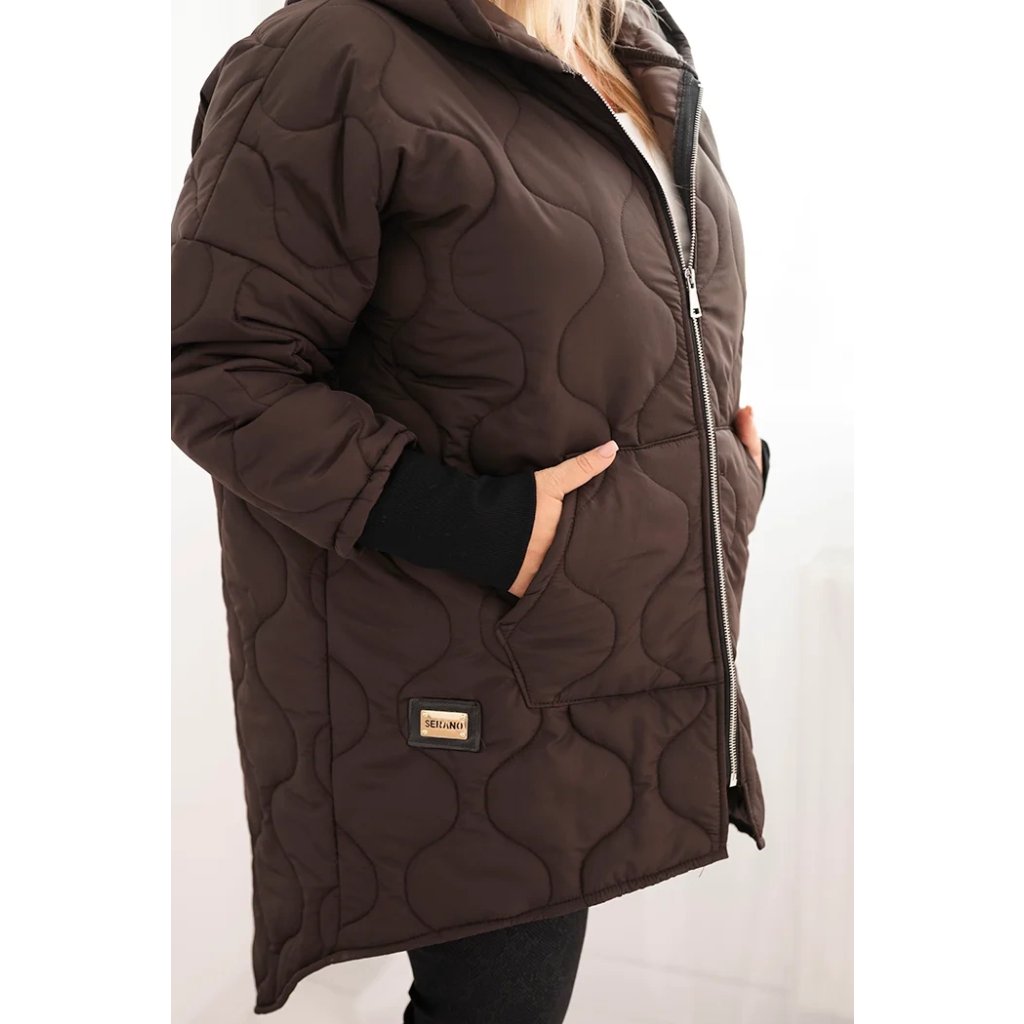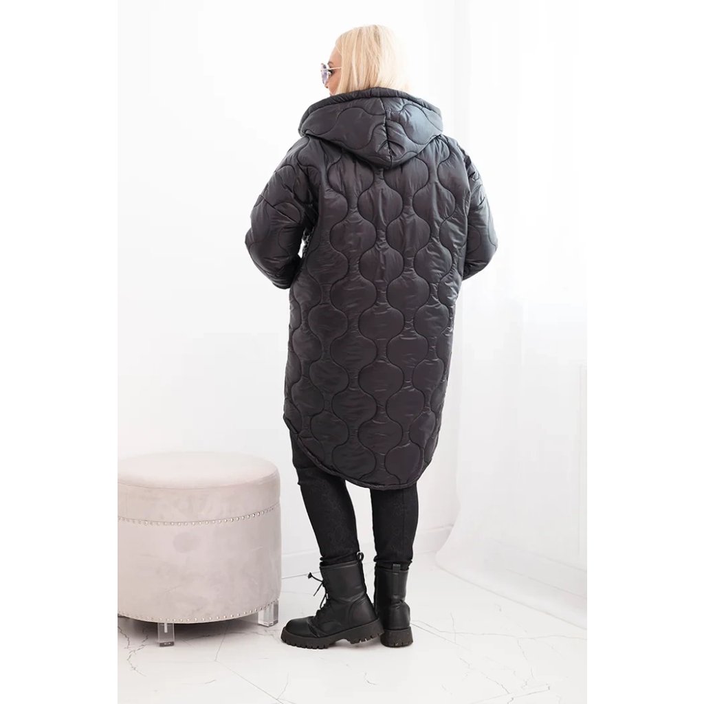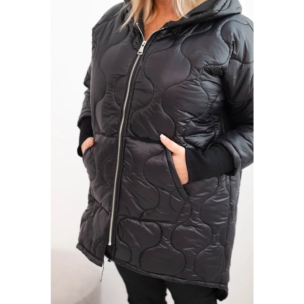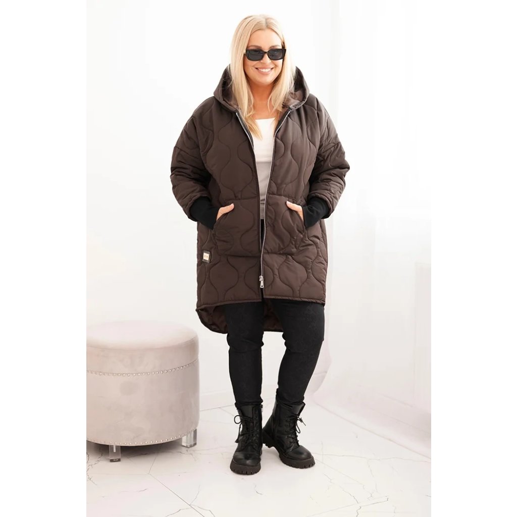 Zateplená a štýlová dámska bunda Plus Size s moderným, asymetrickým strihom a predĺženým zadným dielom. Model vyrobený z prešívaného materiálu, ideálny na chladnejšie dni. Má praktickú kapucňu, zapínanie na zips a pohodlné sťahovanie na rukávoch. Skvele sa hodí do každodenných stylizácií – ako k nohaviciam, tak k legínam.