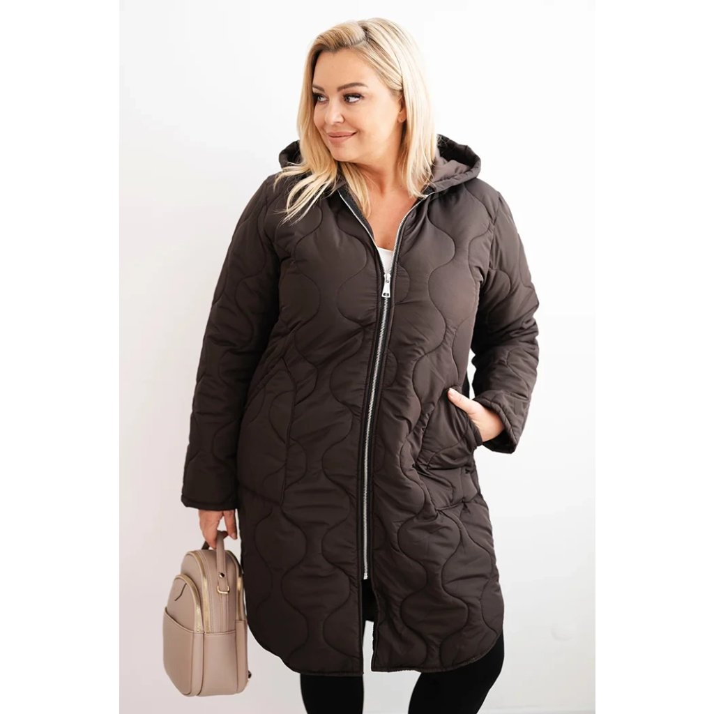 Dámska zimná bunda Plus Size prešívaná s kapucňou - výpredaj