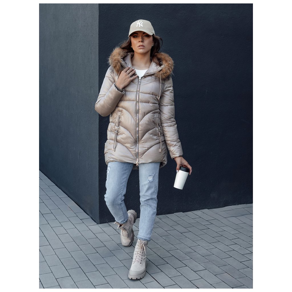 Dámska zimná bunda s kapucňou a kožúškom WINTERCHIC Dstreet TY4435