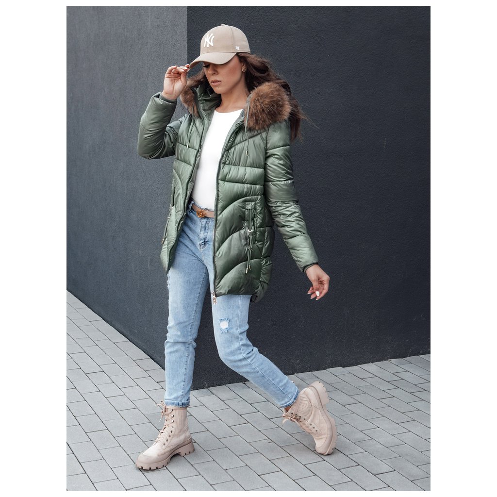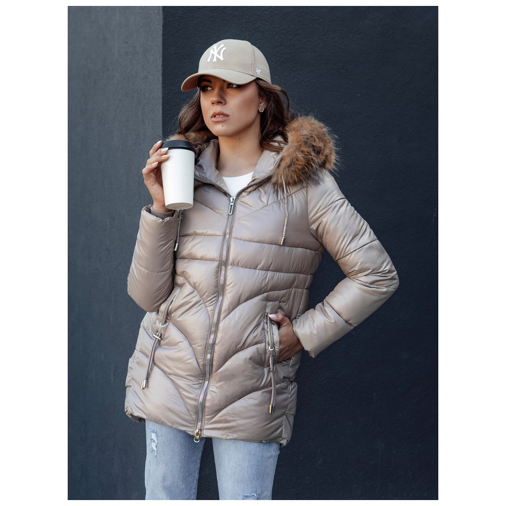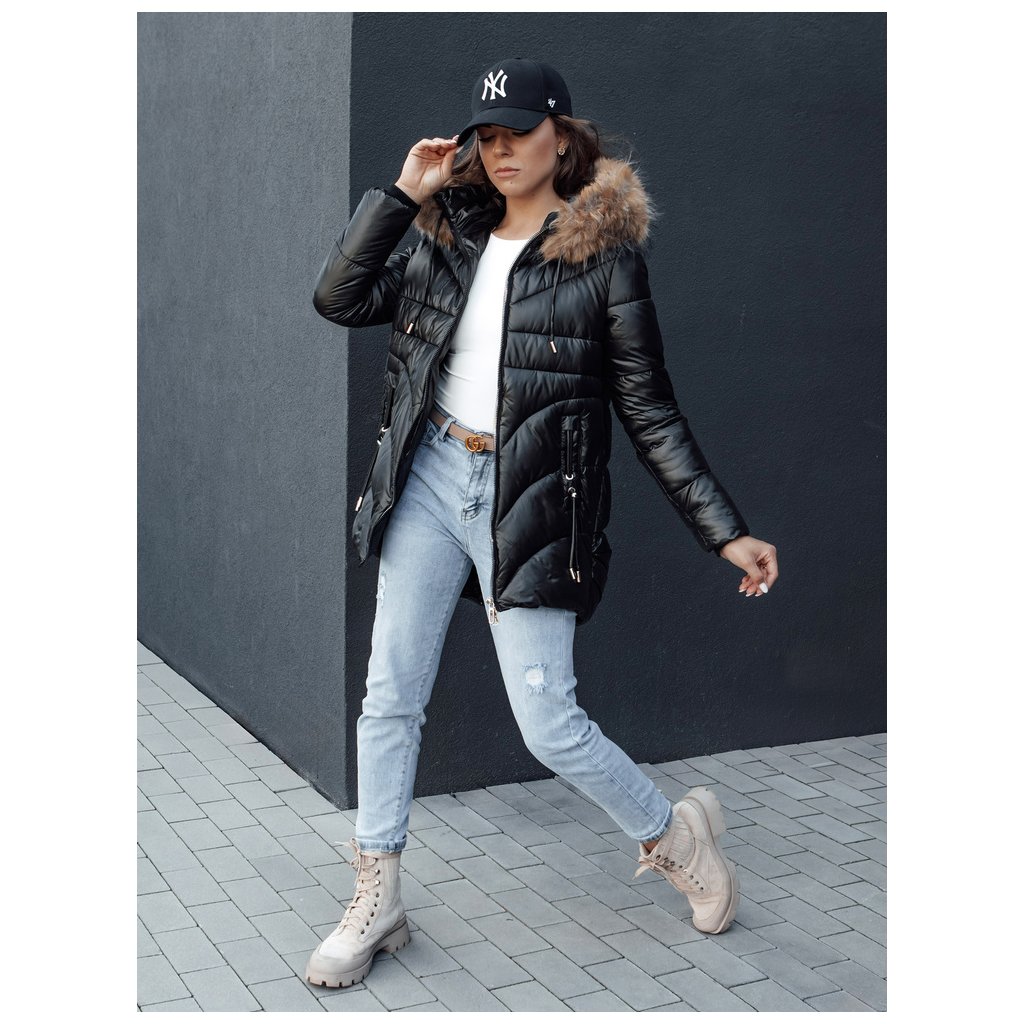 Dámska zimná bunda s kapucňou a kožúškom Zimná elegancia Dstreet TY4435 - výpredaj