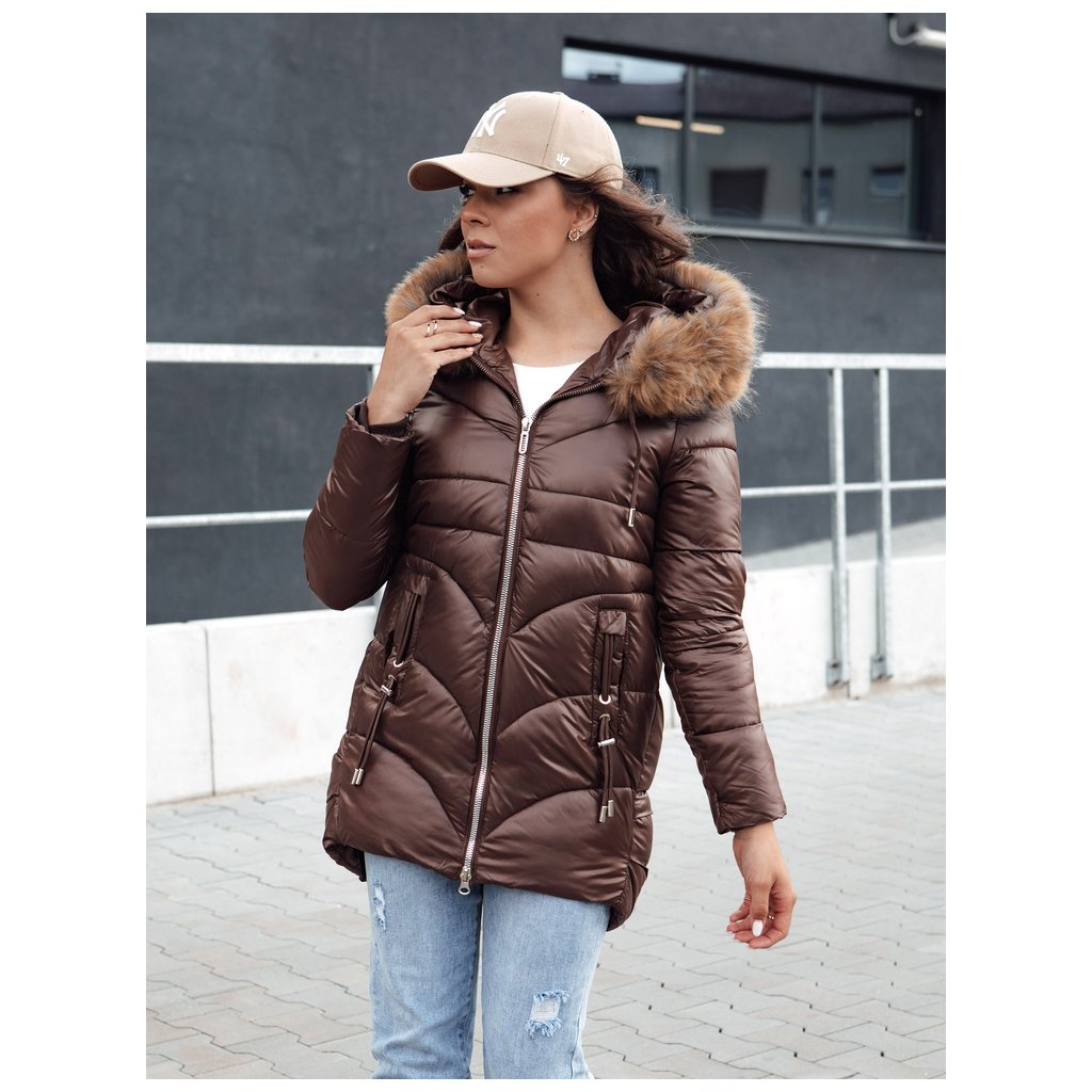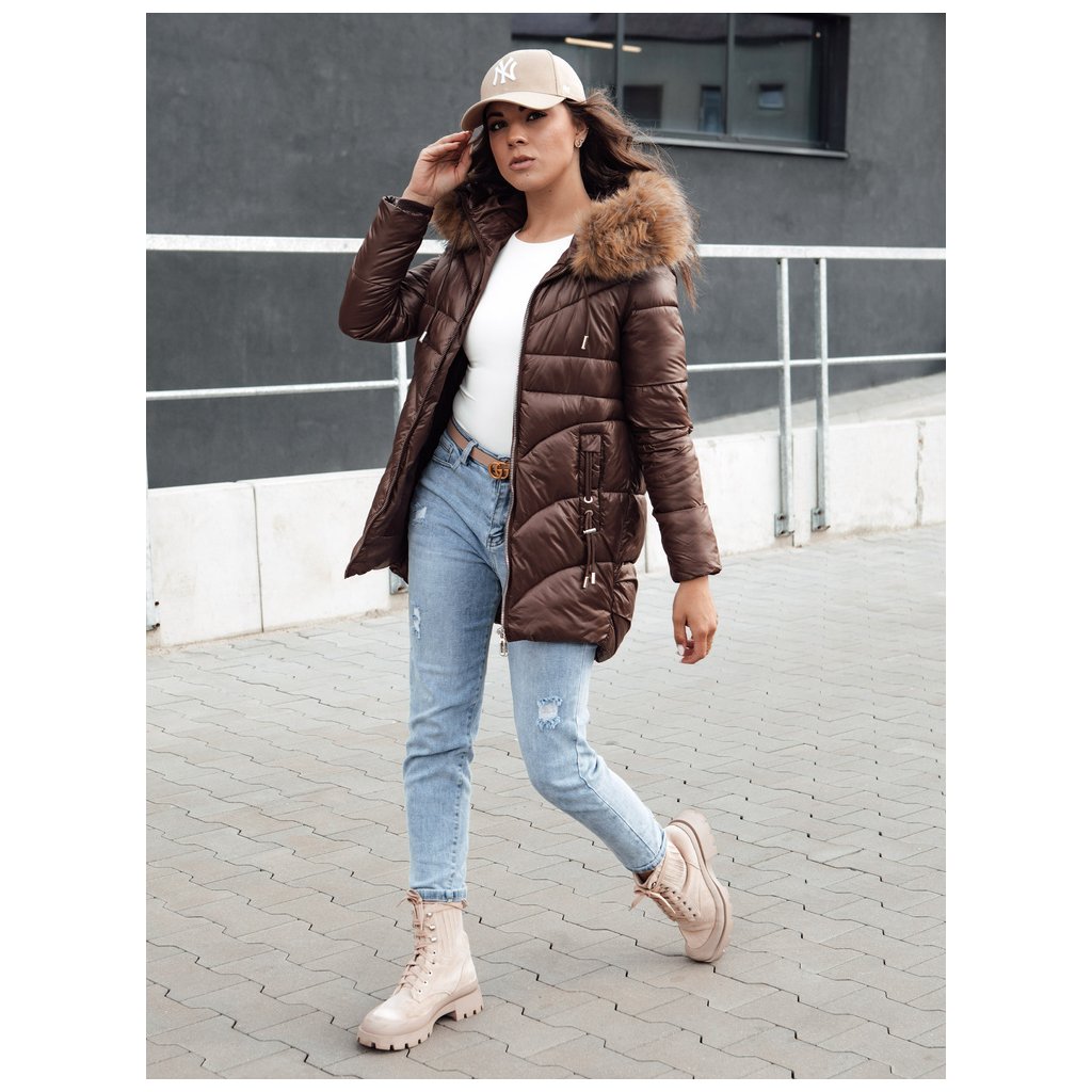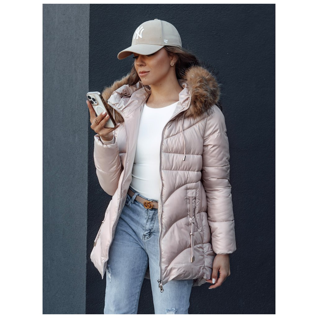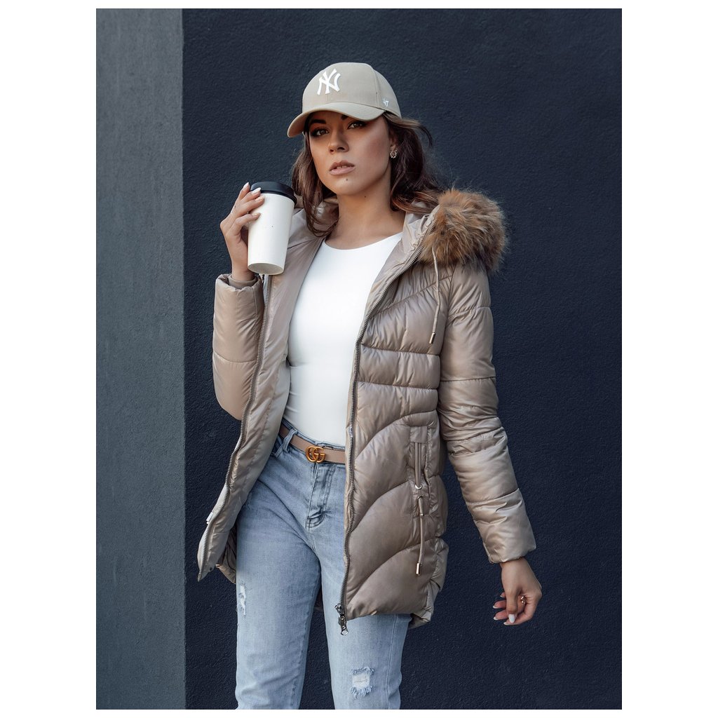 Dámska zimná bunda s kapucňou a kožúškom Zimná elegancia Dstreet TY4435 - výpredaj