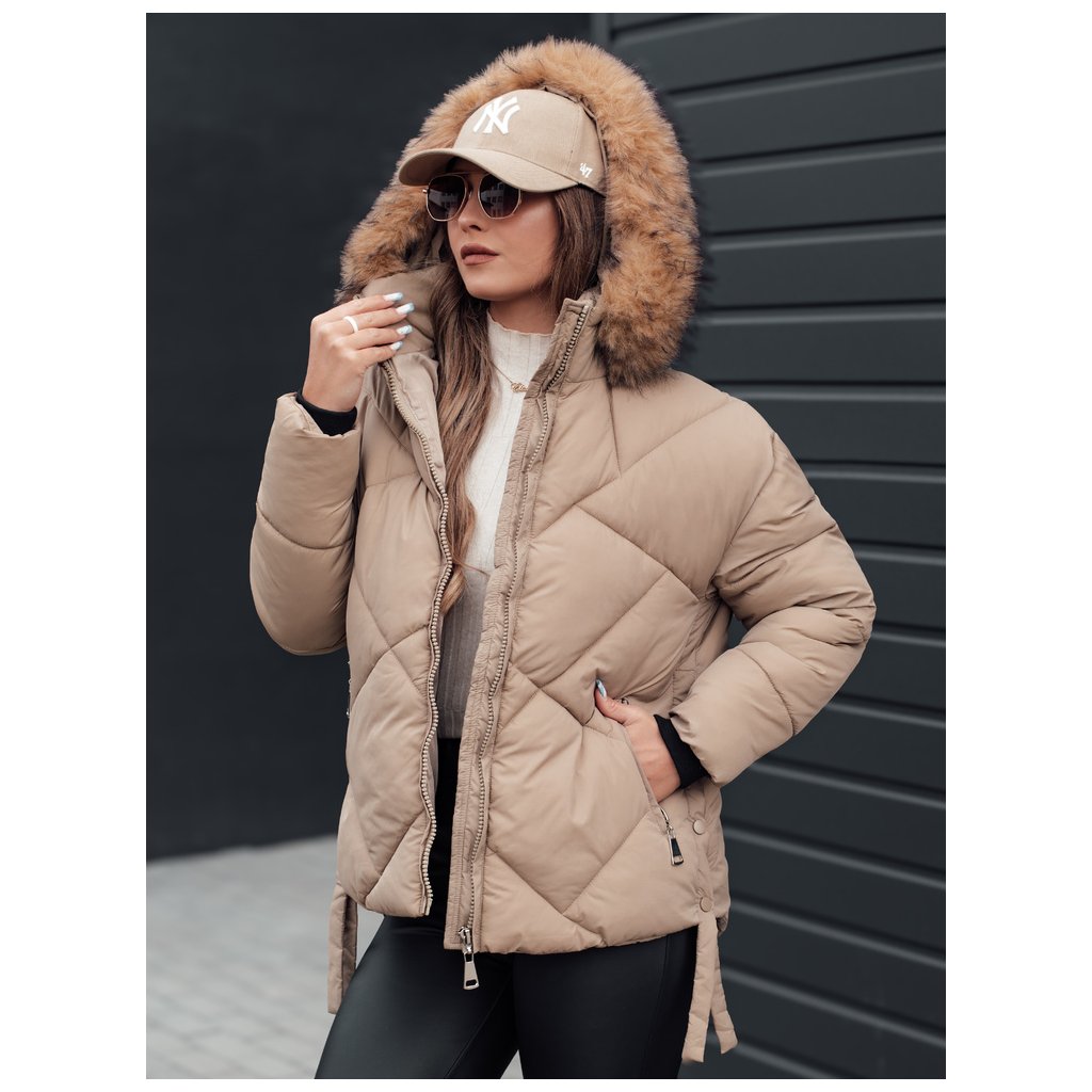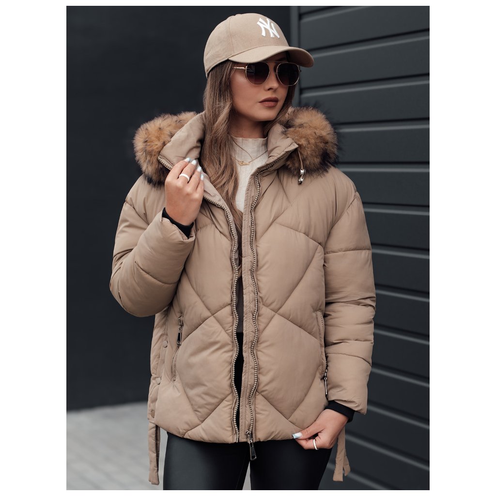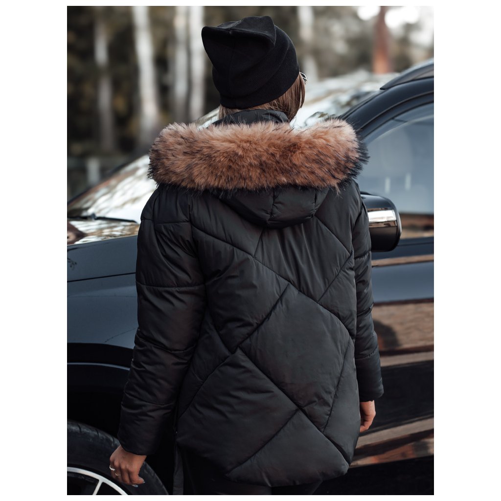 Dámska zimná bunda s kapucňou a kožuštekom LESISI Dstreet TY4715 - výpredaj