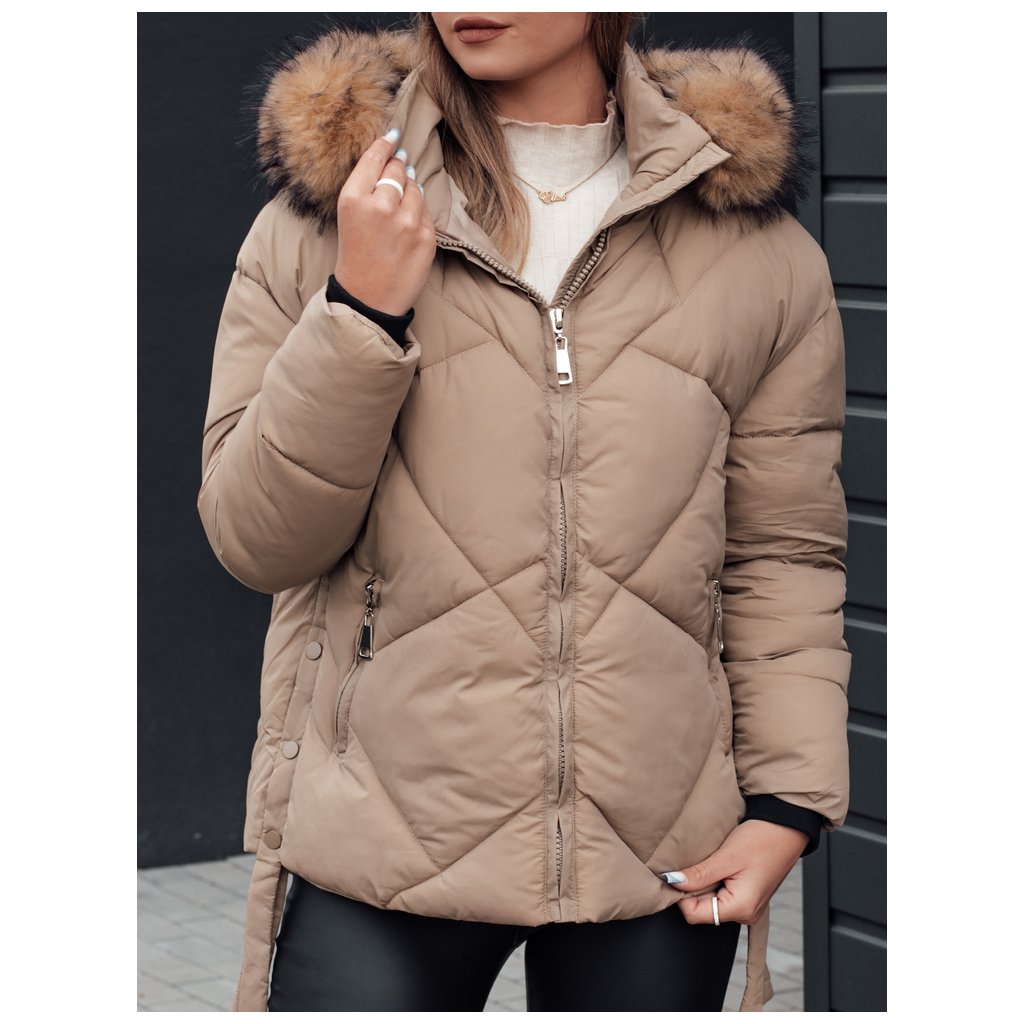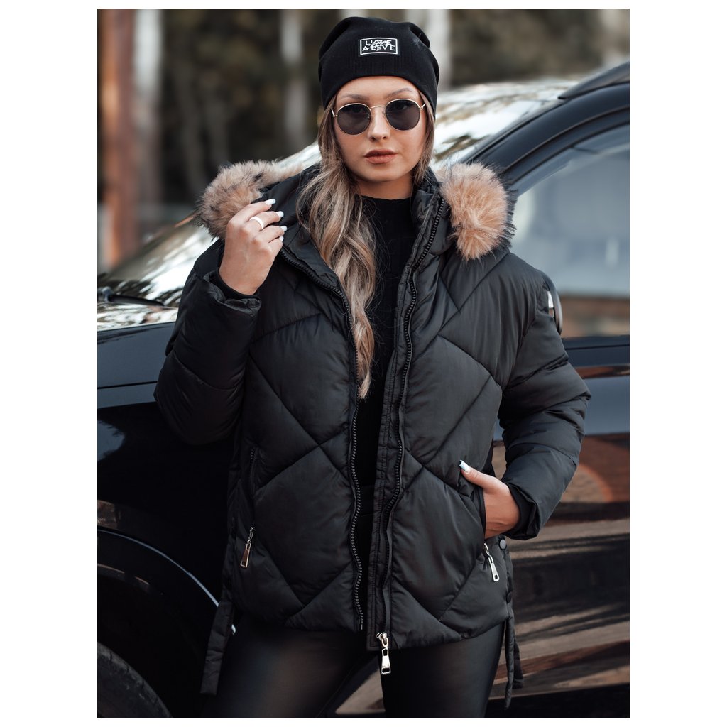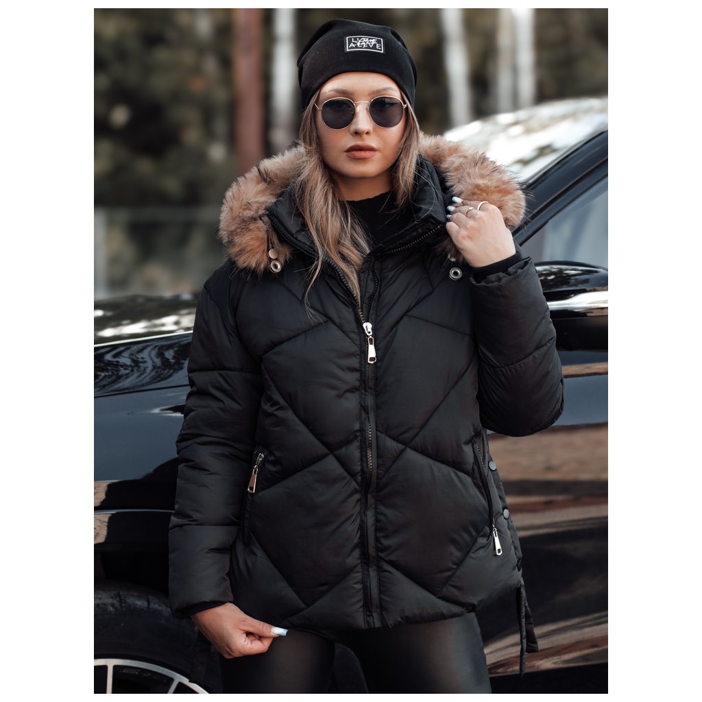 Dámska zimná bunda s kapucňou a kožuštekom LESISI Dstreet TY4715 - výpredaj