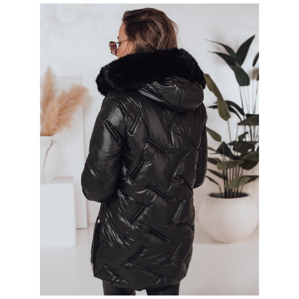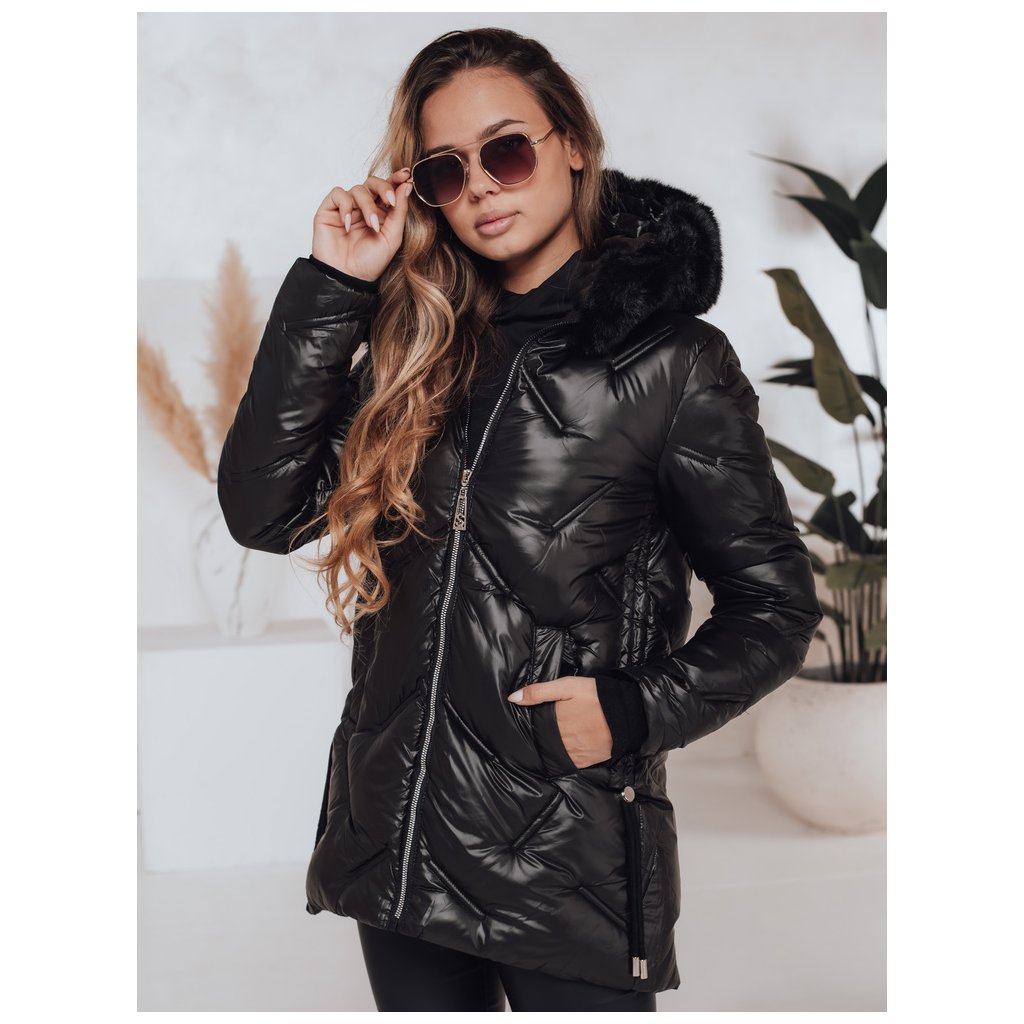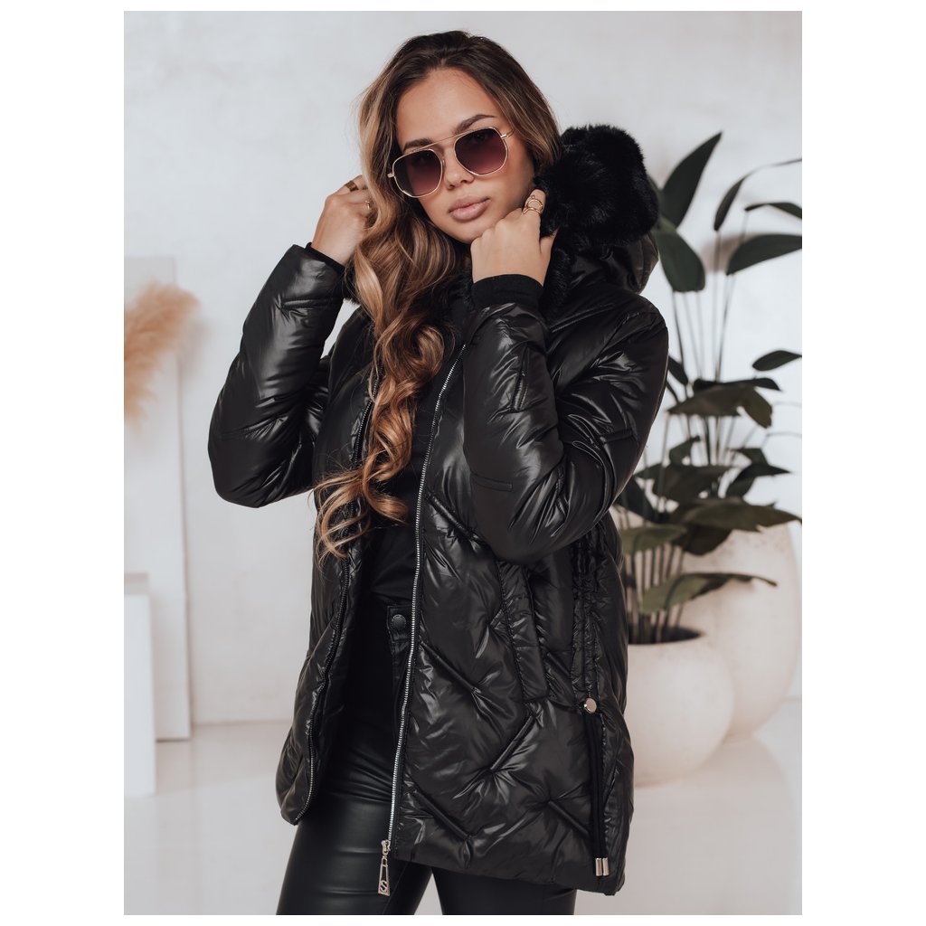 - Dámska zimná bunda. Zapínanie na zips. Pevná kapucňa. Odnímateľný kožušinový lem. Dve vonkajšie vrecká. Sťahovacie šnúrky po stranách. Farba: Čierna. Zloženie: 100% polyester. Miery modelky: