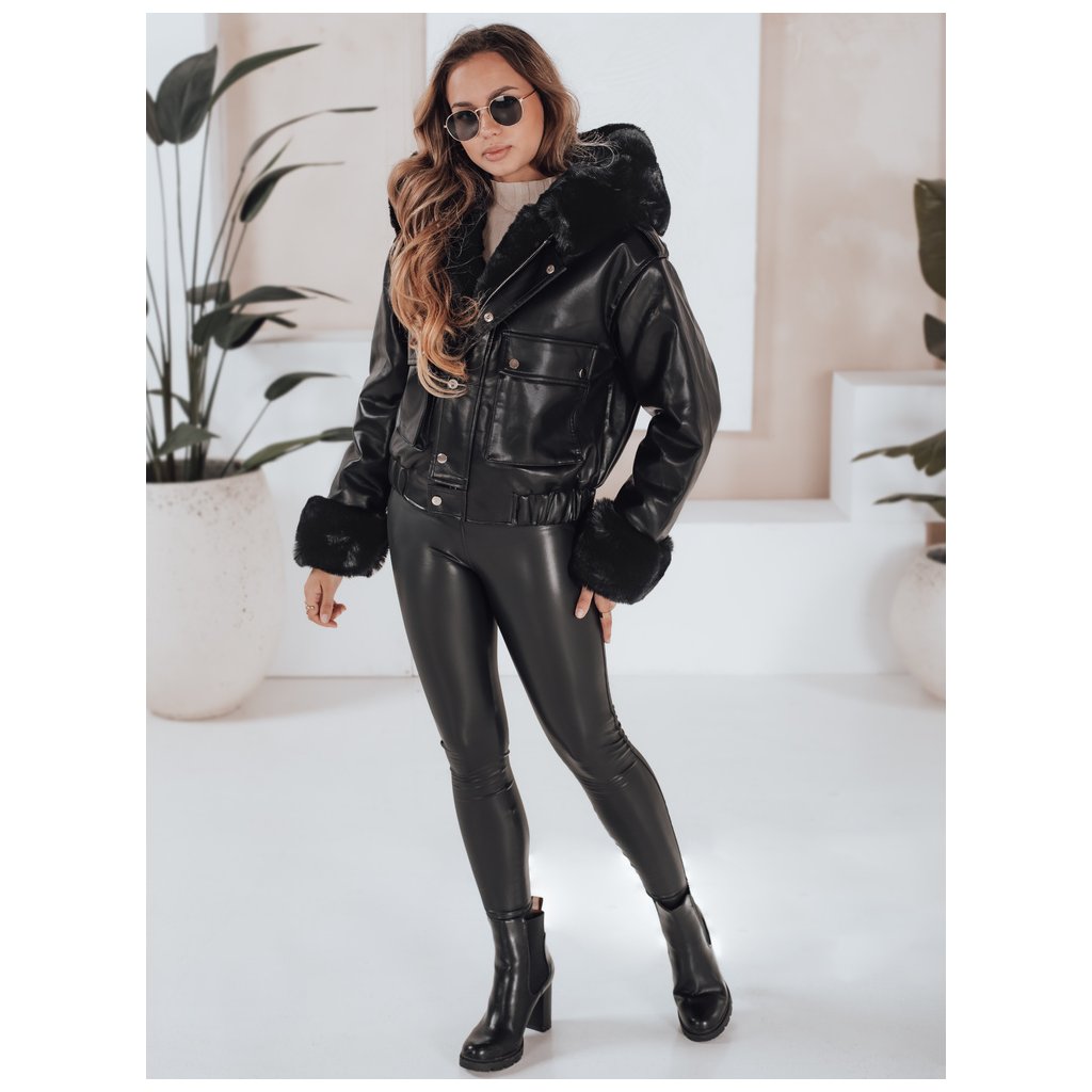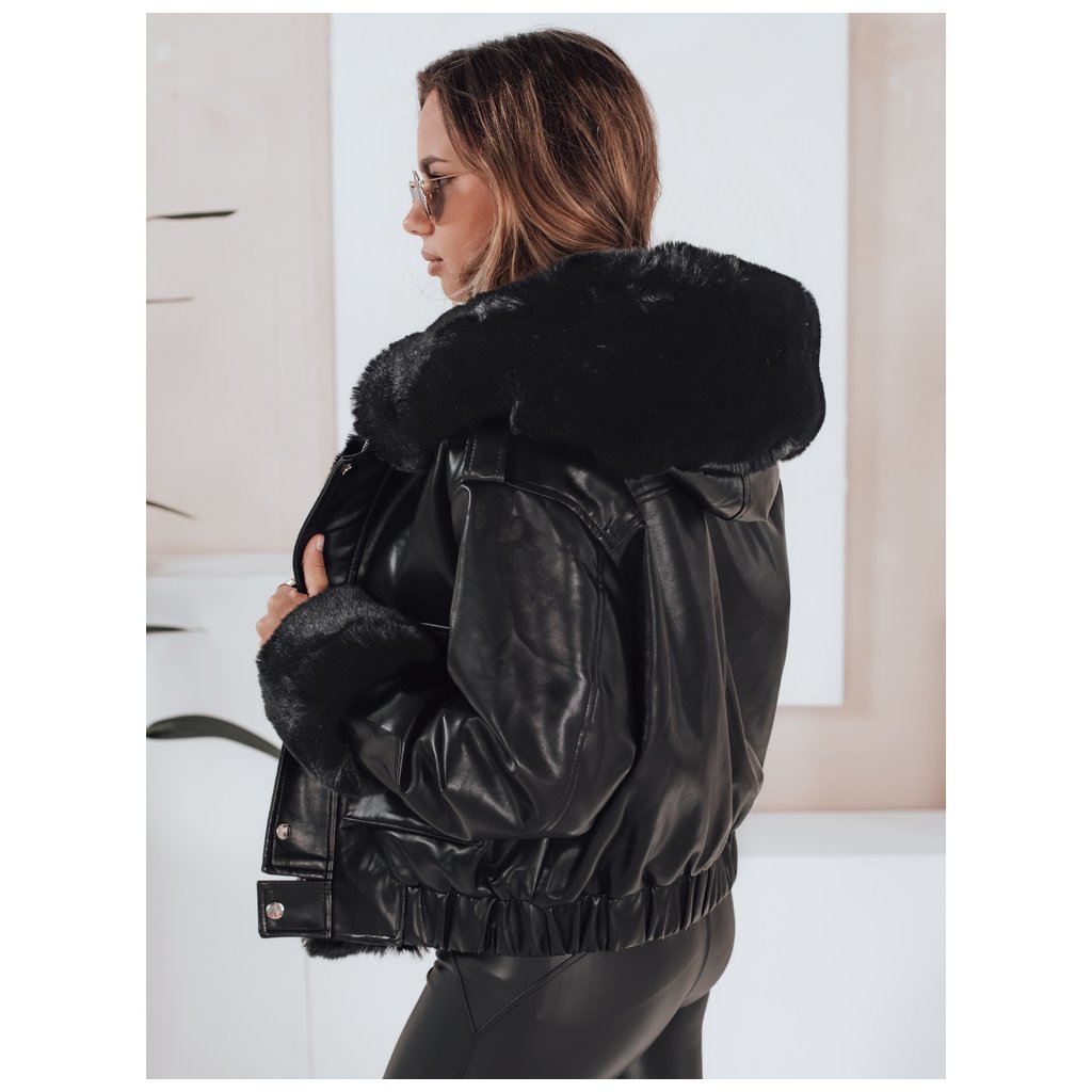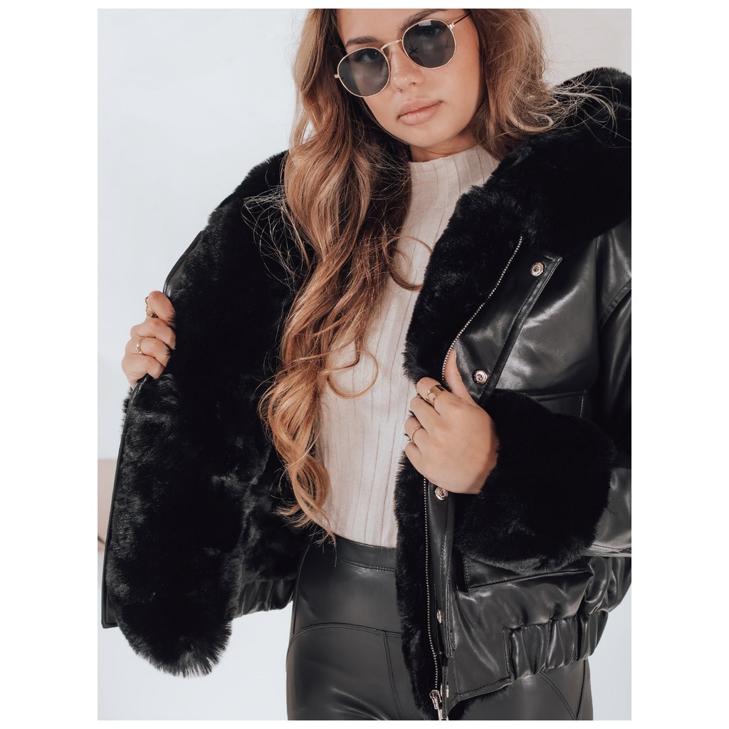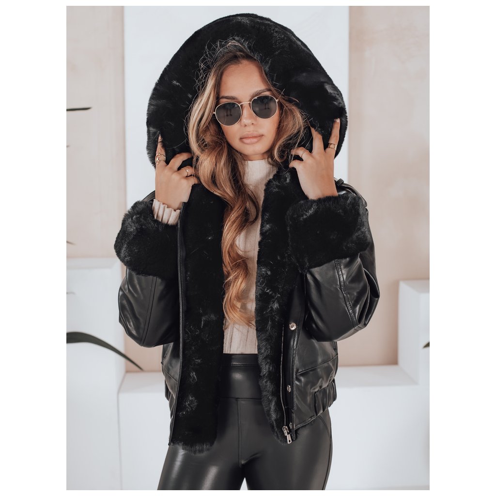 Dámska kožená bunda s umelou kožušinou, čierna TY5128