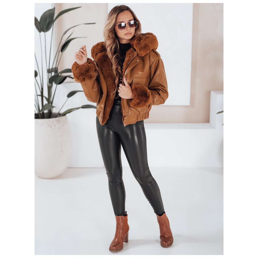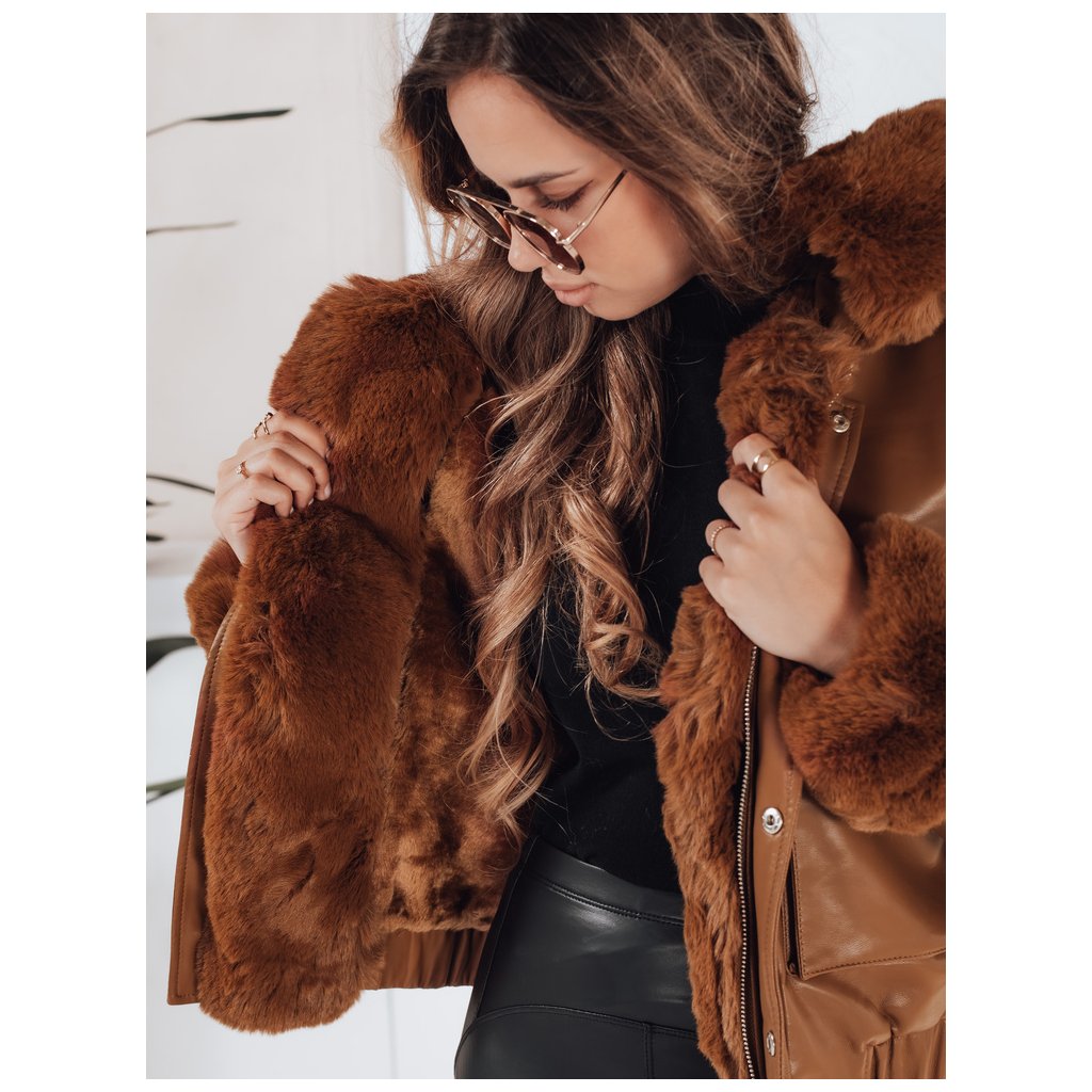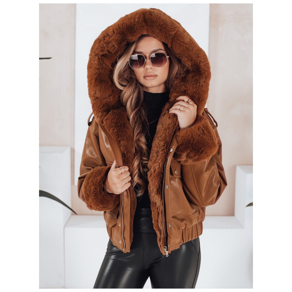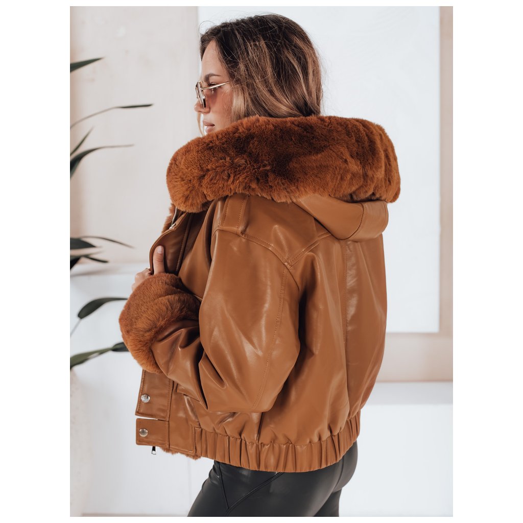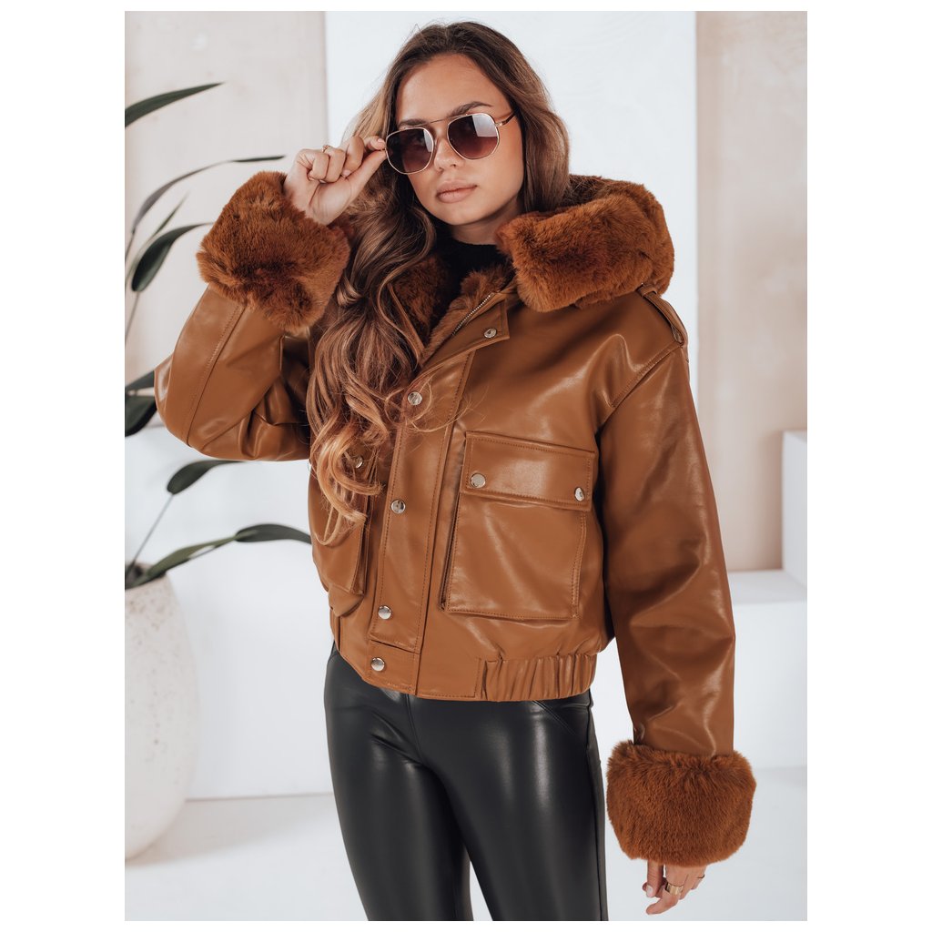 Teplá zimná bunda vyrobená z ekokože s nadýchaným kožušinovým lemom. S veľkou, neodnímateľnou kapucňou a elastickým lemom je ideálna na zimné dni. Praktické vrecká a zapínanie na zips a cvok zaisťujú pohodlie a funkčnosť.