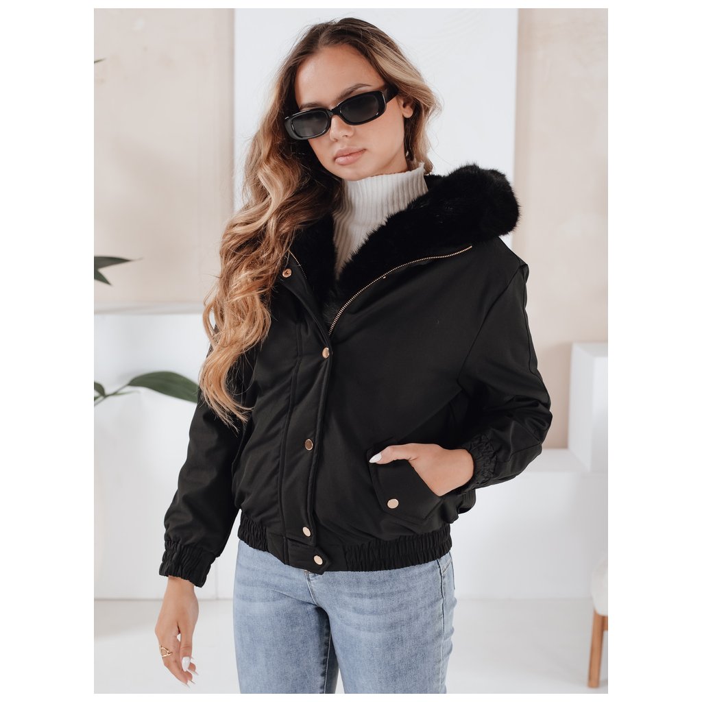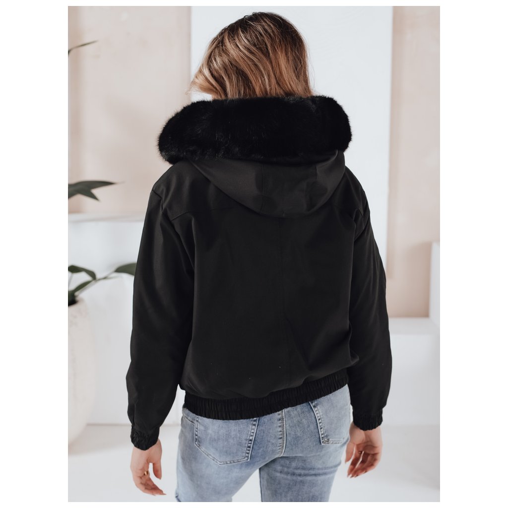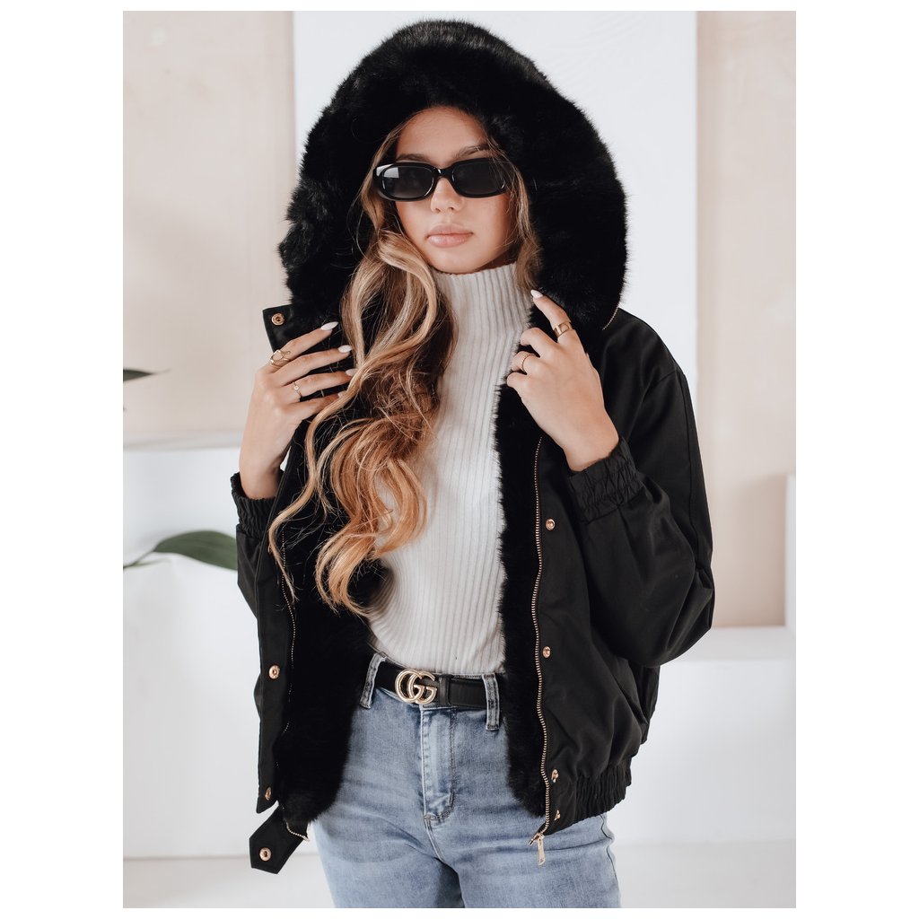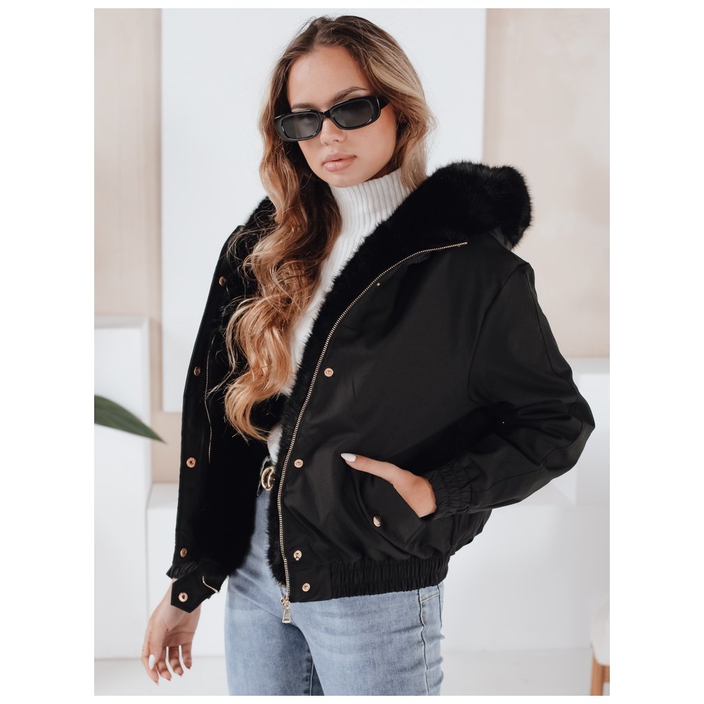 - Dámska zimná bunda. Zapínanie na zips a cvok. Pevná kapucňa. Dve vonkajšie vrecká. Rebrované manžety a lem. Odnímateľná kožušinová podšívka. Farba: Čierna. Zloženie: 100% polyester. Miery modelky: