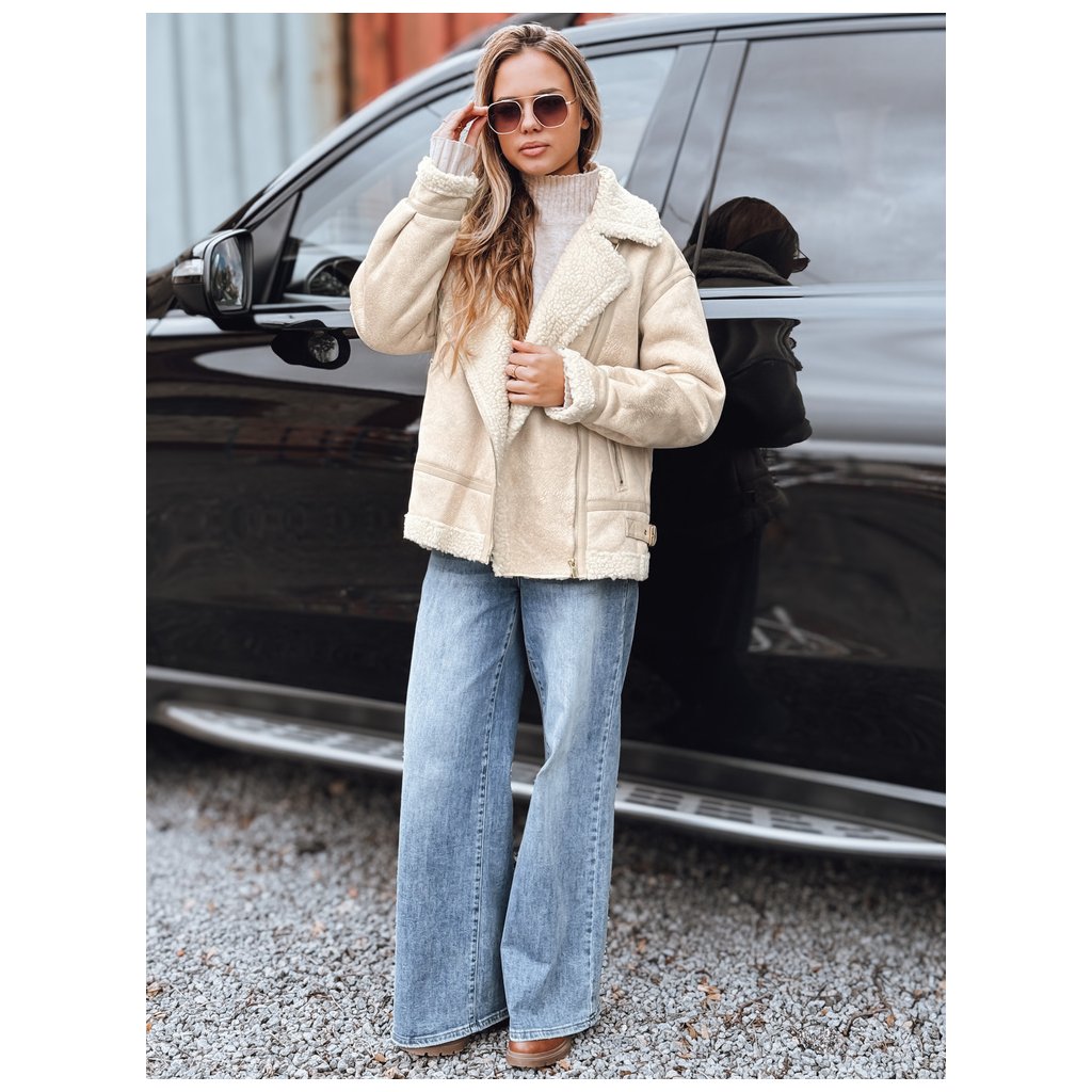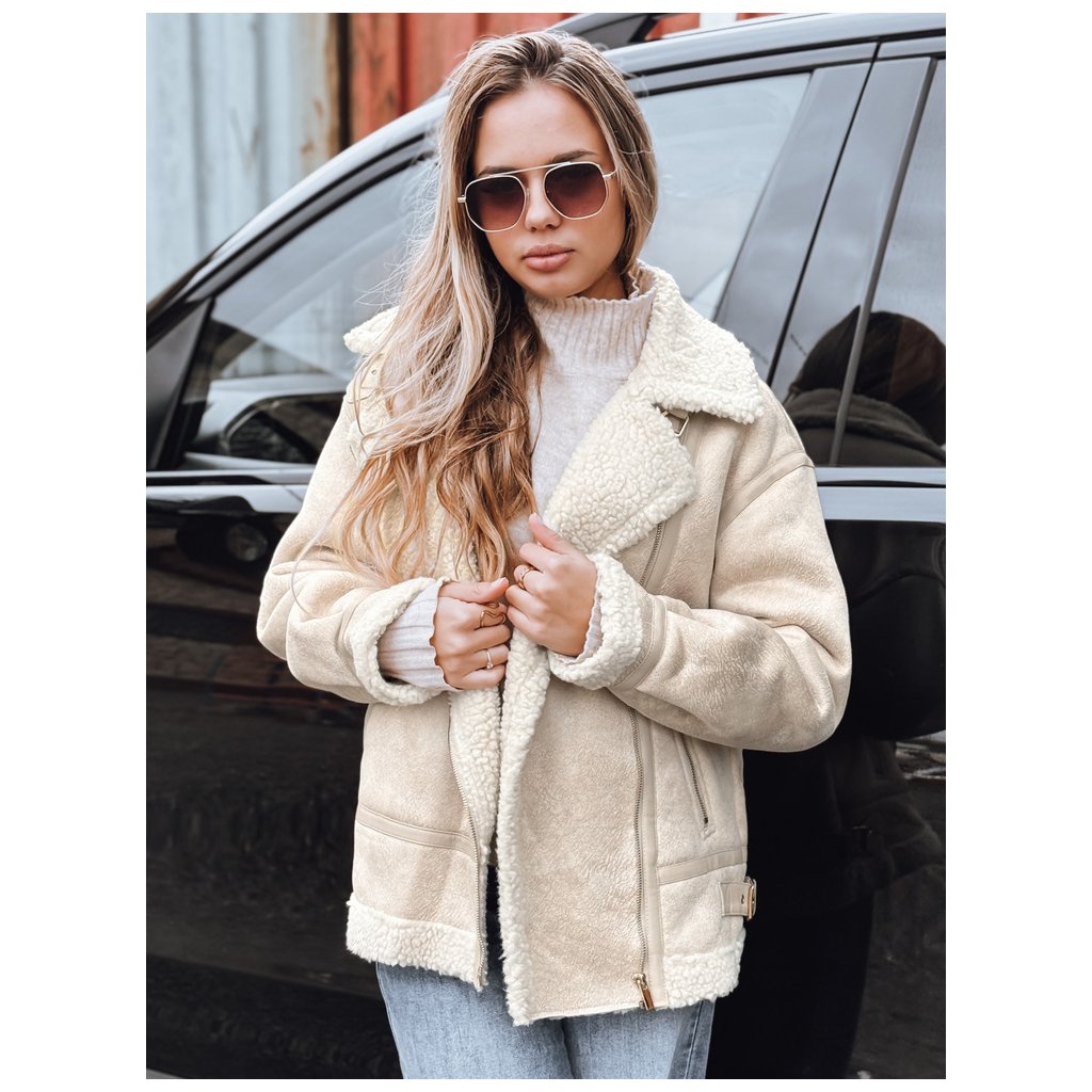 Dámska bunda z umelej ovčej kože TY5245 béžová