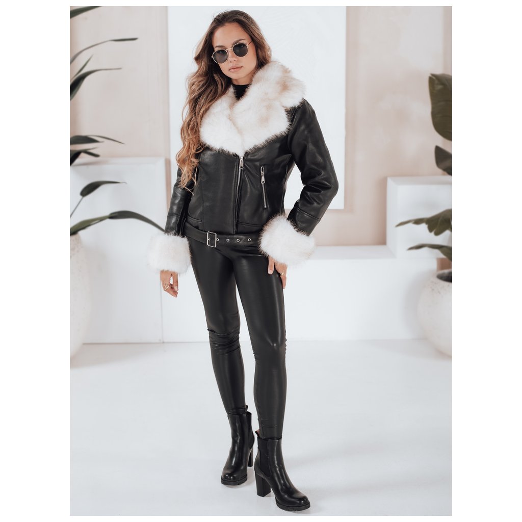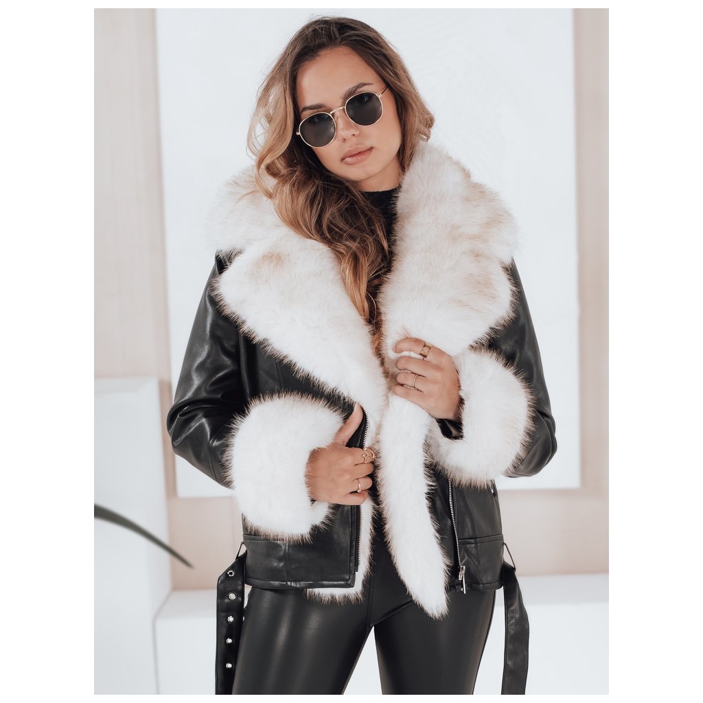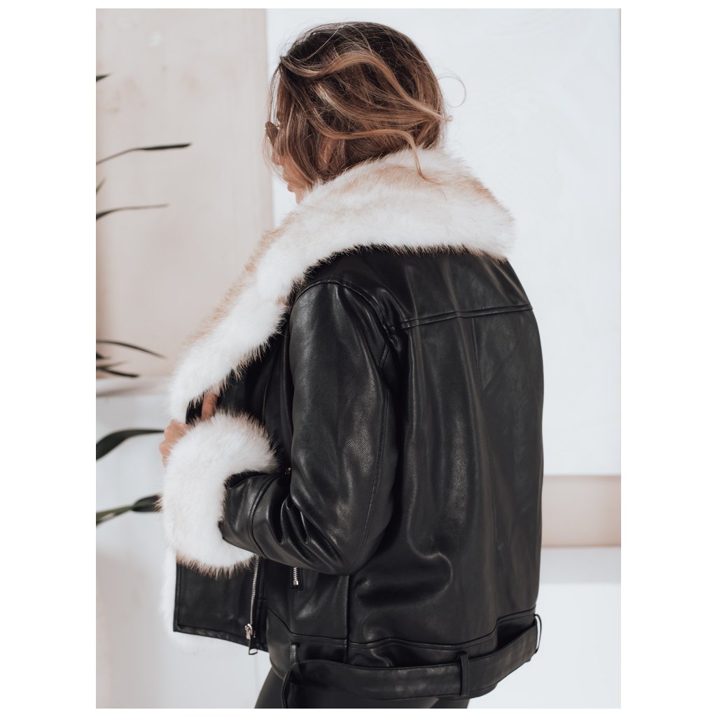 Bunda TY5122 je vyrobená z vysoko kvalitnej ekokože a ponúka nielen štýlový vzhľad, ale aj hrejivé pohodlie vďaka kožušinovej podšívke. Lesklá čierna povrchová úprava a strieborné pramene zdôrazňujú jej charakter. Skvelá voľba pre jesennú/zimnú sezónu.