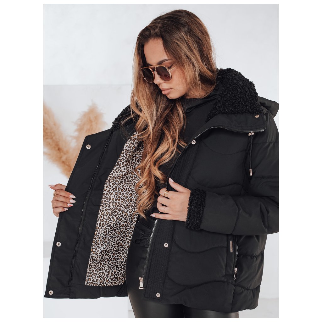 Táto dámska prešívaná bunda s izoláciou a kožušinovým golierom je ideálnou voľbou pre chladnejšie dni. Štýlová podšívka s leopardou potlačou dodáva bundičke charakter. Zapína sa na zips a cvoky a má praktické vrecká a kapucňu. Ideálna na jeseň a zimu.