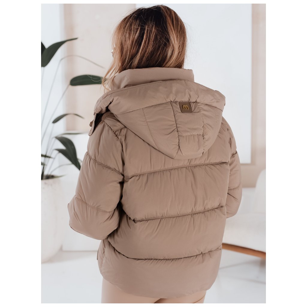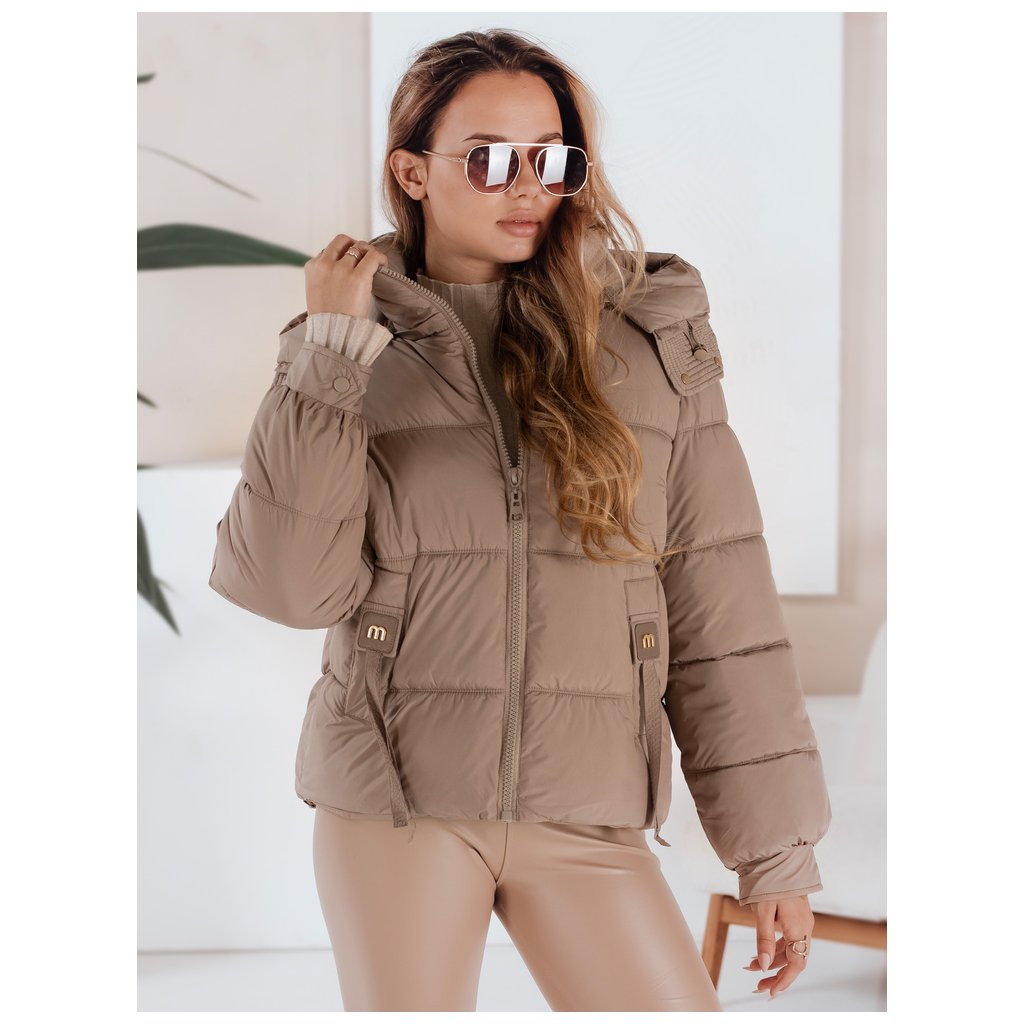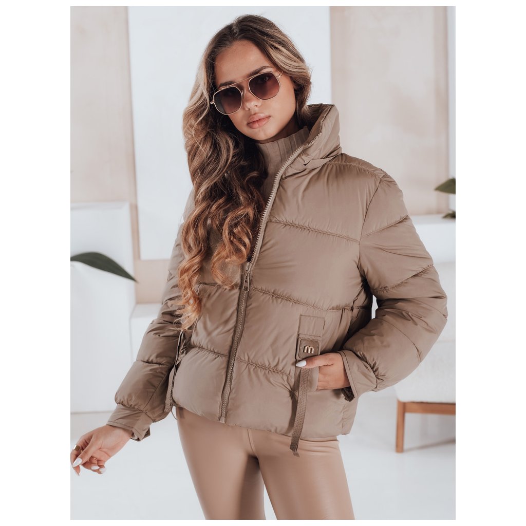 Dámska zimná bunda. Zapínanie na zips. Odnímateľná kapucňa. Dve vonkajšie vrecká. Farba: Ťavia. Zloženie: 100% polyester. Miery modelky:
