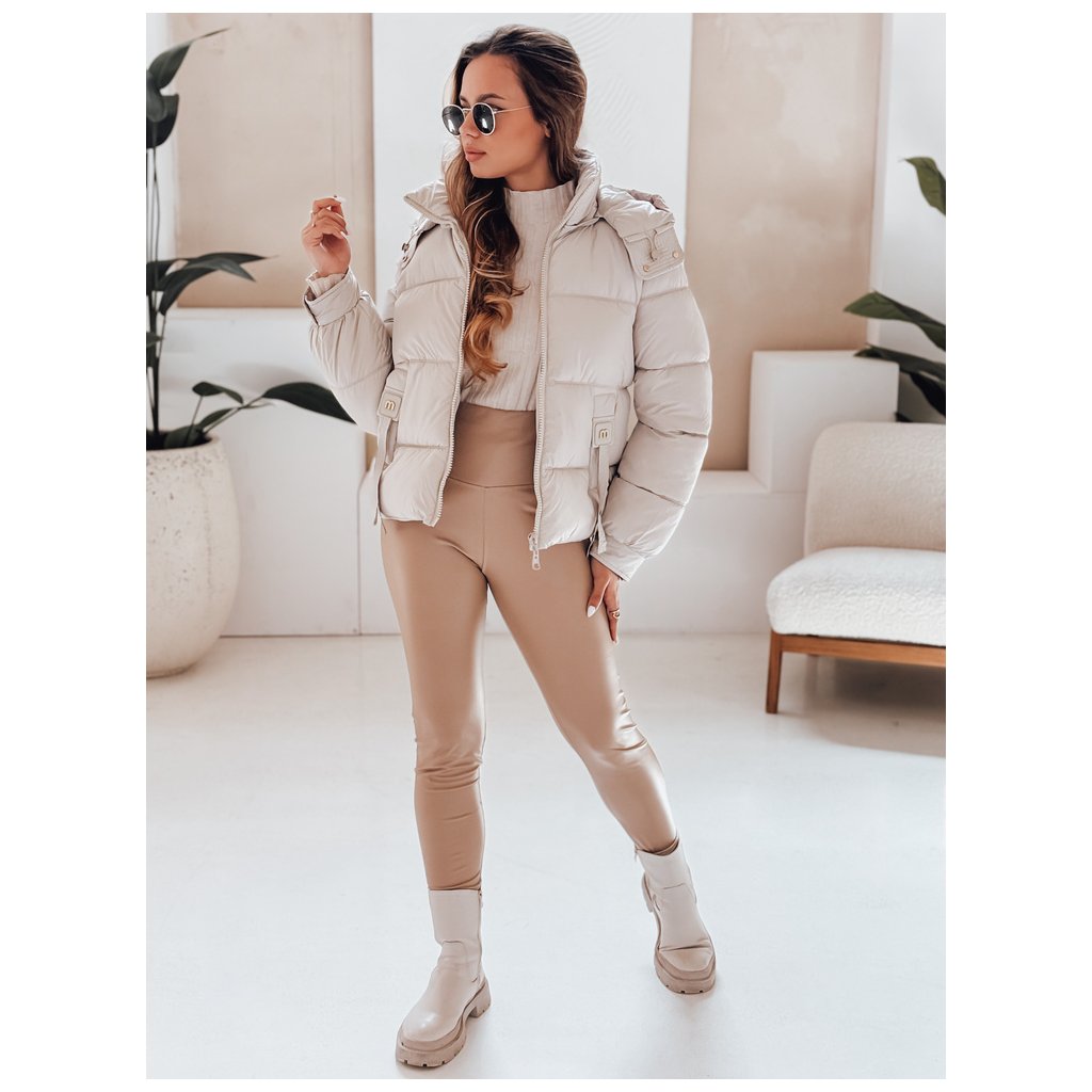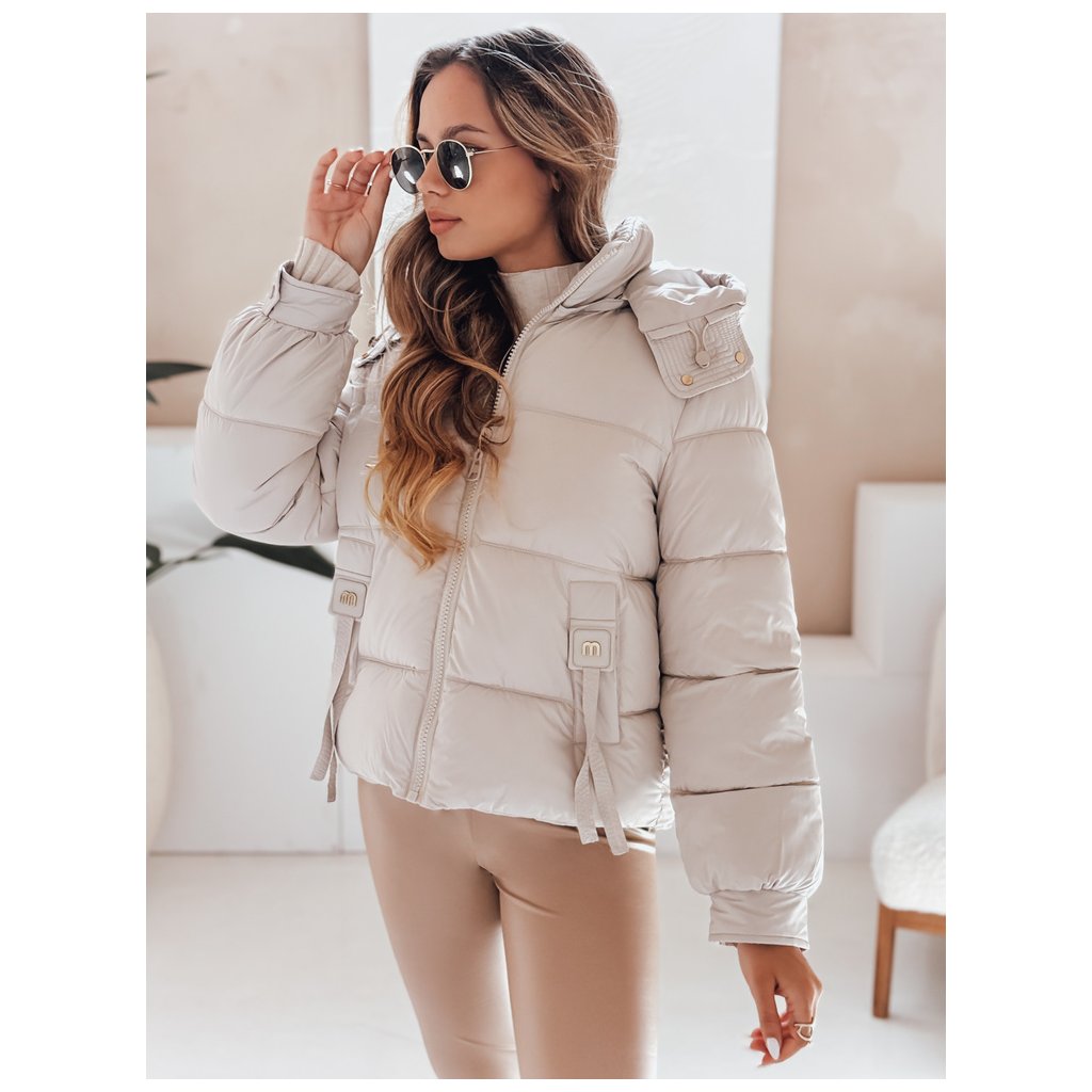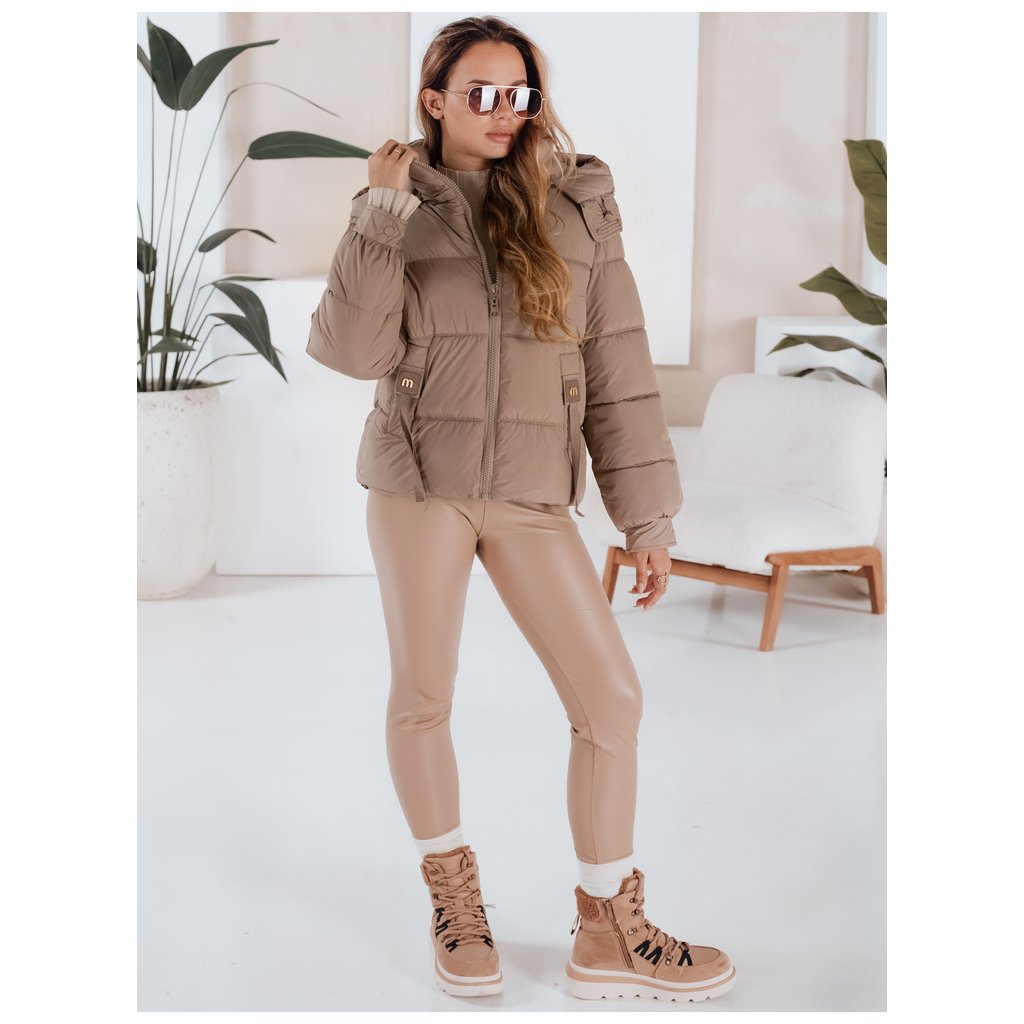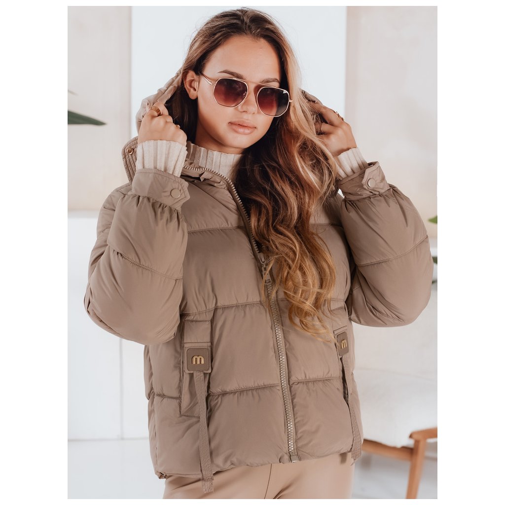 Dámska zimná bunda. Zapínanie na zips. Odnímateľná kapucňa. Dve vonkajšie vrecká. Farba: Ťavia. Zloženie: 100% polyester. Miery modelky: