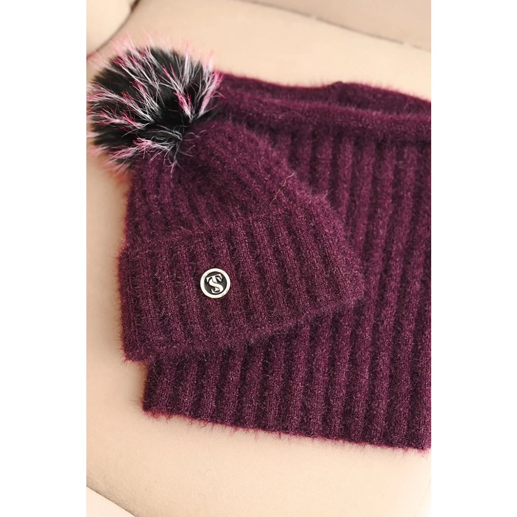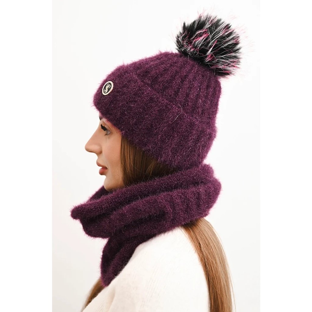 Dámska zimná súprava s brmbolcom a šálom fialová