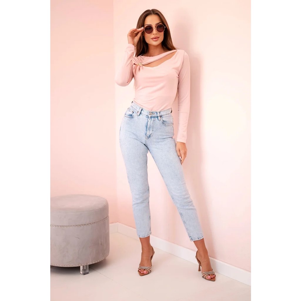 Elegantné dámske body s dlhým rukávom, ktoré zvýrazní vašu postavu a dodá vášmu outfitu jedinečný charakter. Model sa vyznačuje jemným riasením vo výstrihu, ktoré sa krásne prispôsobí postave, a ozdobnou sponou, ktorá dodáva eleganciu. Ideálne na špeciálne príležitosti, rande alebo večerné prechádzky. Priliehavý strih je ideálny k sukniam a nohaviciam s vysokým pásom.