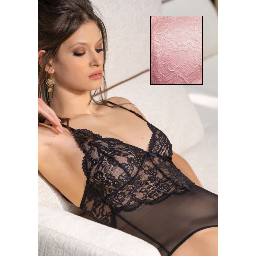 Dámske body Siélei v jemnej ružovej farbe pôsobí elegantne a zvodne zároveň. Hornú časť zdobí jemná čipka, ktorá prechádza do hladkého priehľadného tylu. Body je nevyztužené, s kosticou, dokonale zvýrazní ženskú siluetu a poskytne ľahkú oporu poprsia. Ramienka sú dĺžkovo nastaviteľné a zapínanie je prakticky umiestnené v rozkroku.