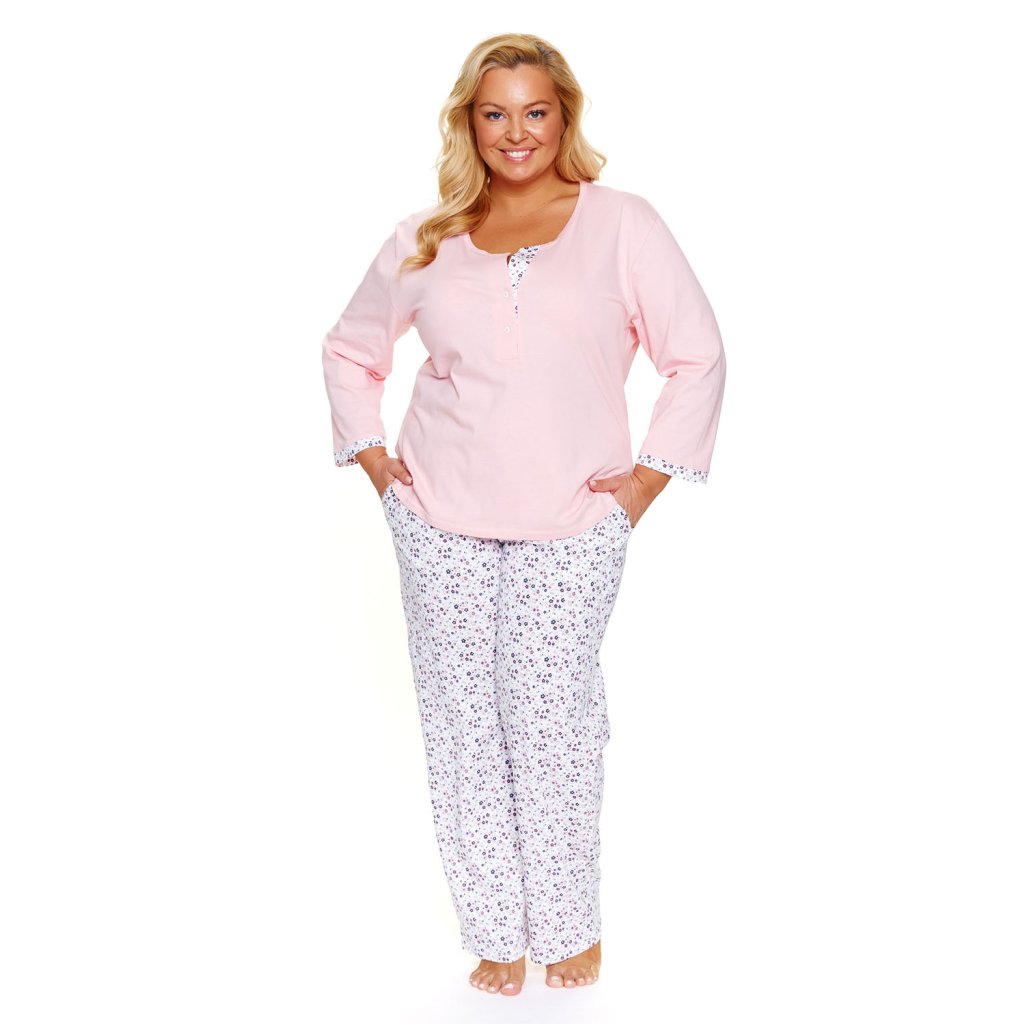 Doctor Nap 7324 – Dámska pyžamová súprava.Klasická pyžamová súprava Doctor Nap 7324 kombinuje pohodlie s jednoduchým dizajnom vhodným na každodenné nosenie. Horný diel má okrúhly výstrih s krátkou gombíkovou légou pre ľahké obliekanie a nastaviteľný strih. Dlhé rukávy a voľný strih zaisťujú pohodlie pri spánku a relaxácii doma. Blúzka má rovný lem, ktorý zaisťuje lichotivý strih. Súprava obsahuje dlhé nohavice s bočnými vreckami, ideálne na uloženie drobností. Elastický pás sa prispôsobí telu bez toho, aby zvieral. Nohavice sú po celej dĺžke a majú voľnejší strih, čo umožňuje voľnosť pohybu. Tento funkčný variant je ideálny pre tých, ktorí hľadajú jednoduchý, každodenný štýl s pohodlnými prvkami.