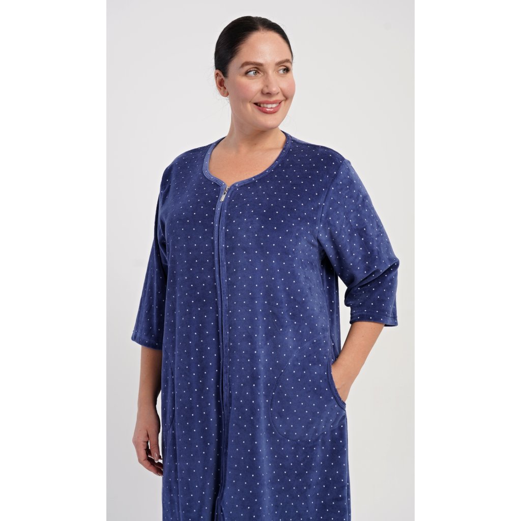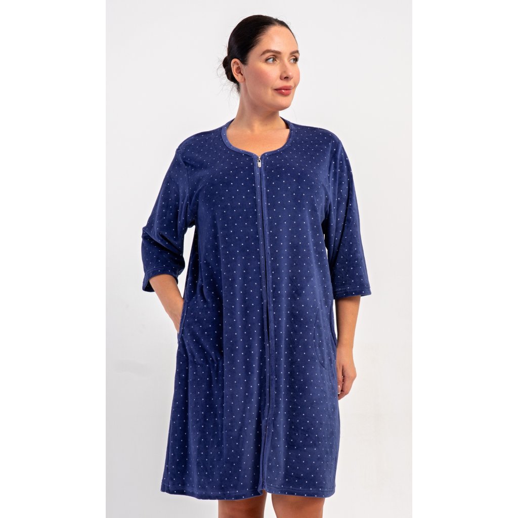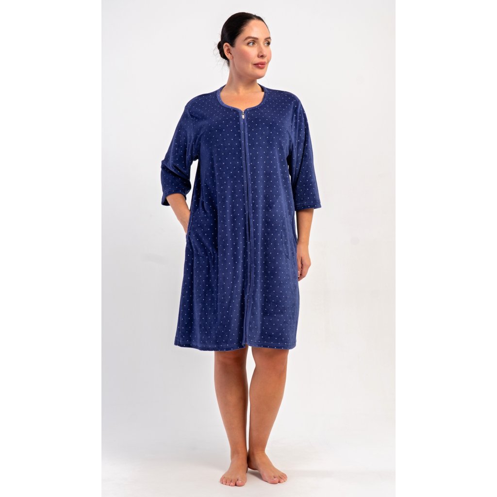 Dámske zamatové domáce šaty s trojštvrťovým rukávom Alex. Pohodlné šaty bez zapínania v príjemnej dĺžke pod kolená využijete takmer na všetky voľnočasové aktivity. Majú praktické vrecká a zapínanie na zips. Použitý zamatový materiál s obsahom bavlny 80% je príjemný a poddajný na dotyk.