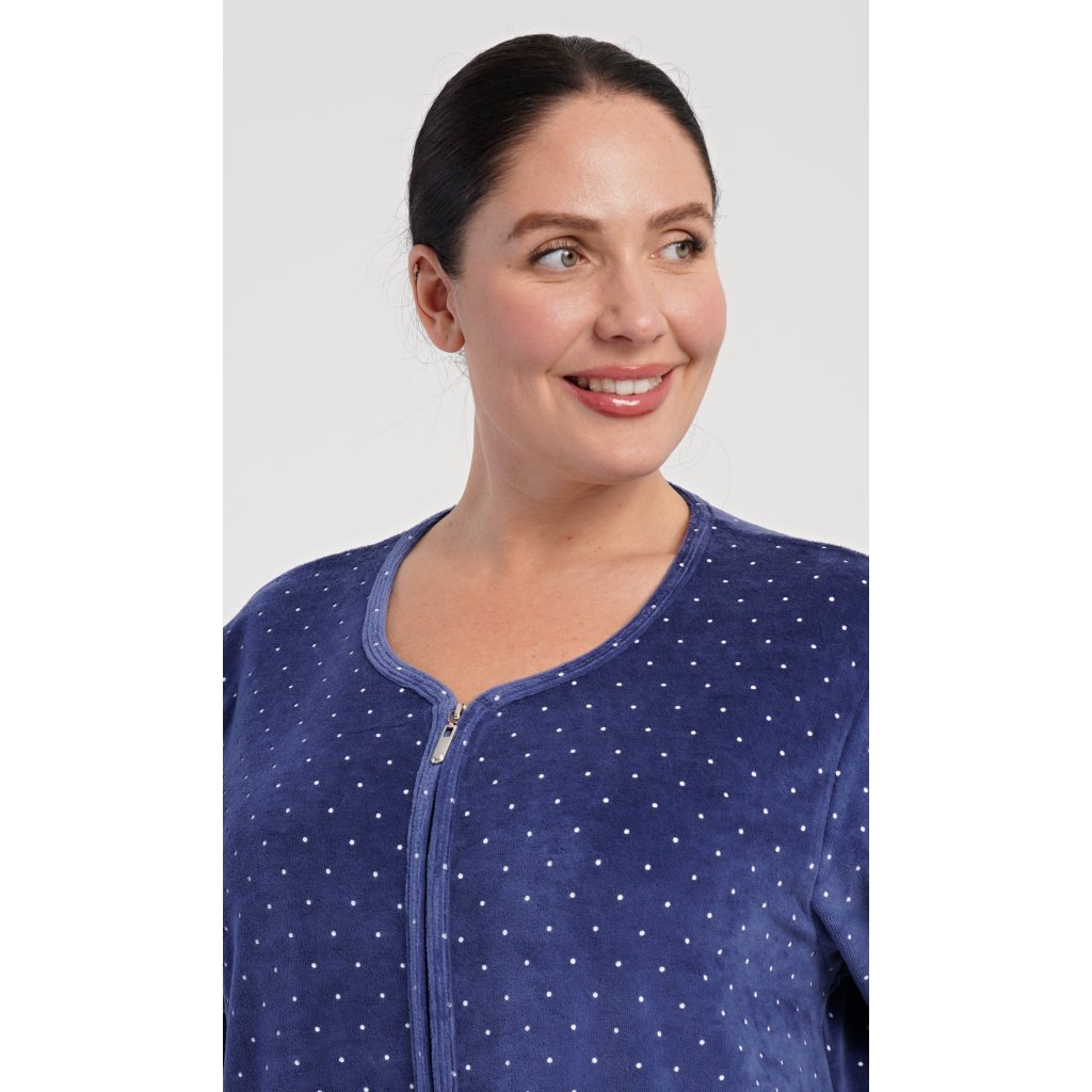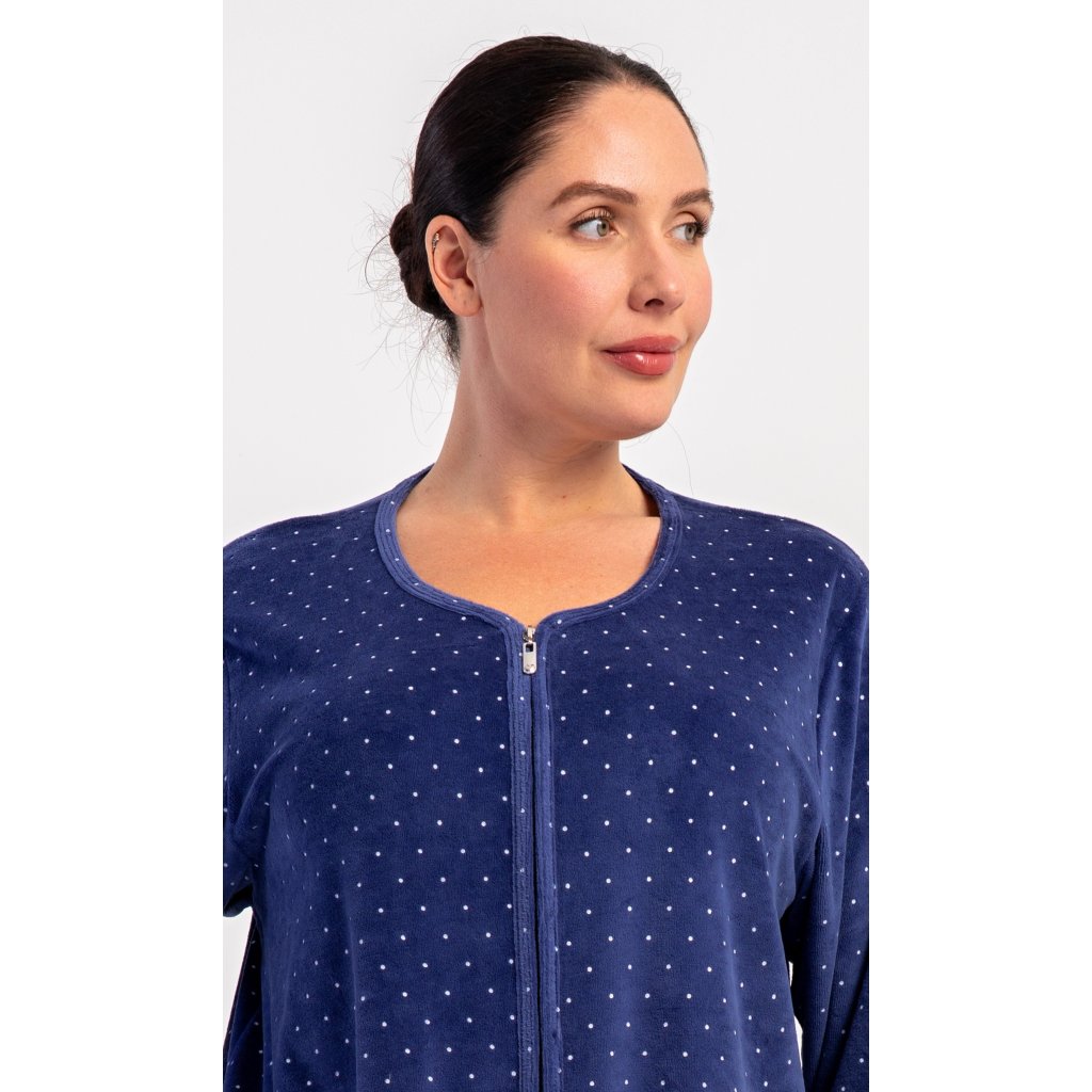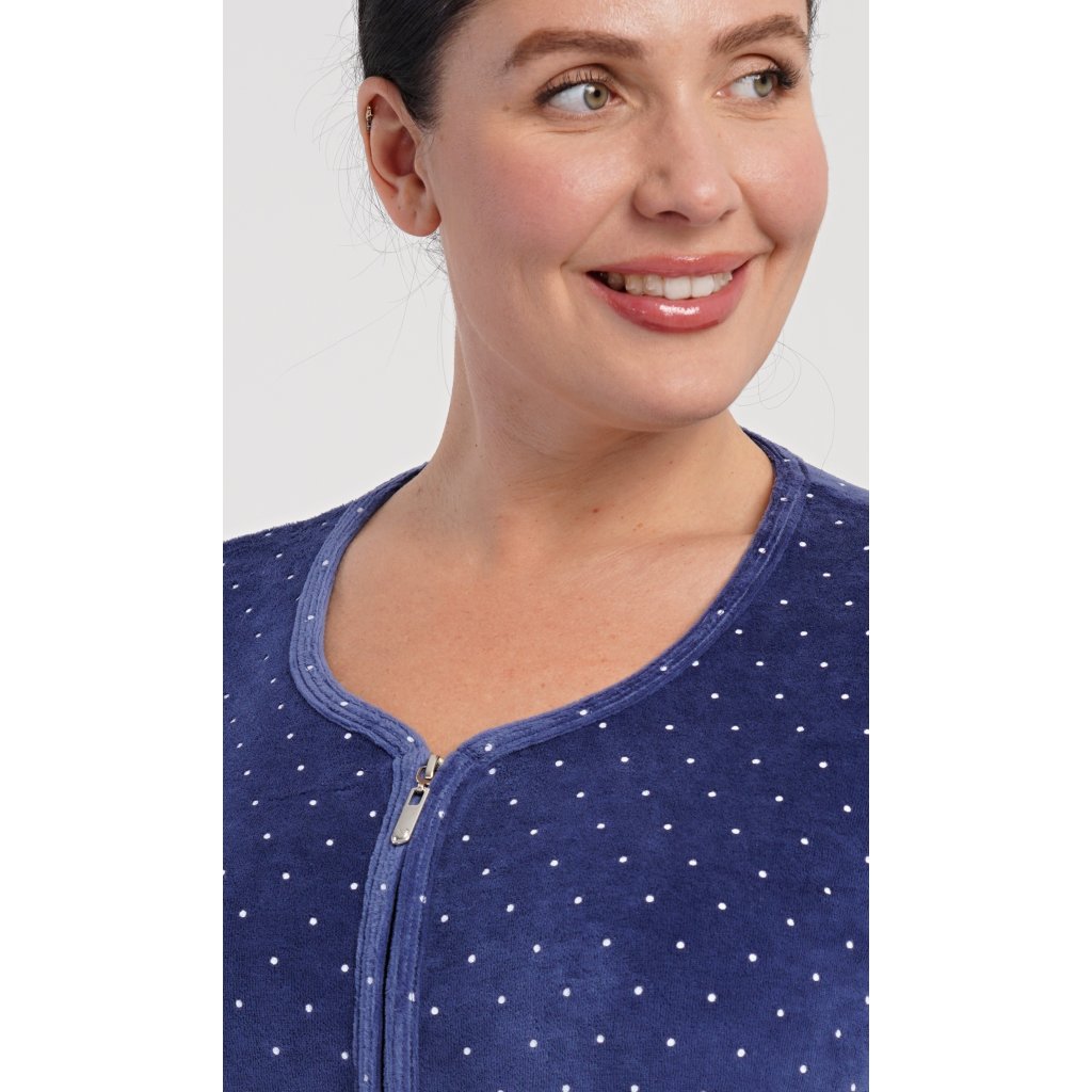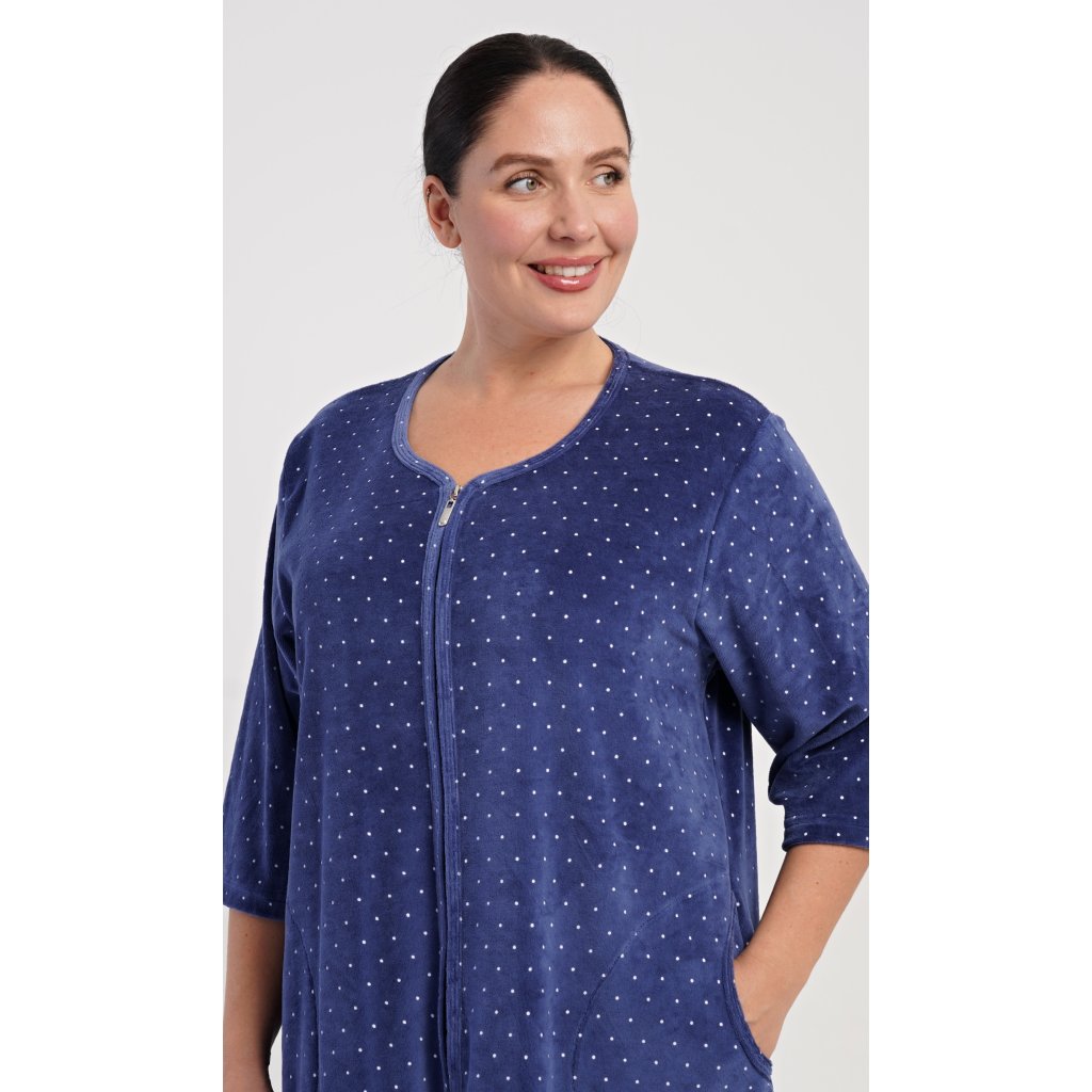 Dámske zamatové domáce šaty s trojštvrťovým rukávom Alex. Pohodlné šaty bez zapínania v príjemnej dĺžke pod kolená využijete takmer na všetky voľnočasové aktivity. Majú praktické vrecká a zapínanie na zips. Použitý zamatový materiál s obsahom bavlny 80% je príjemný a poddajný na dotyk.