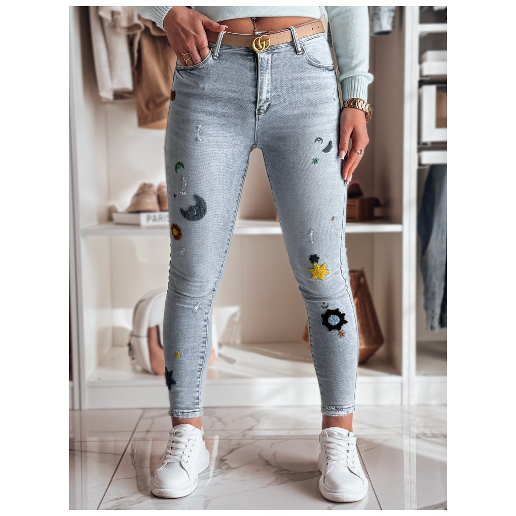 Dámske úzke džínsy s výšivkou MOONAIR