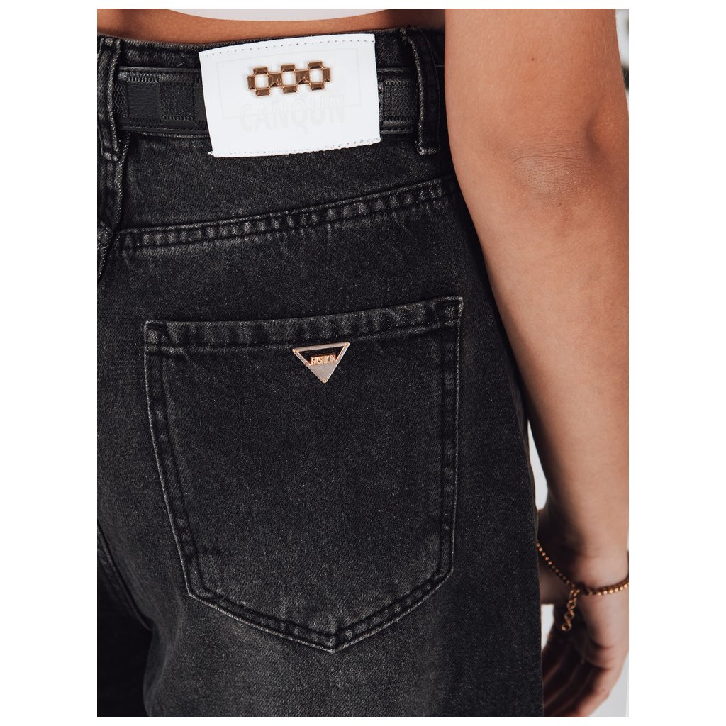 Džínsy majú vysoký pás, ktorý drží pás na mieste a zoštíhľuje postavu.