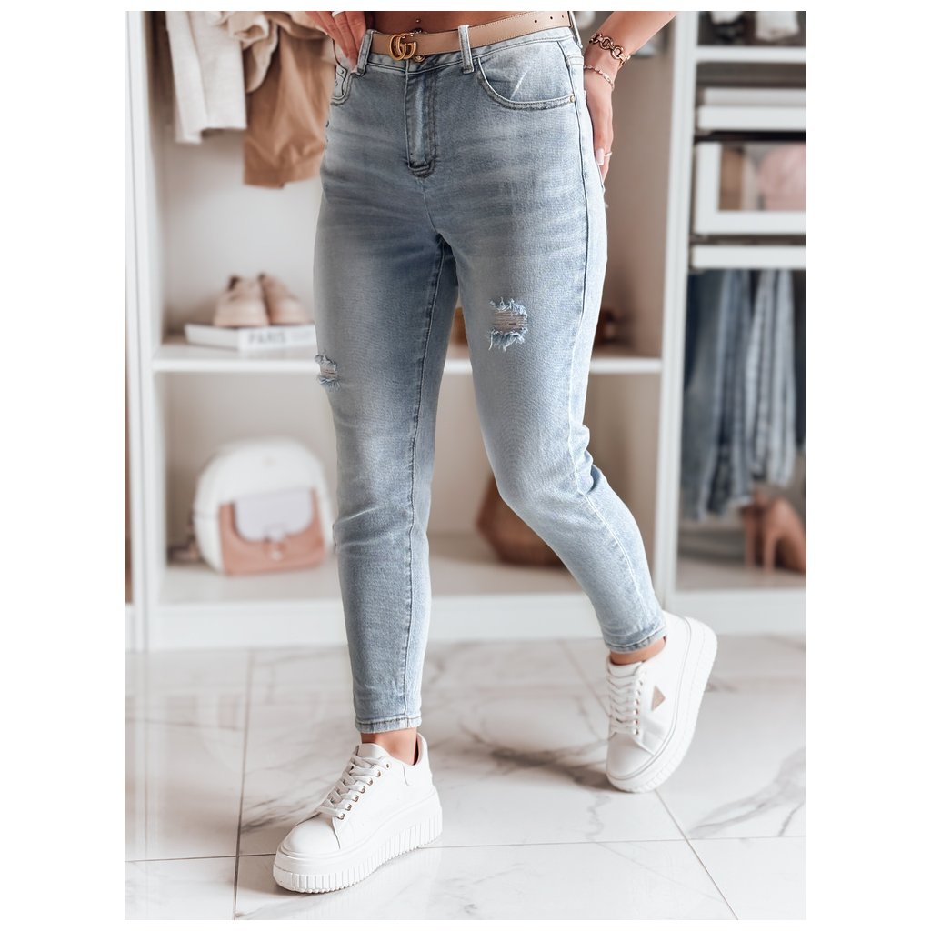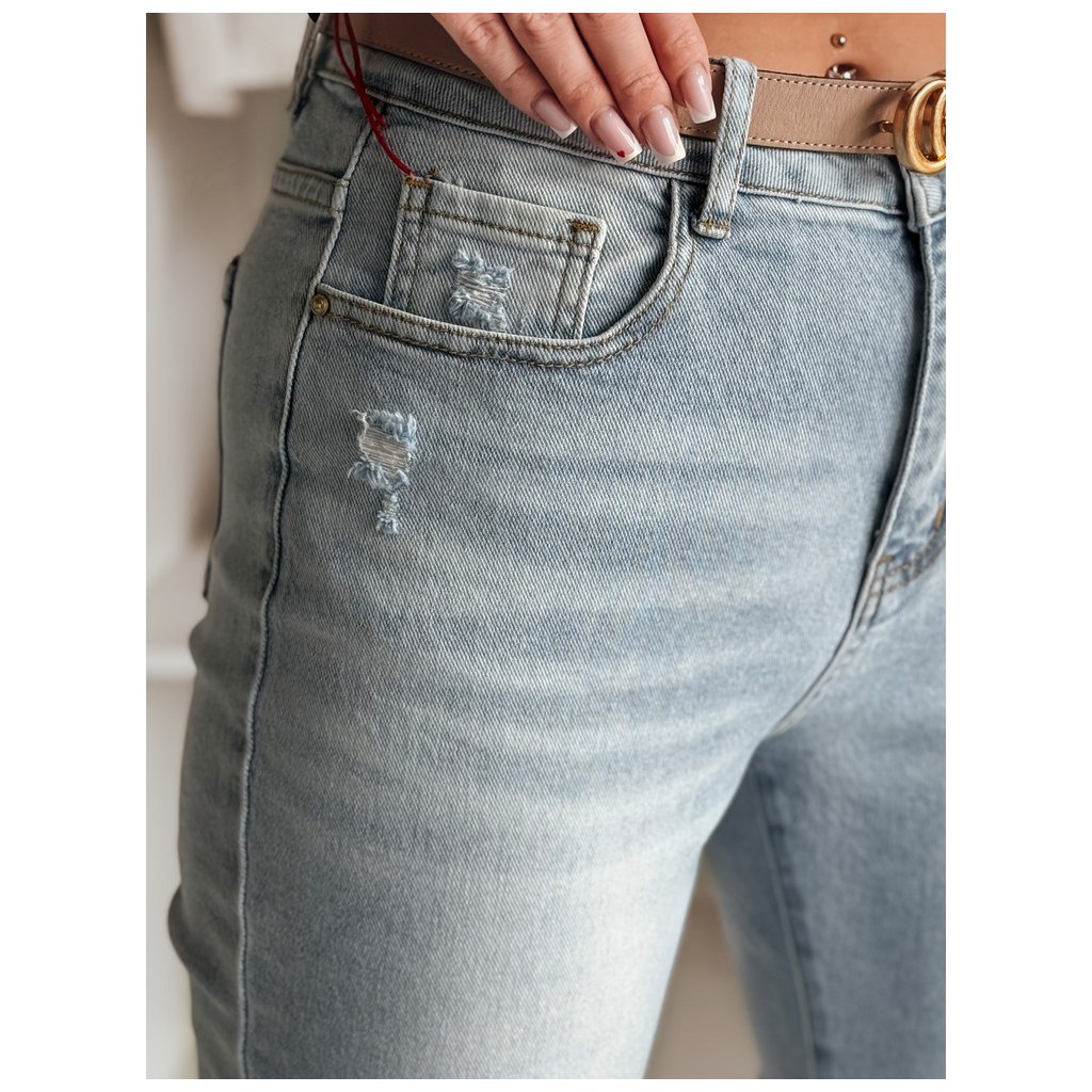 Tieto džínsy s vysokým pásom a moderným strihom sú klasikou. Pohodlný strih umožňuje voľný pohyb a štýlové detaily s popraskanými detailmi dodávajú módny nádych. Zapínajú sa na gombík a zips a majú ozdobné vrecká. Dĺžka nohavíc 7/8 sa perfektne hodí k teniskám aj elegantným podpätkom.