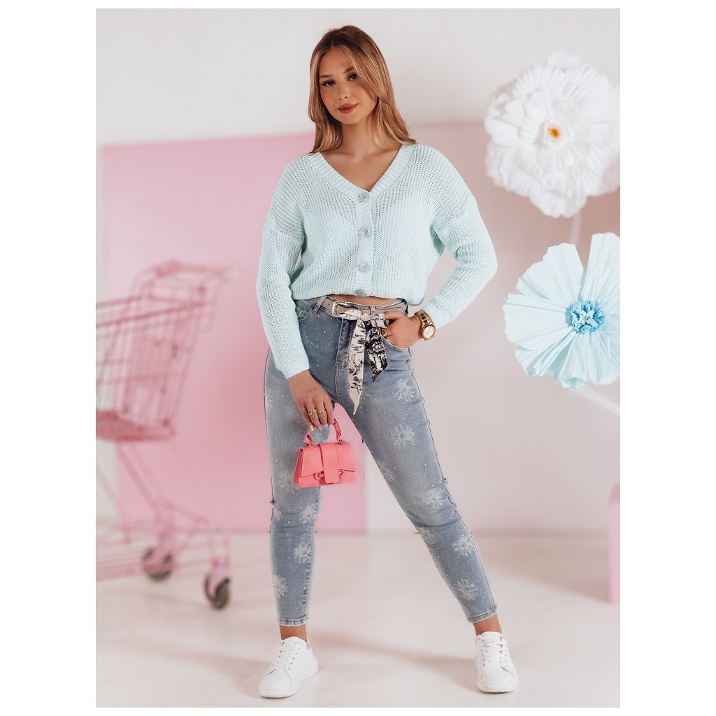 Úzke džínsy s vysokým pásom, ktoré lichotia postave a opticky predlžujú nohy. Tento štýl kombinuje eleganciu s nádychom trblietania. Zdobené sedmokráskami a decentnými kamienkami dodajú každému outfitu jedinečný nádych. Majú ozdobné vrecká a zapínanie na zips a gombík. Súčasťou je opasok na zvýraznenie pása. Nohavice končia tesne pod členkami, čo umocňuje štýlový vzhľad. Všestranné a nadčasové, ideálne pre ležérne aj elegantné outfity.