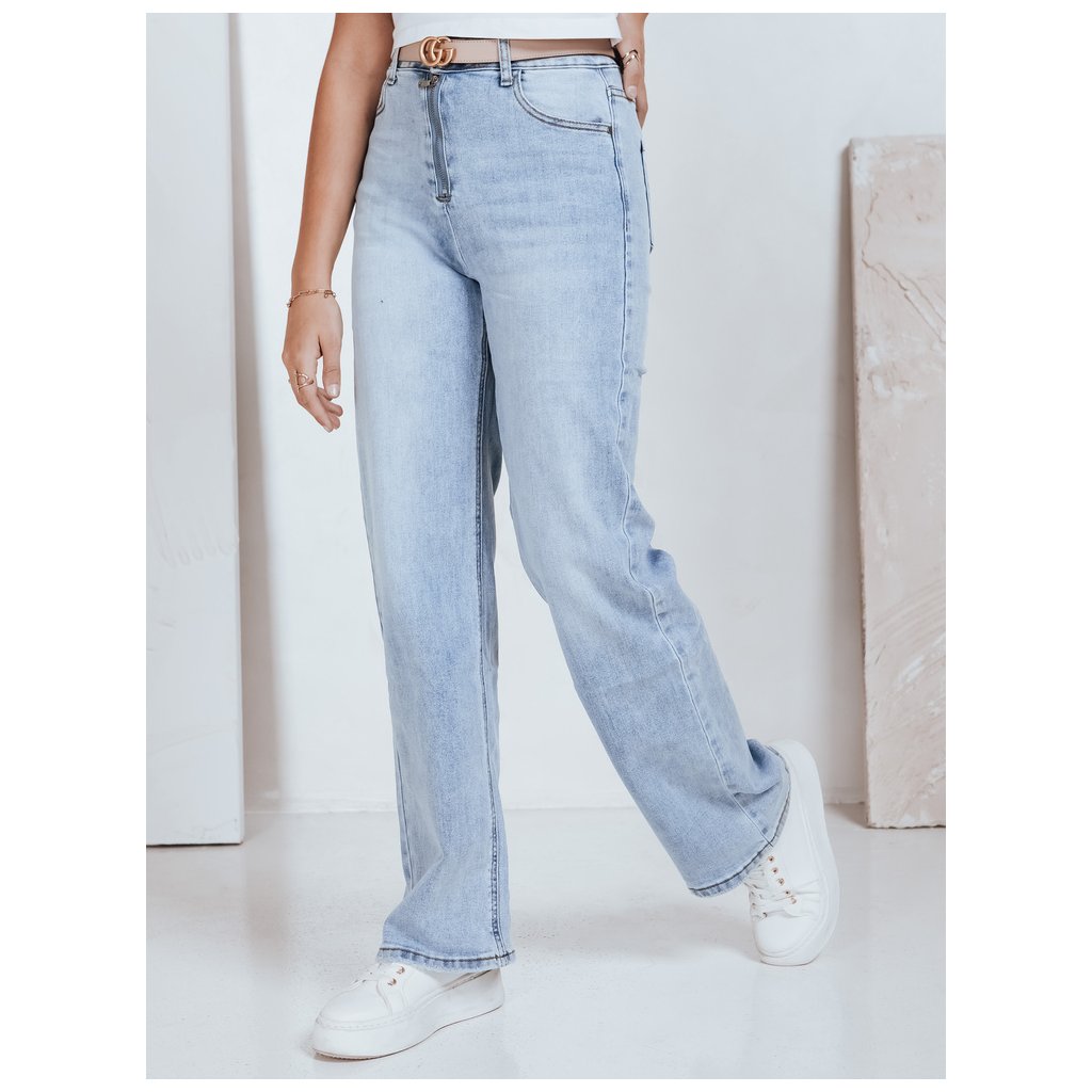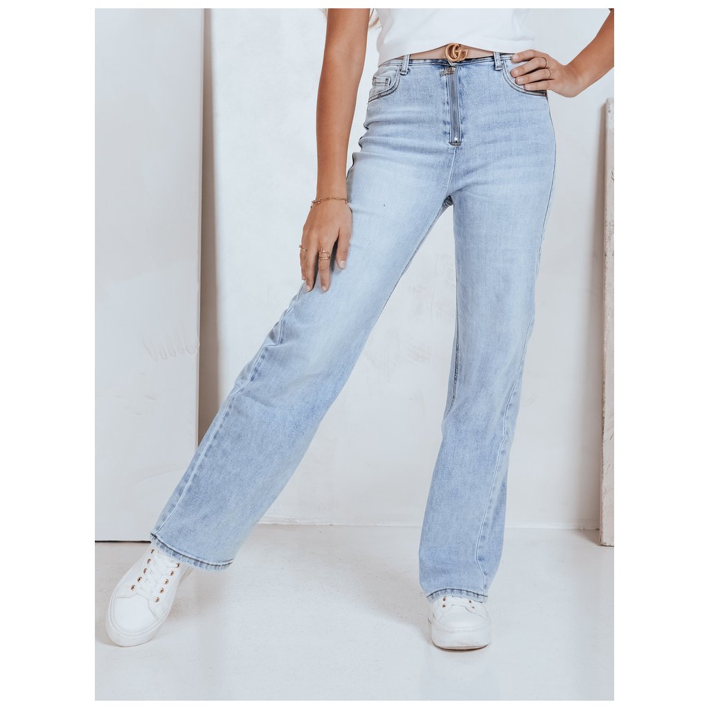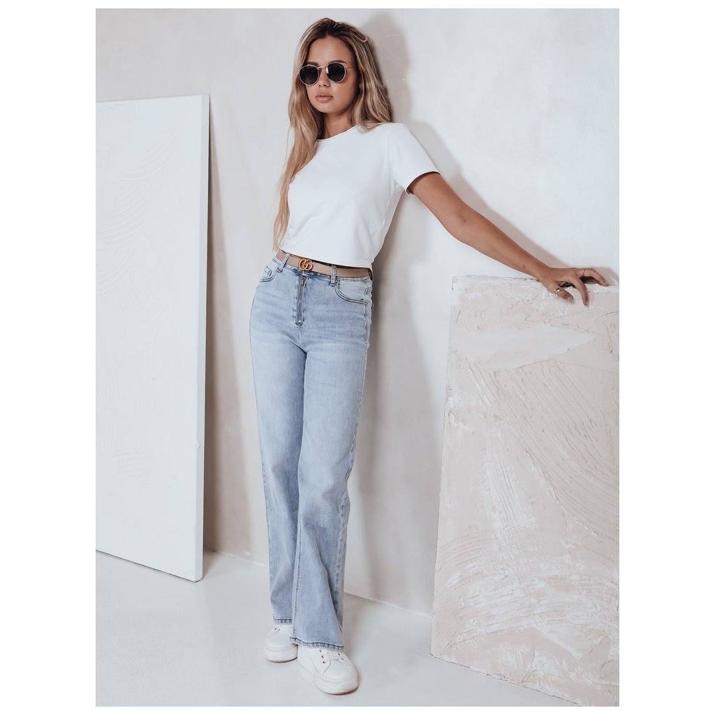 Dámske džínsy s vysokým pásom a širokými nohavicami, svetlomodré UY2786