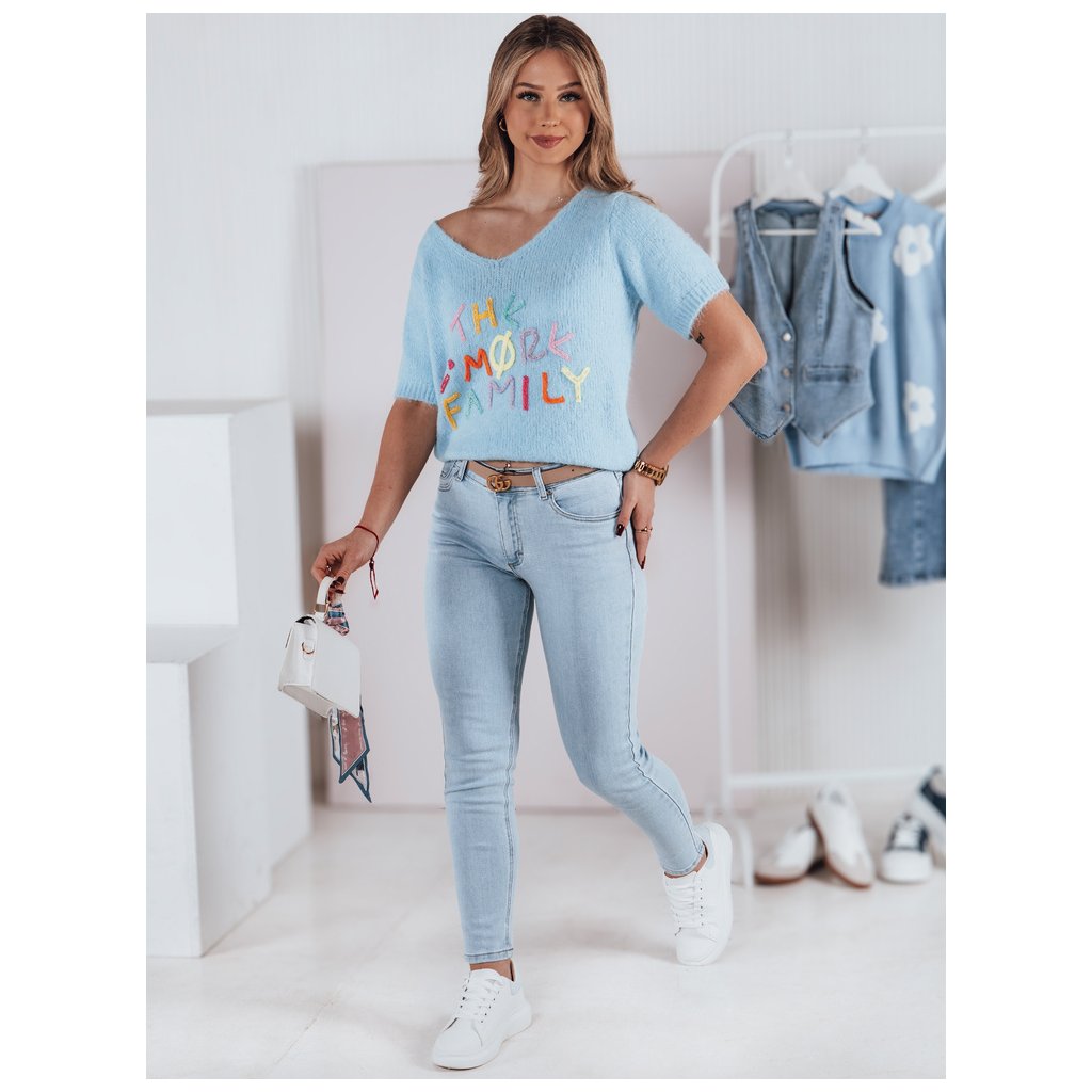 Dámske džínsy. Zapínanie na zips a gombík. Štyri vrecká. Vysoký pás. Farba: Svetlo modrá. Zloženie: 93% bavlna, 5% polyester, 2% elastan.