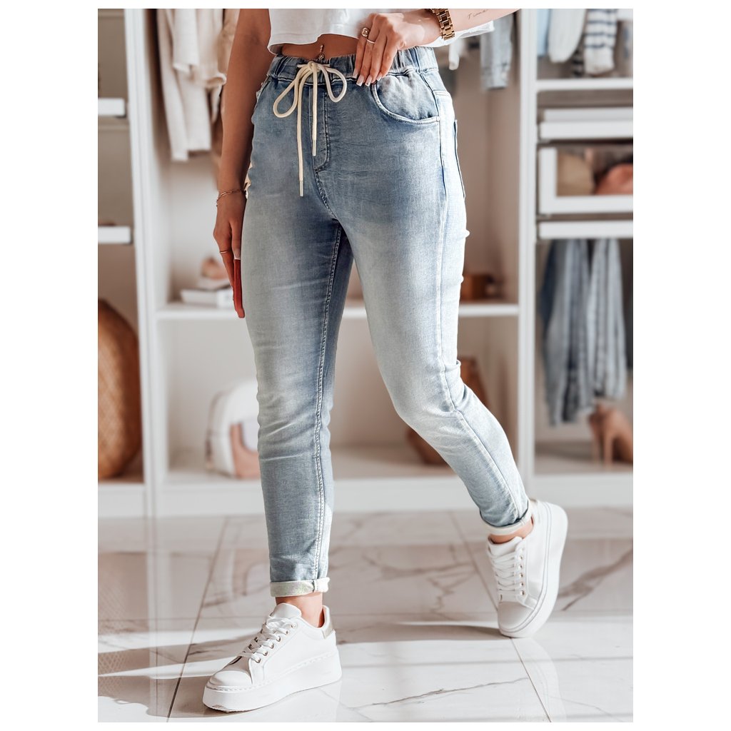 Dámske džínsové džínsy slim fit dokonale lichotia postave. Pohodlný elastický pás a zaväzovanie zaisťujú pohodlie a priliehavý strih. Klasický strih s prednými a zadnými vreckami z nich robí všestranný každodenný nevyhnutný kúsok šatníka. Vysoký pás dodáva eleganciu a umožňuje perfektné padnutie.