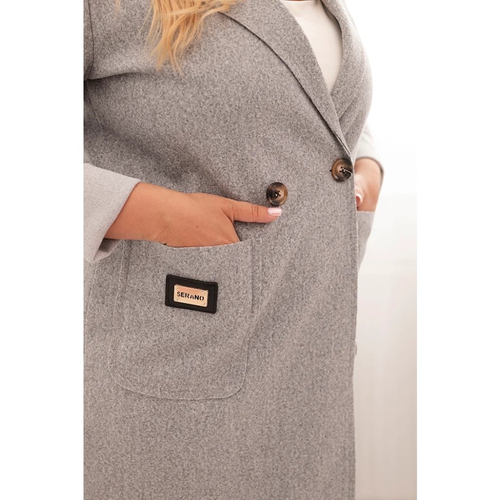 Tento klasický dámsky kabát Plus Size je nadčasový návrh pre ženy, ktoré si cenia jednoduchosť, eleganciu a pohodlie. Model je vyrobený z príjemného materiálu s jednolitou štruktúrou, má dvojradové zapínanie na gombíky, široký golier a praktické, veľké vrecká s ozdobnou nášivkou. Voľný, jednoduchý strih skvele sedí na postave a zaisťuje voľnosť pohybu.