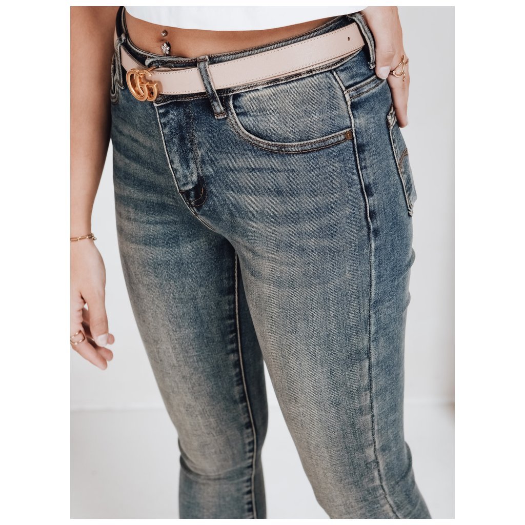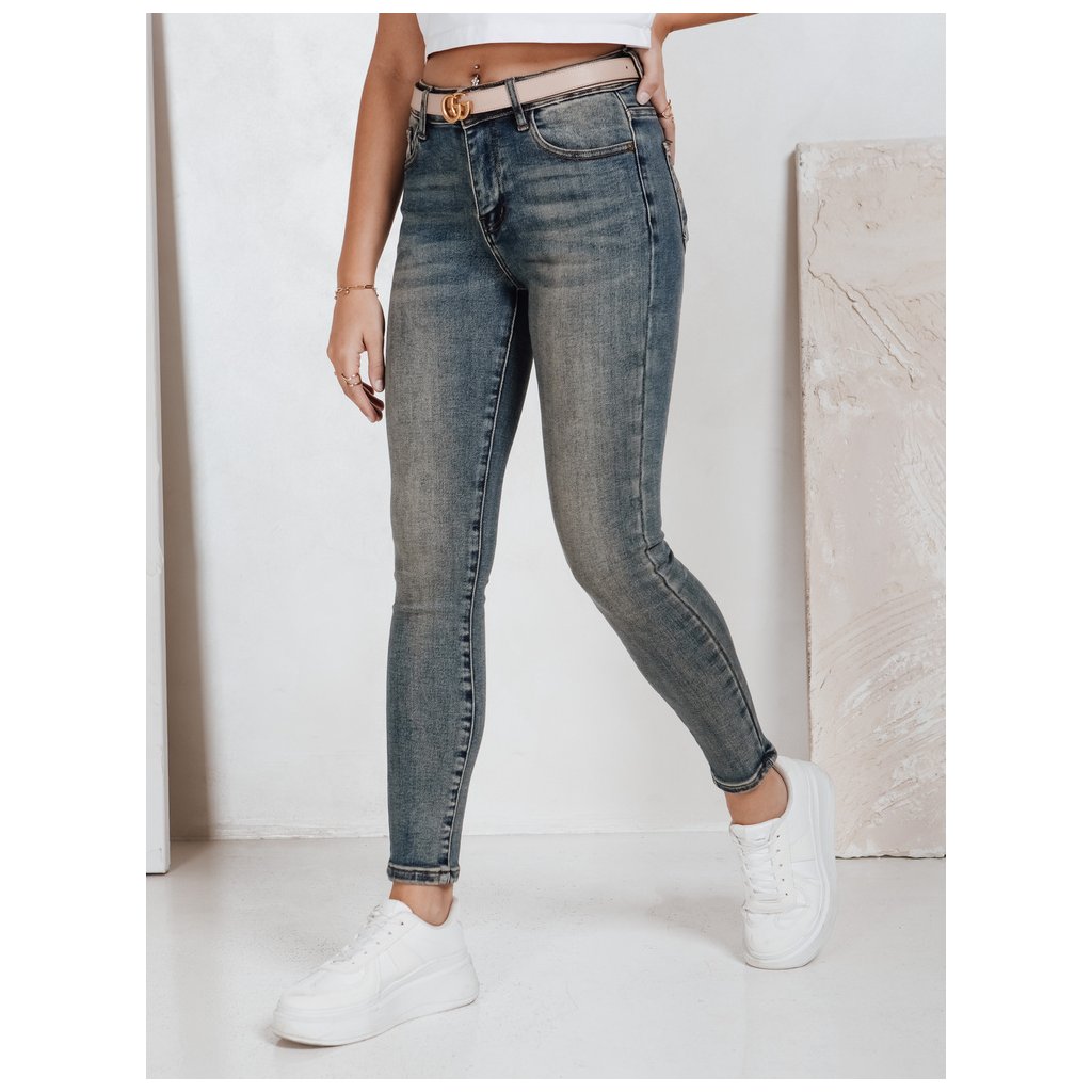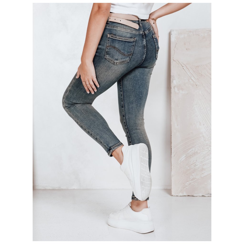 Tieto dámske úzke džínsy sú klasického strihu s moderným nádychom. Vysoký pás zdôrazňuje pás a zaisťuje stabilné nosenie po celý deň. Modrý denim s efektom prania dodáva modelu moderný charakter a je vhodný ako pre ležérne, tak aj pre ženské outfity.