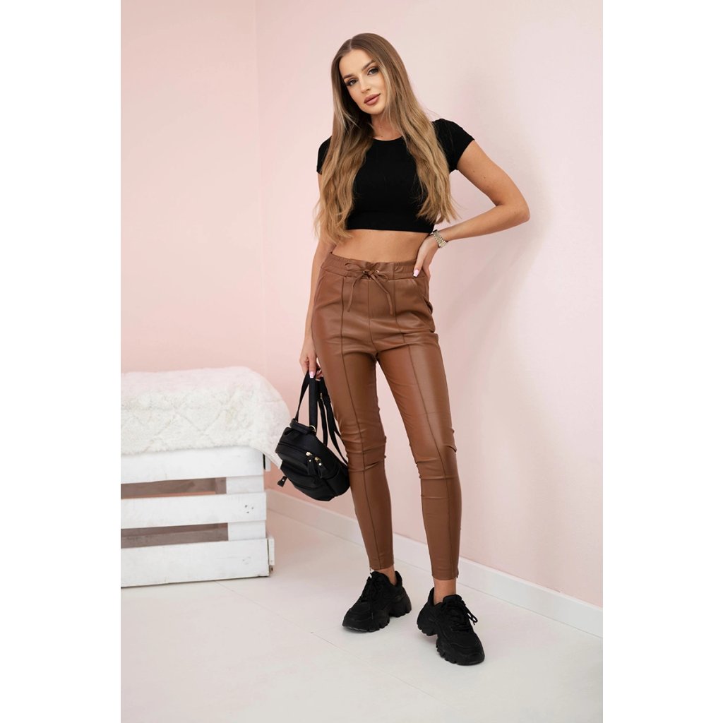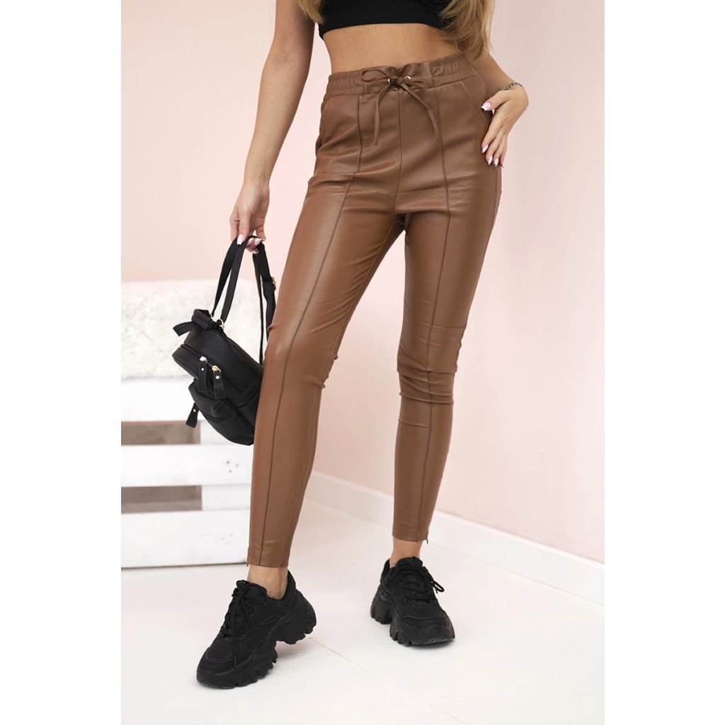 Tieto elegantné dámske nohavice z eko kože sú ideálnou voľbou pre ženy, ktoré si cenia moderný štýl a pohodlie. Vyrobené z vysoko kvalitnej umelej kože pôsobia veľmi módne a sú skvelou voľbou pre rôzne príležitosti – od každodenného nosenia až po štýlové stretnutia. Majú pohodlný elastický pás s dodatočným zaväzovaním, ktorý zaisťuje dokonalé prispôsobenie postave. Rovný strih s vertikálnym prešívaním opticky predlžuje nohy a módne rozparky na spodnej časti nohavíc dodávajú charakter. Skvele ladia ako s elegantnými blúzkami, tak so športovými mikinami alebo klasickými svetrami. Sú univerzálnym základom mnohých outfitov, ktorý priťahuje pozornosť a zvýrazňuje ženskú postavu.