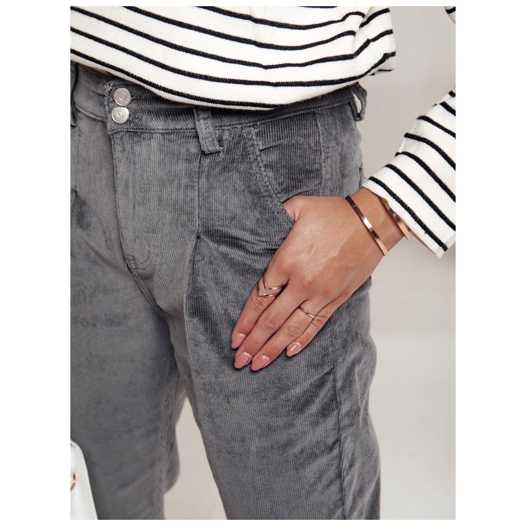Pohodlné, voľné nohavice z mäkkej tkaniny sú ideálne ako na každodenné nosenie, tak aj na formálnejšie príležitosti. Ich ležérny vzhľad a mierne zúžené nohavice vytvárajú štíhlejšiu siluetu a zároveň zdôrazňujú pohodlie. Tieto nohavice sa dobre hodia k rôznym outfitom, čo z nich robí všestranný základný kúsok šatníka.