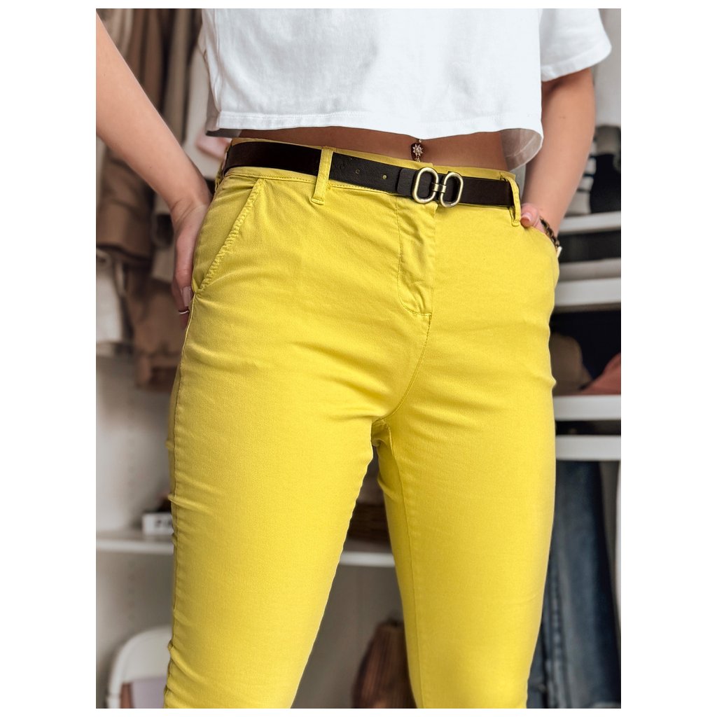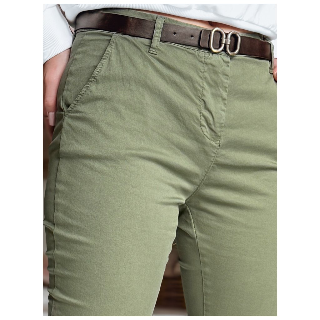 Tieto dámske nohavice slim fit dokonale zvýrazňujú postavu a opticky zoštíhľujú nohy. Majú zapínanie na gombík a zips, dve predné vrecká a ozdobné zadné vrecká. Stredne vysoký pás zaisťuje pohodlie, zatiaľ čo pripevnený opasok dodáva štýlový nádych. Ideálne na každodenné nosenie aj elegantné outfity.