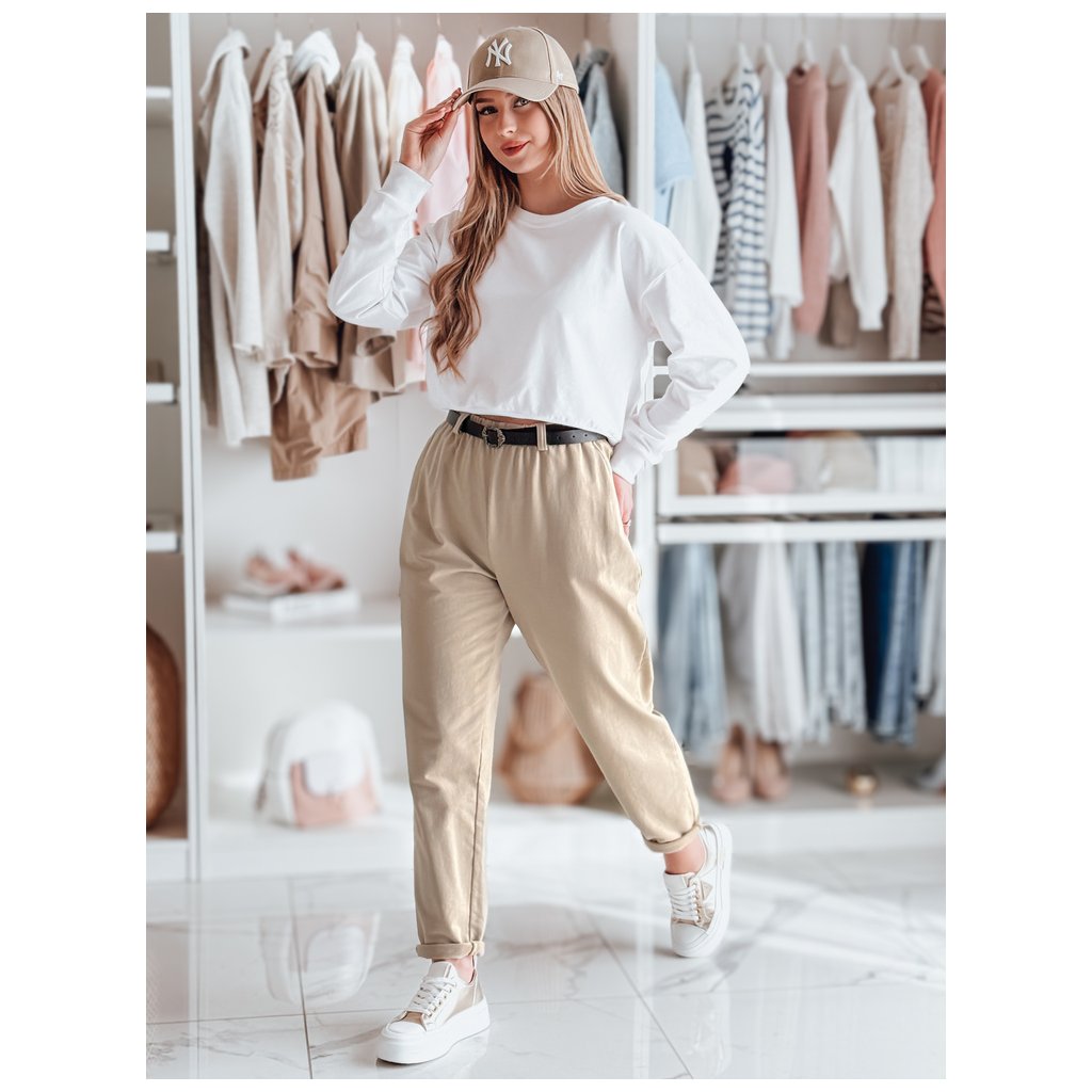 Dámske nohavice s opaskom TAILANDI latte Dstreet UY2549
