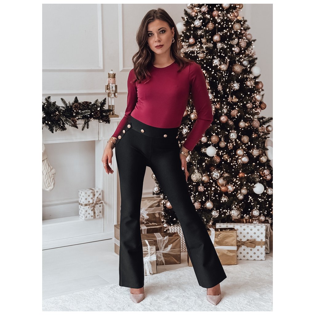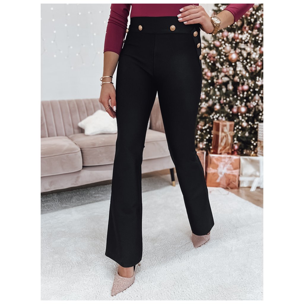 Elegantné nohavice s vysokým pásom a širokými nohavicami, ktoré dodávajú siluete eleganciu a ľahkosť. Zdobené decentnými gombíkmi po stranách, zdôrazňujú pás a dodávajú nádych elegancie. Ideálne pre mnoho príležitostí, od sviatočných stretnutí až po formálne obchodné schôdzky. Vyrobené z pružného materiálu, poskytujú celodenné pohodlie. Klasika, ktorá nikdy nevyjde z módy, ideálna na kombináciu s elegantnými podpätkami alebo ležérnou obuvou.