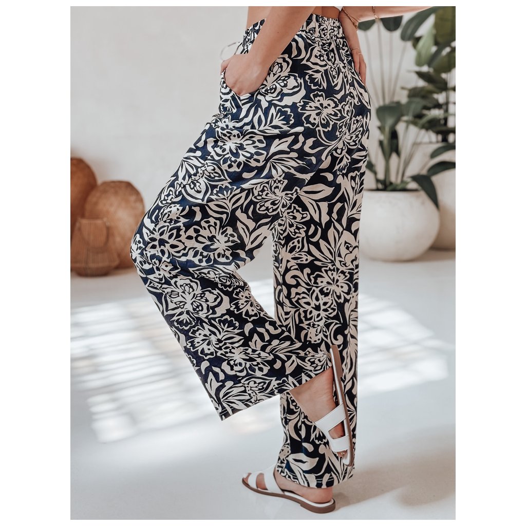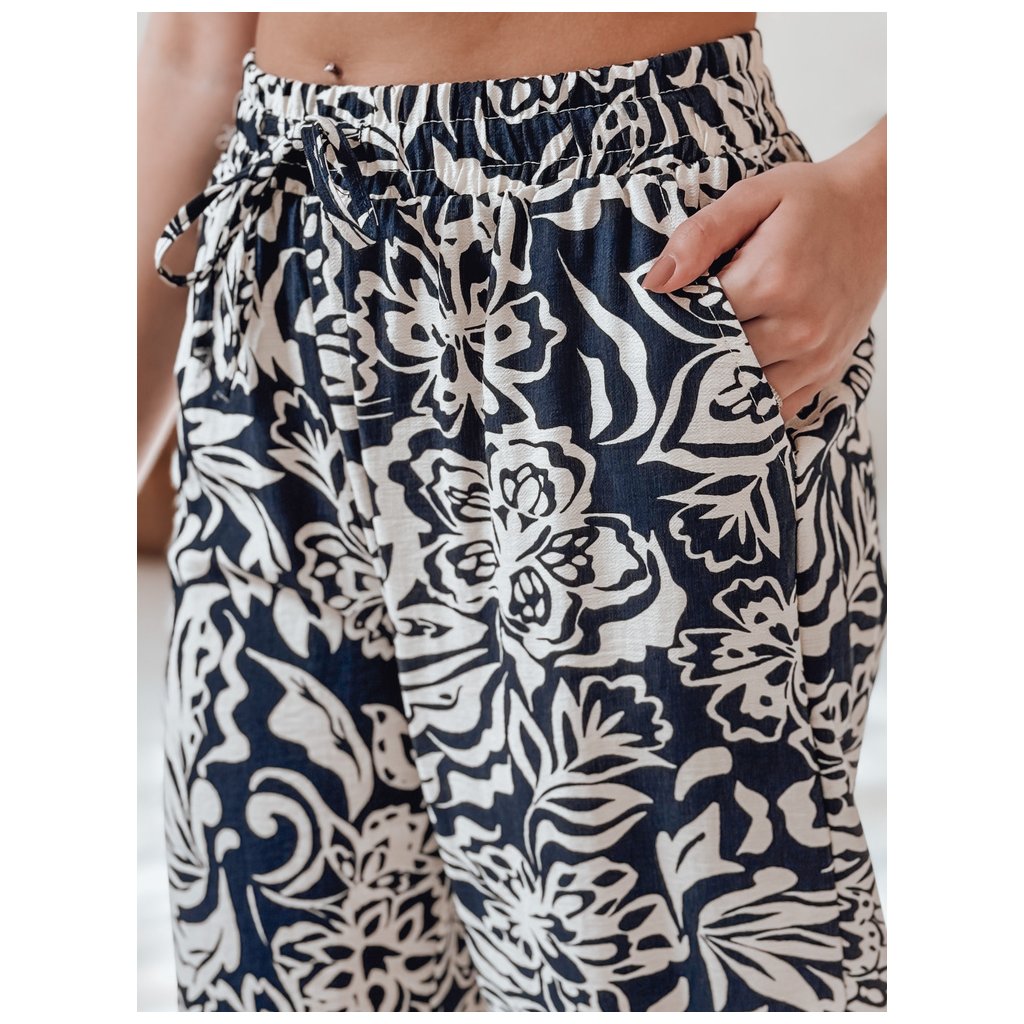 Tieto ľahké široké nohavice s elastickým pásom a zaväzovaním zaujmú nielen svojím pohodlím, ale aj módnou kvetinovou potlačou. Priedušná tkanina je ideálna na letné prechádzky, výlety a každodenné outfity. Vysoký pás opticky predlžuje postavu, zatiaľ čo vrecká dodávajú ležérny a očarujúci nádych. Ideálne na jar a leto.