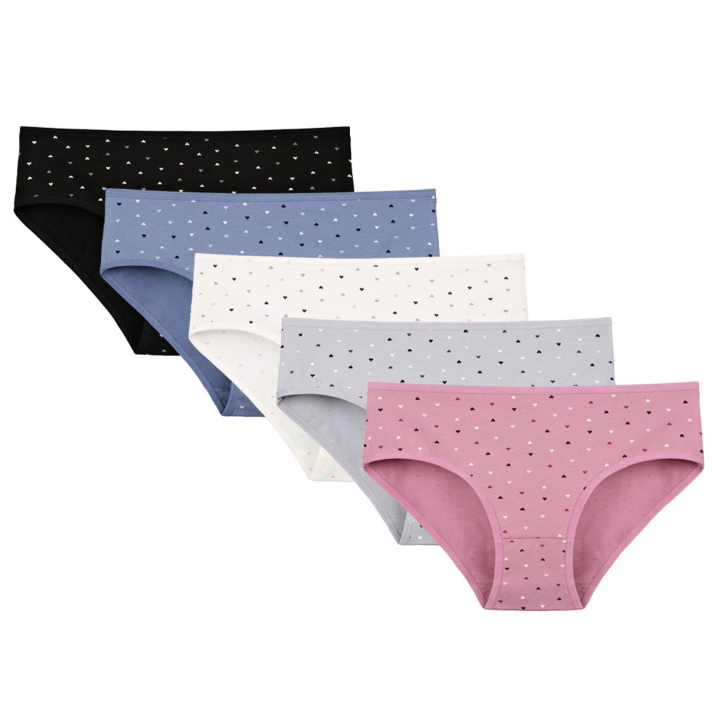 Dámske bavlnené nohavičky Charlotte. Slušné klasické nohavičky sú pohodlným typom spodnej bielizne na všetky príležitosti. Sú zdobené drobnými srdiečkami. Oceníte najmä zloženie materiálu - 95 % bavlna a 5 % elasten. Použitý materiál je príjemný a pružný na dotyk.
