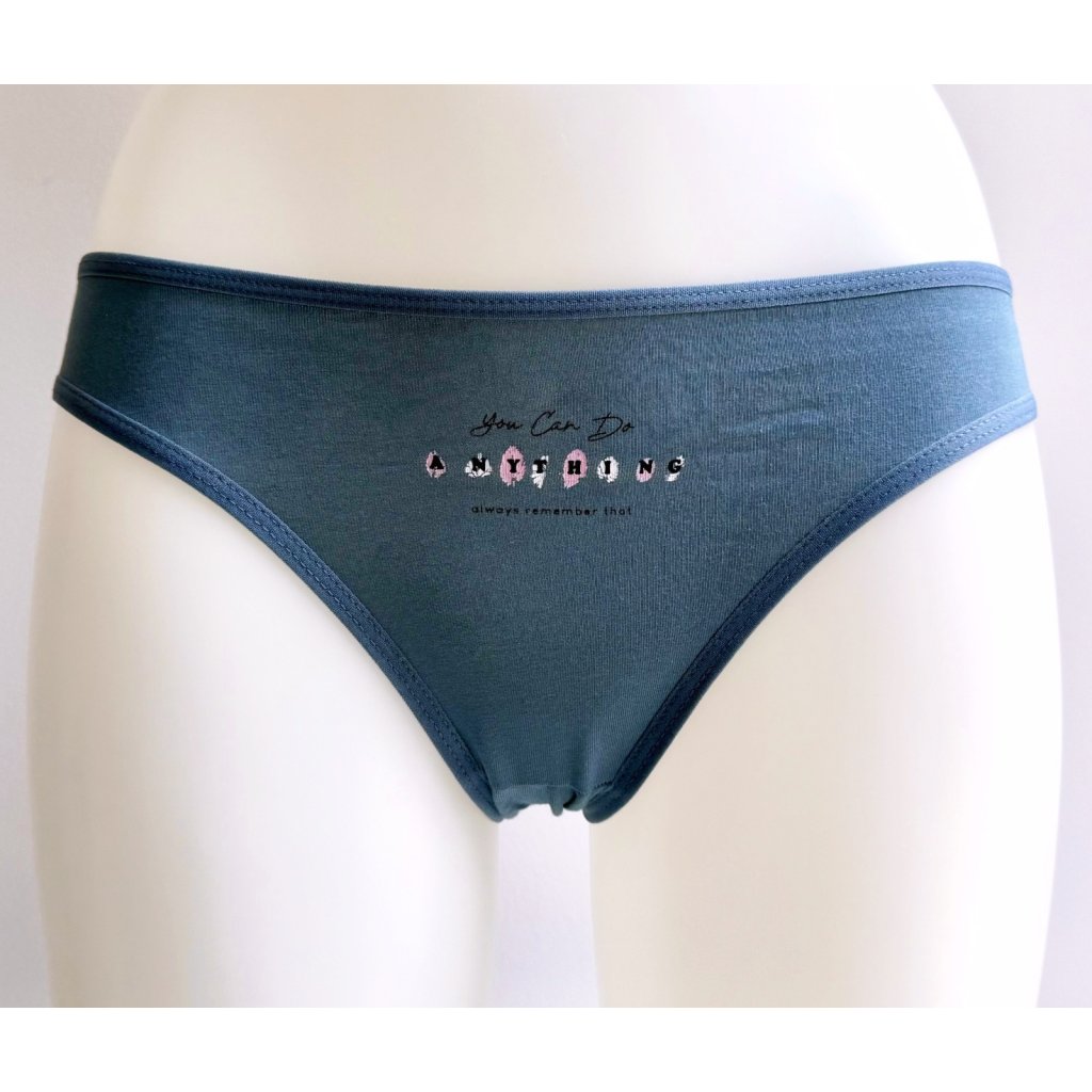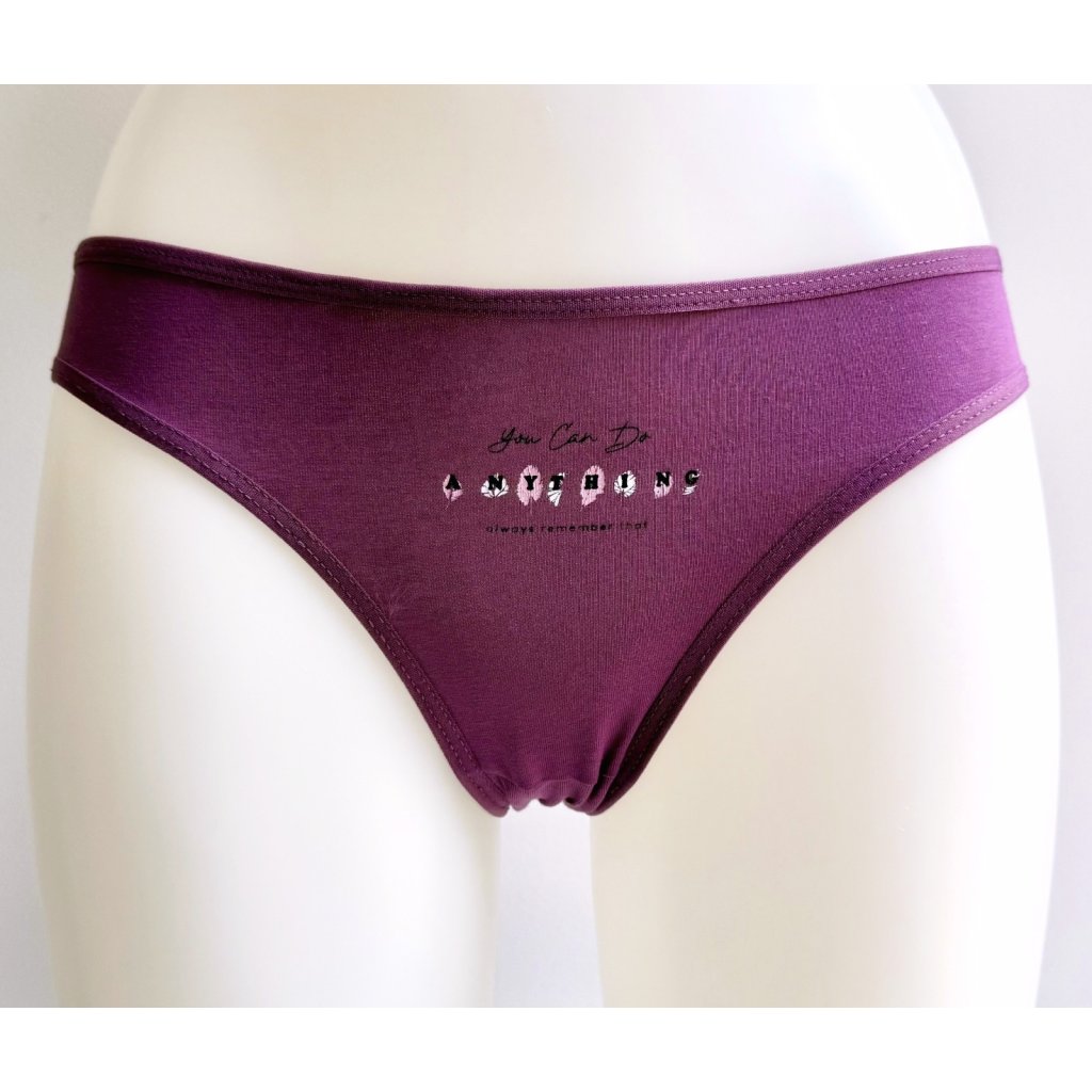 Dámske bavlnené nohavičky Eliza. Elegantné klasické nohavičky zdobené drobným nápisom sú pohodlným typom spodnej bielizne pre všetky príležitosti. Oceníte najmä zloženie materiálu - 95 % bavlna a 5 % elasten. Použitý materiál je príjemný a pružný na dotyk.