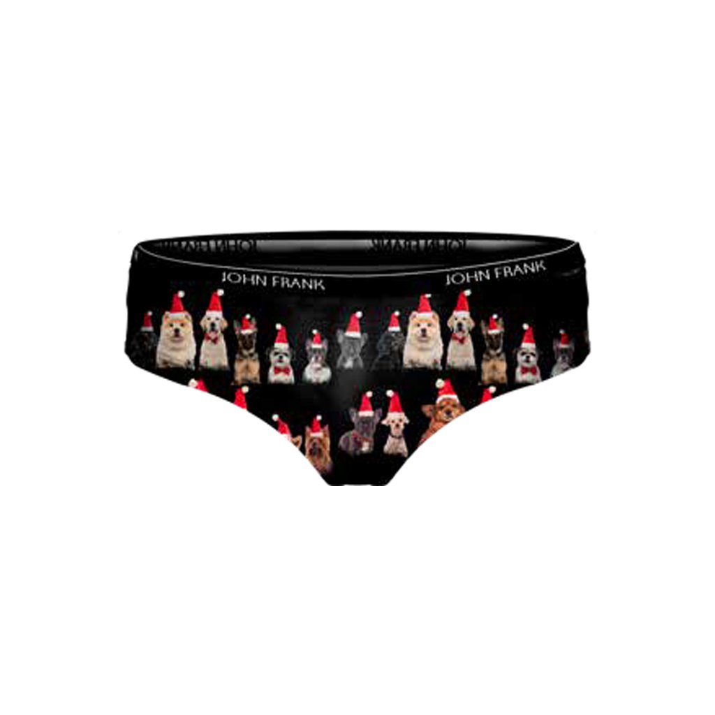 Dámske nohavičky John Frank potešia každú milovníčku psíkov aj veselých motívov. Čierny základ zdobia roztomilé psy v červených vianočných čiapočkách, čo im dodáva sviatočný a hravý vzhľad. Sú vyrobené z mäkkého a elastického materiálu, ktorý zaisťuje pohodlné nosenie a perfektné prispôsobenie postave. Nohavičky sú navyše balené v elegantnej darčekovej krabičke s vianočným motívom, takže sa skvele hodia aj ako originálny darček.