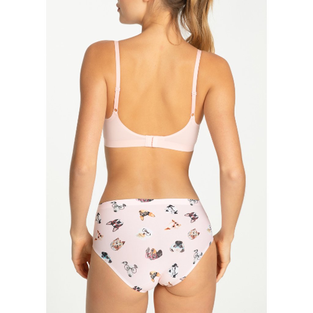 Tieto bezšvové nohavičky Julimex prinášajú spojenie pohodlia a hravého štýlu. Sú vyrobené z jemného, hladkého mikrovlákna, ktoré sa dokonale prispôsobí telu a zabezpečí maximálny komfort pri nosení. Svetloružová farba s potlačou psích hlavičiek v okuliaroch dodáva modelu veselý a originálny vzhľad. Technológia Laser Cut zaisťuje dokonale hladké okraje bez švov, vďaka čomu nohavičky zostávajú neviditeľné aj pod priliehavým oblečením.