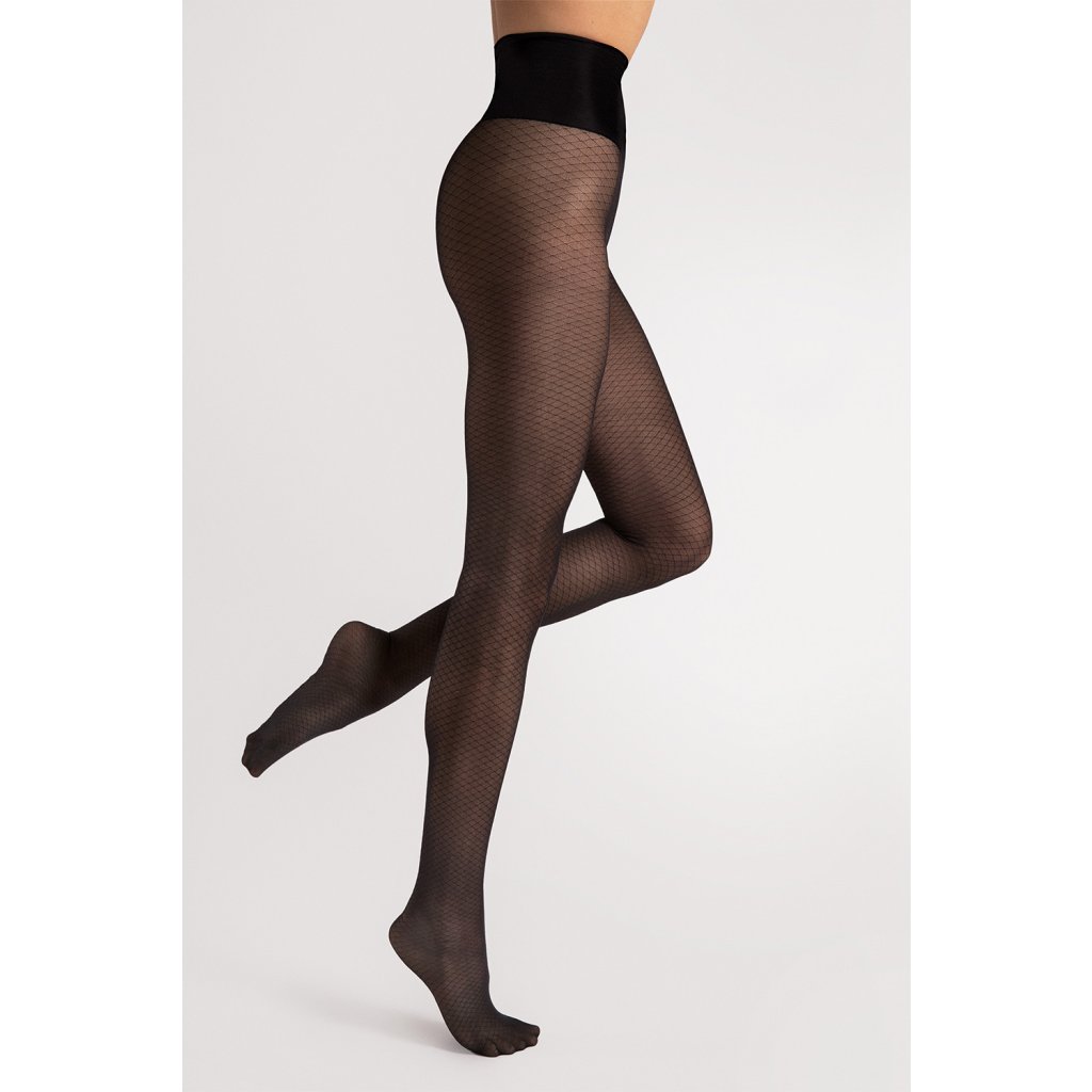 Pančuchy, ktoré korigujú brušnú líniu a zoštíhľujú postavu. - hrúbka 20 DEN - vysoký pás - štíhly pás vďaka použitiu vysokej manžety s technológiou 3D pletenia - bez oddelenej nohavičkovej časti a neviditeľne zosilnená špička - ploché švy - vysokokvalitná priadza - sieťovaný vzor Zloženie: 98 % polyamid, 2 % elastan.