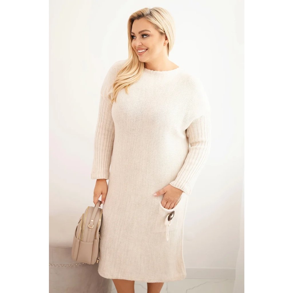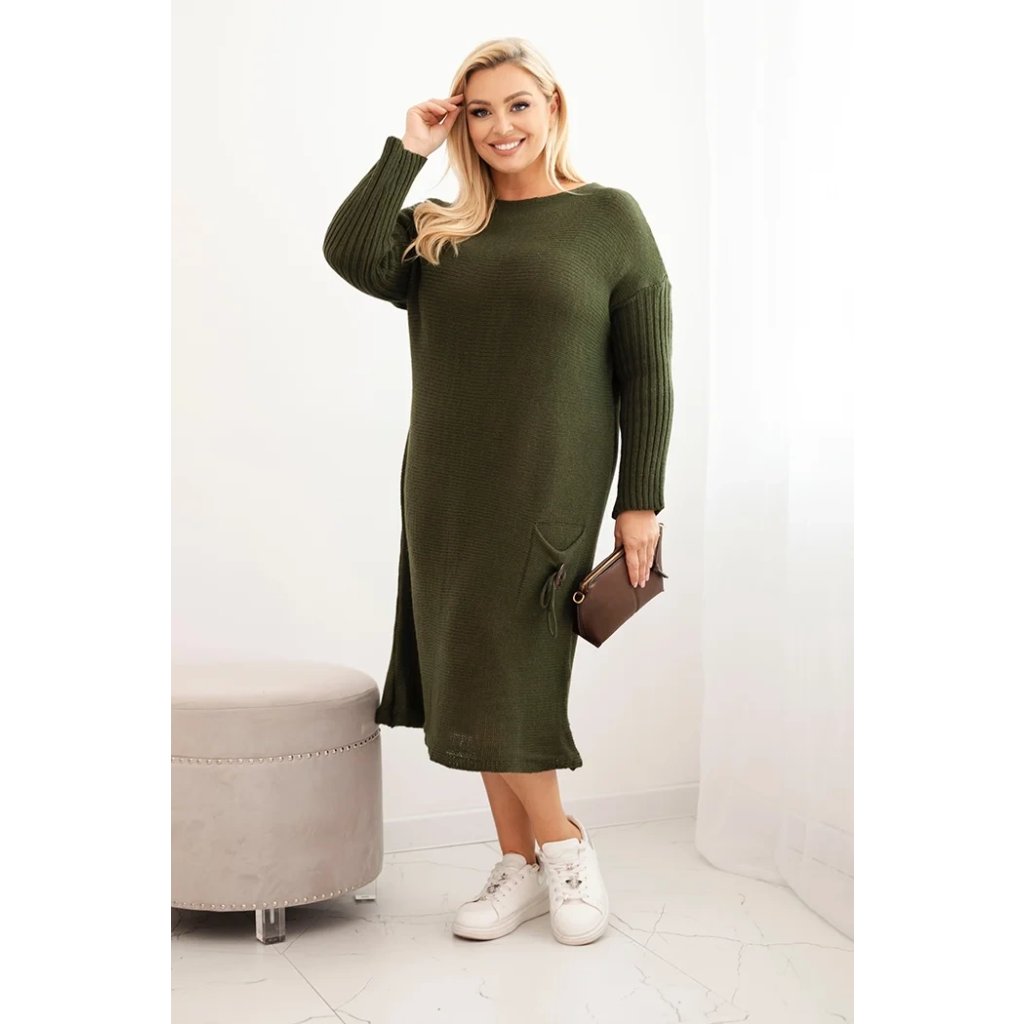 Dámske pletené šaty PLUS2 Plus Size s vreckom