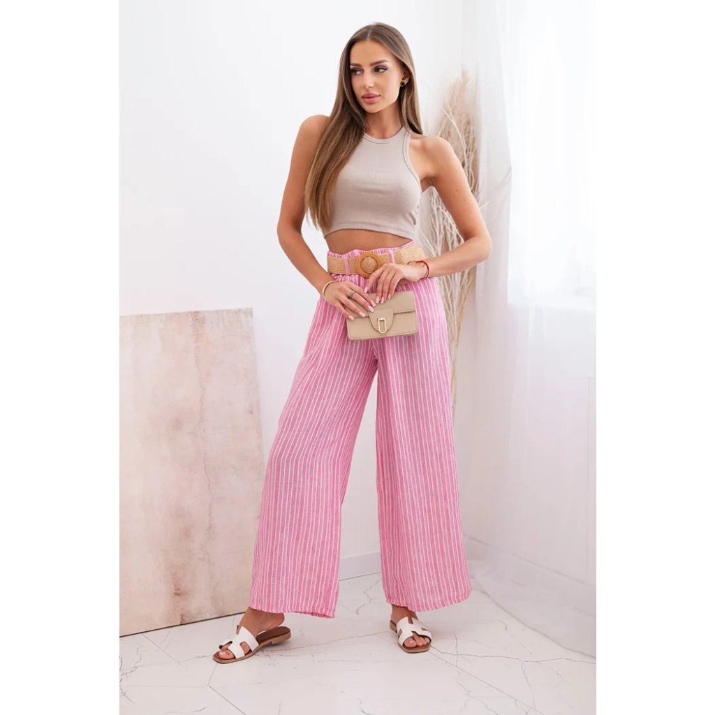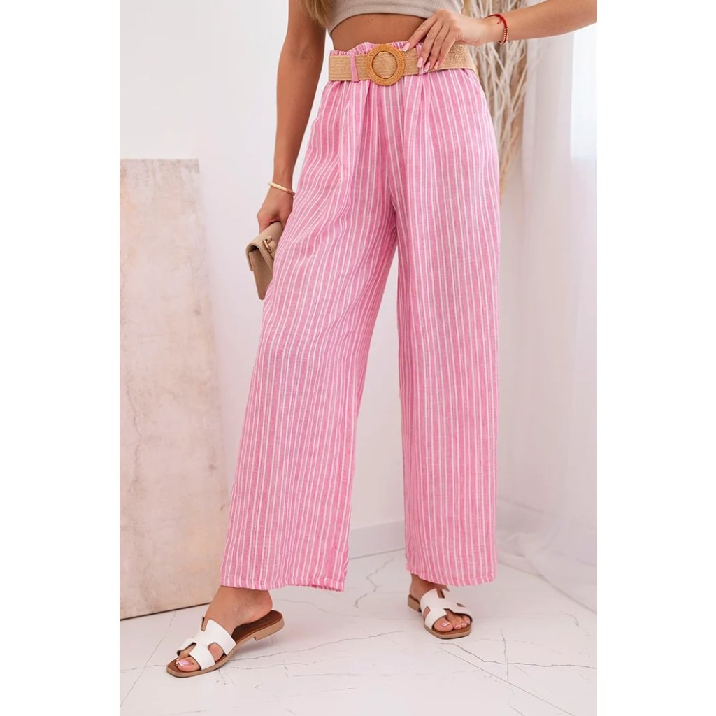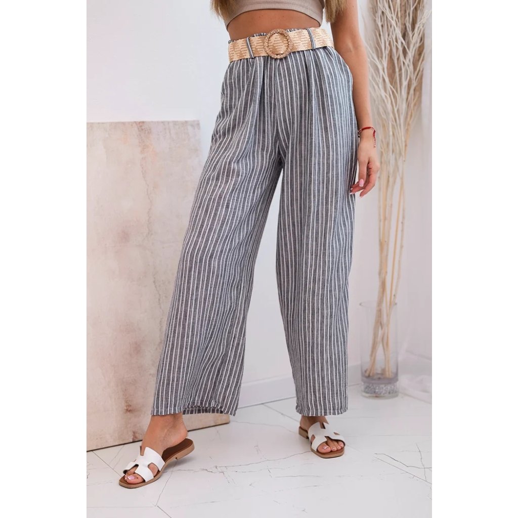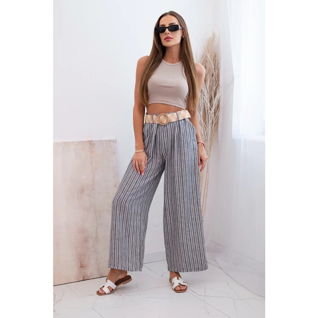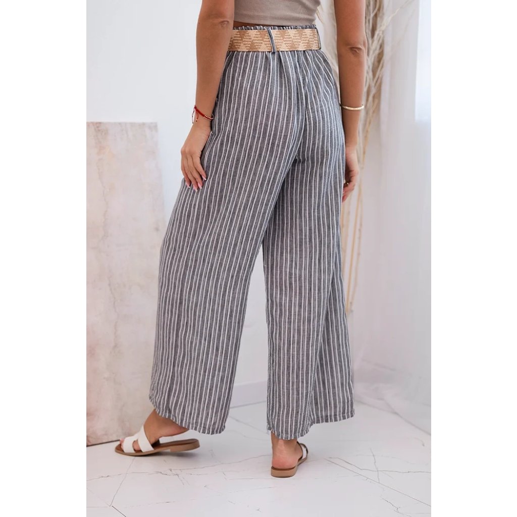 Dámske pruhované viskózové nohavice so širokými nohavicami