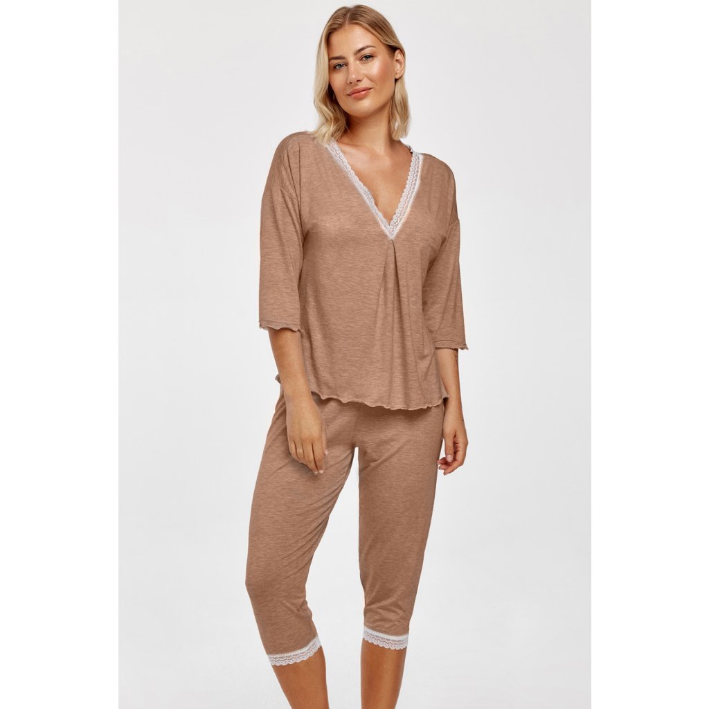 Dámske pyžamo s čipkovaným lemom .Klasický strih